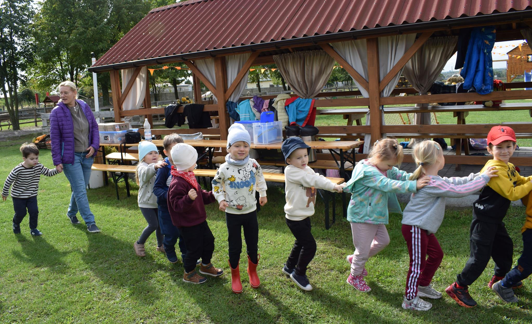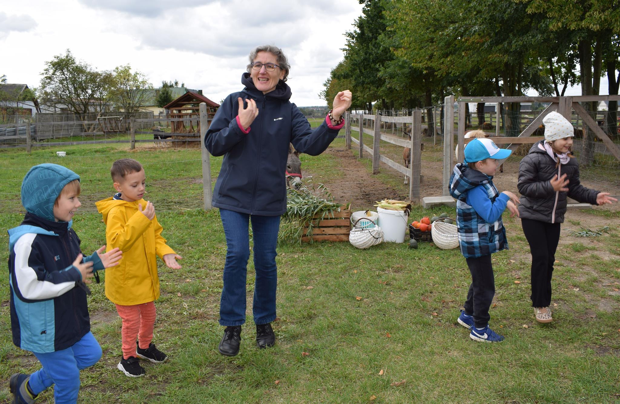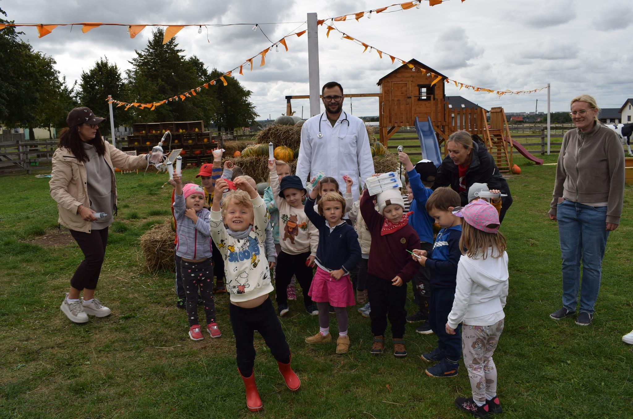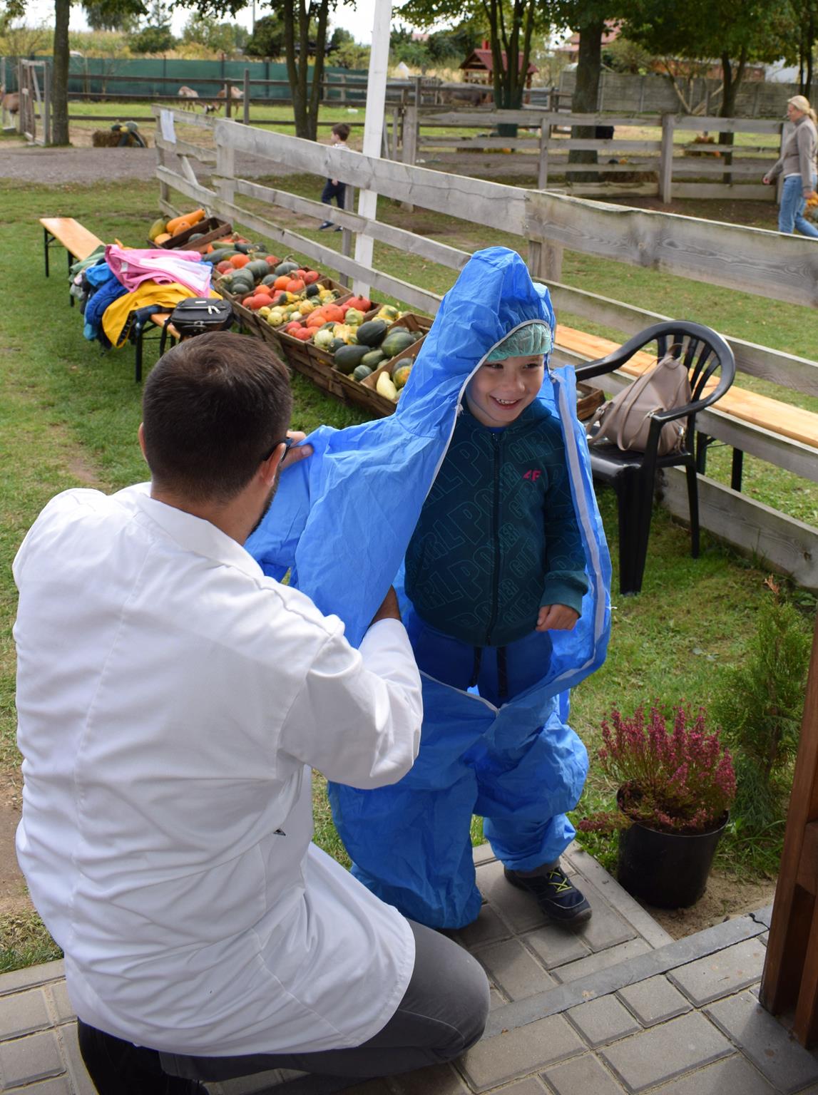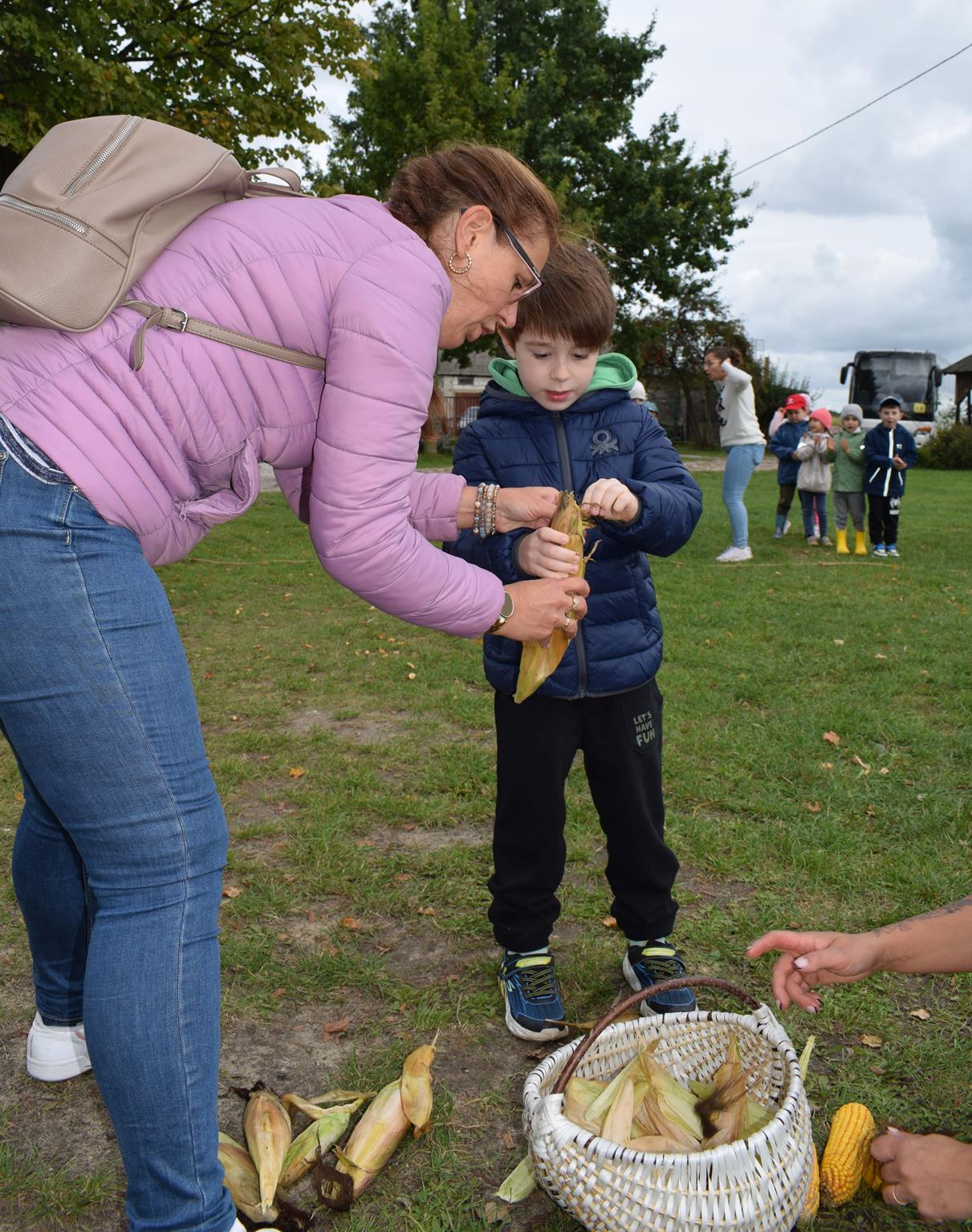 Na pierwszą wycieczkę w tym roku szkolnym wybraliśmy się do Farmy Wesołe Alpaki w miejscowości Żabokliki koło Siedlec. Najważniejszym punktem programu naszej wycieczki było spotkanie ze zwierzętami. Poznaliśmy mieszkańców farmy z bliska: alpaki, kozy, króliki, owce, osiołka, kucyka i kury. Uczyliśmy się, jak bezpiecznie i z szacunkiem obchodzić się ze zwierzątkami. Mogliśmy je pogłaskać, nakarmić, a także przytulić. Uczestniczyliśmy w jesiennych grach i zabawach, i kolejny raz przekonaliśmy się, że śmiech i ruch to najlepszy sposób na integrację! Miłych chwil doświadczyliśmy w trakcie oprowadzanek na kucyku, była to dla nas ważna lekcja zaufania do zwierząt. Dmuchańce – to prawdziwa frajda, to taka atrakcja, która nigdy się nam nie nudzi. Uczestniczyliśmy w zajęciach prowadzonych przez lekarza weterynarii. Dowiedzieliśmy się, jak wygląda praca ze zwierzętami „od kuchni”, zobaczyliśmy prawdziwe narzędzia lekarskie, mogliśmy także osłuchać serduszko kucyka. Gospodarzom farmy serdecznie dziękujemy za wszystkie atrakcje, ciekawe zajęcia, wspólną zabawę. Był to dla nas udany dzień i udana WYCIECZKA!