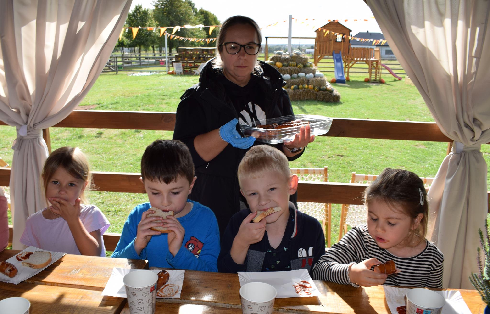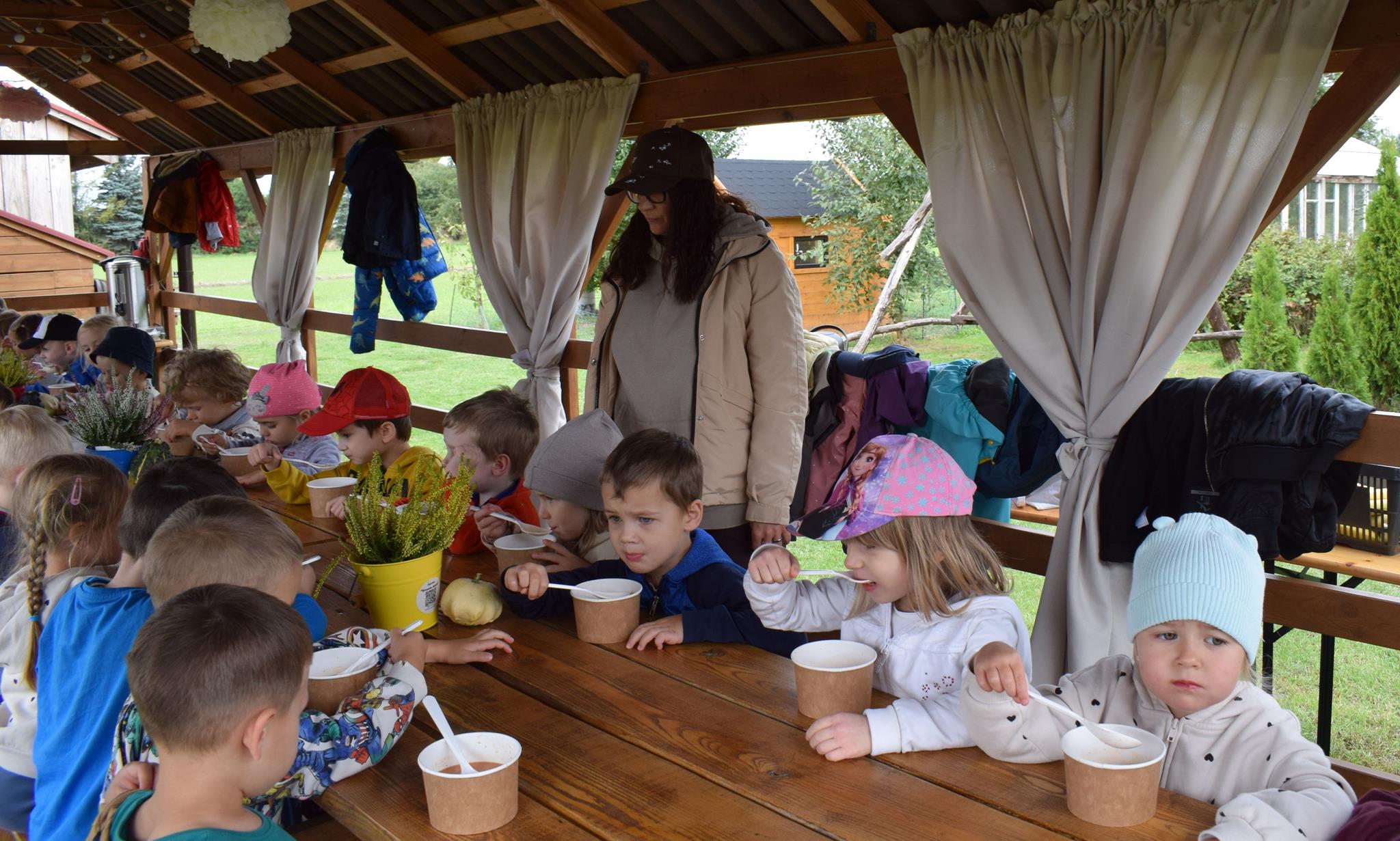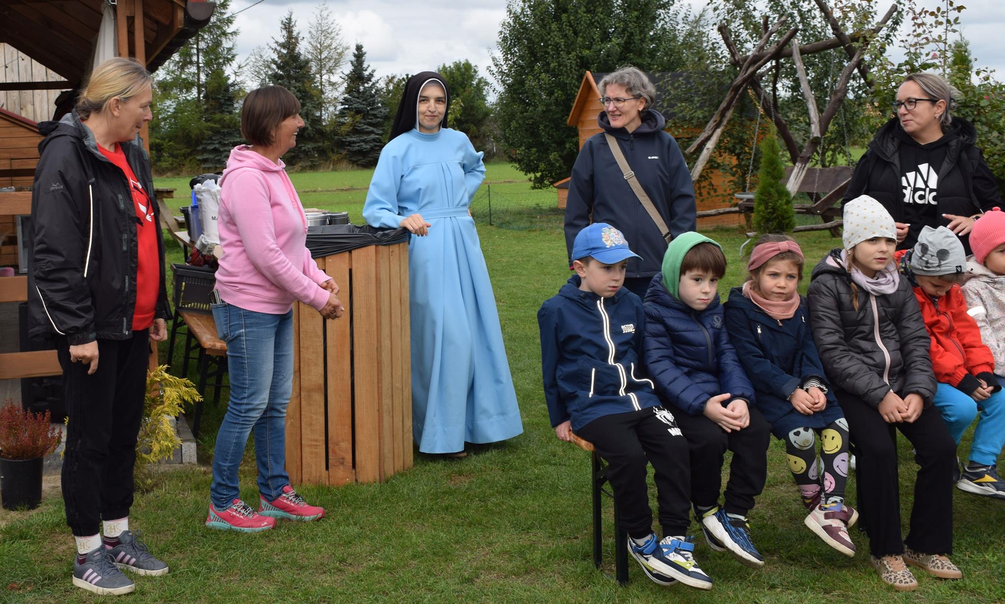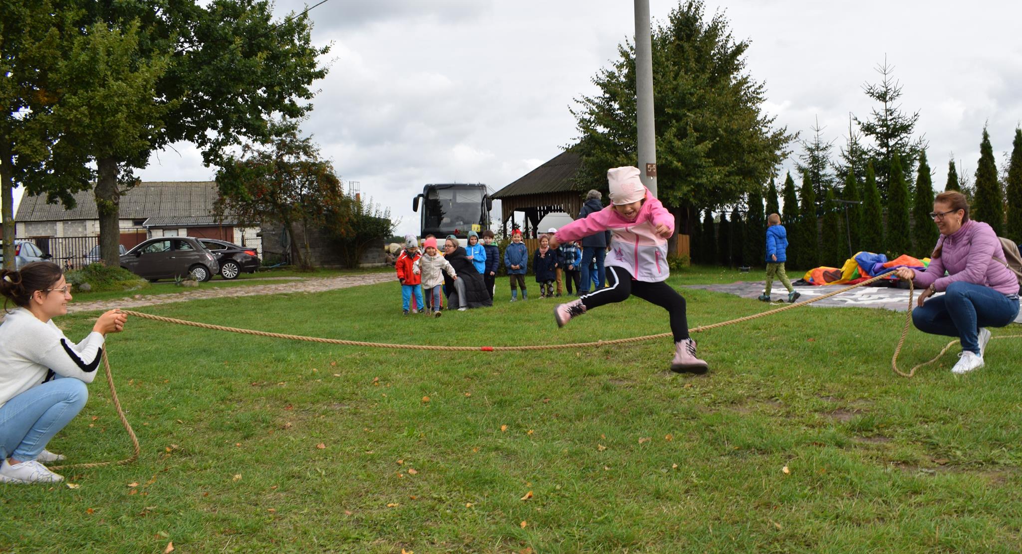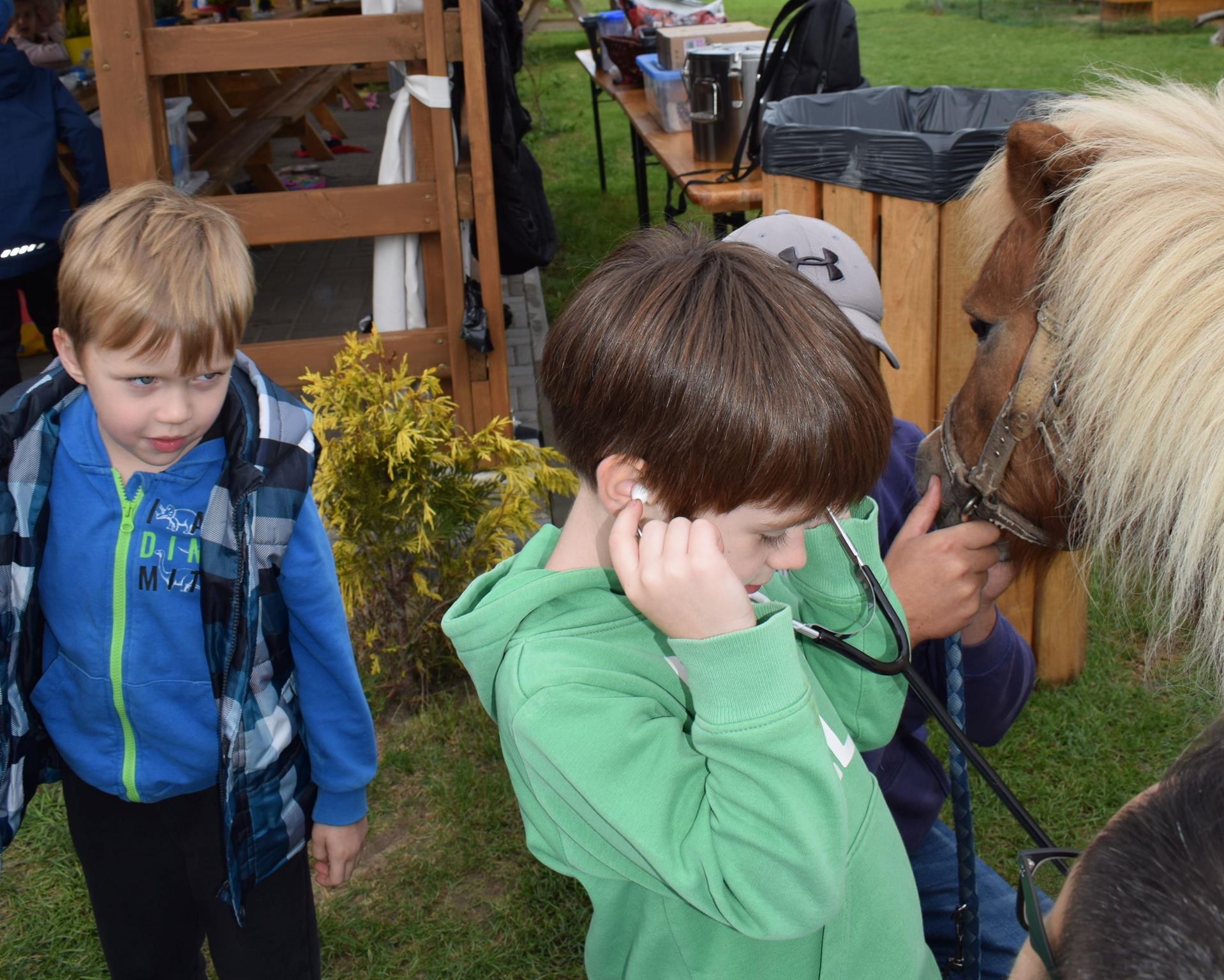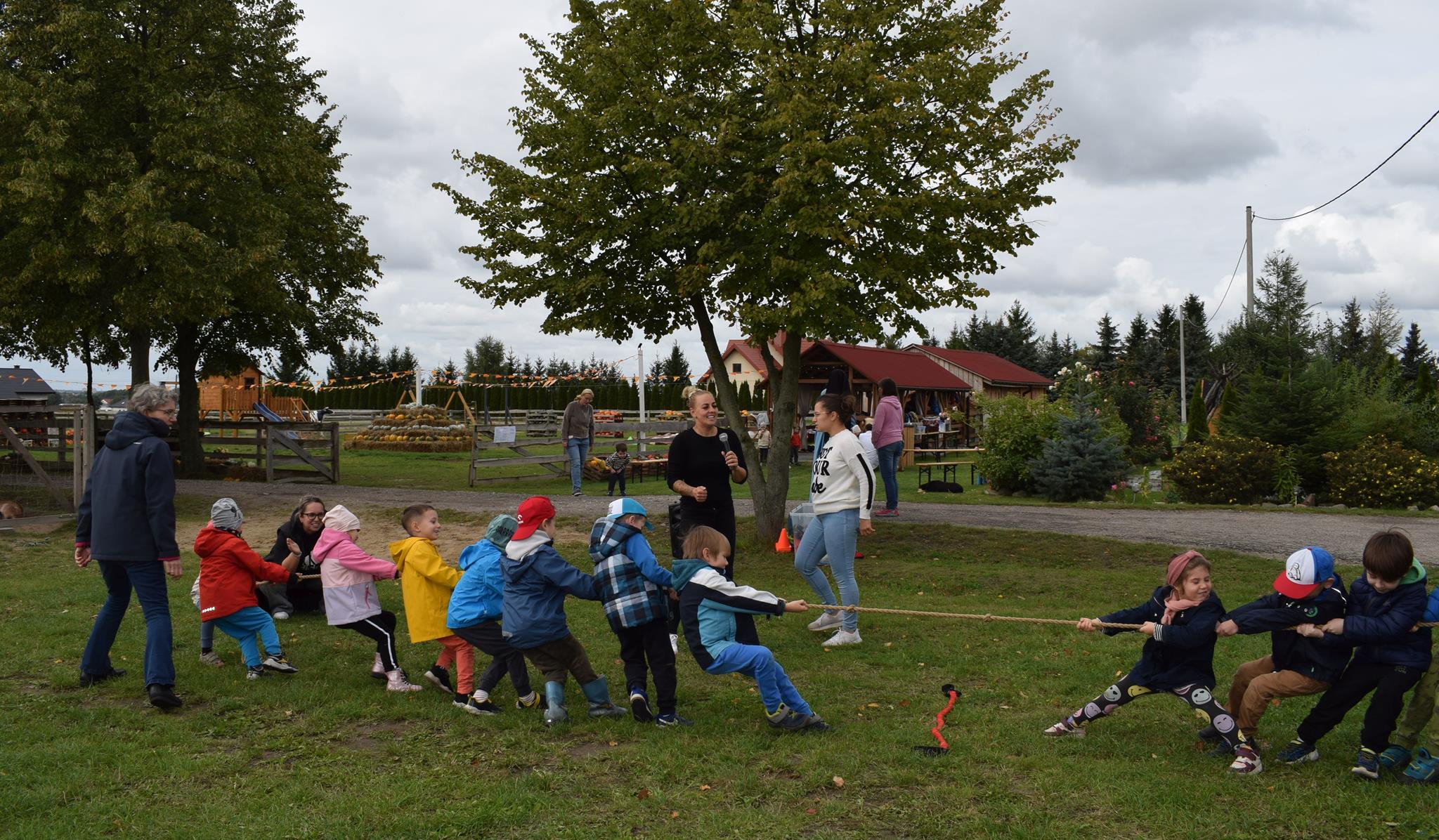 Na pierwszą wycieczkę w tym roku szkolnym wybraliśmy się do Farmy Wesołe Alpaki w miejscowości Żabokliki koło Siedlec. Najważniejszym punktem programu naszej wycieczki było spotkanie ze zwierzętami. Poznaliśmy mieszkańców farmy z bliska: alpaki, kozy, króliki, owce, osiołka, kucyka i kury. Uczyliśmy się, jak bezpiecznie i z szacunkiem obchodzić się ze zwierzątkami. Mogliśmy je pogłaskać, nakarmić, a także przytulić. Uczestniczyliśmy w jesiennych grach i zabawach, i kolejny raz przekonaliśmy się, że śmiech i ruch to najlepszy sposób na integrację! Miłych chwil doświadczyliśmy w trakcie oprowadzanek na kucyku, była to dla nas ważna lekcja zaufania do zwierząt. Dmuchańce – to prawdziwa frajda, to taka atrakcja, która nigdy się nam nie nudzi. Uczestniczyliśmy w zajęciach prowadzonych przez lekarza weterynarii. Dowiedzieliśmy się, jak wygląda praca ze zwierzętami „od kuchni”, zobaczyliśmy prawdziwe narzędzia lekarskie, mogliśmy także osłuchać serduszko kucyka. Gospodarzom farmy serdecznie dziękujemy za wszystkie atrakcje, ciekawe zajęcia, wspólną zabawę. Był to dla nas udany dzień i udana WYCIECZKA!