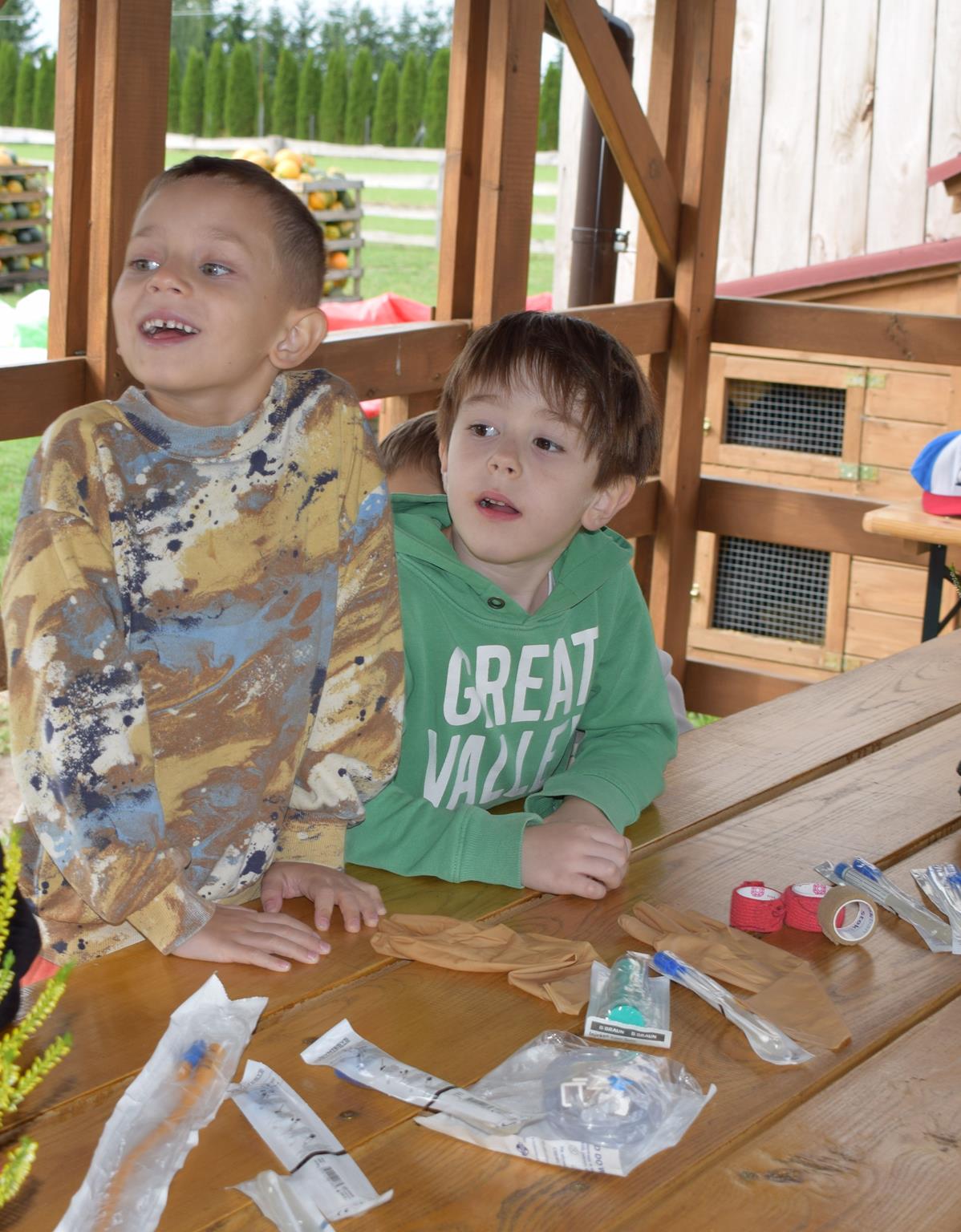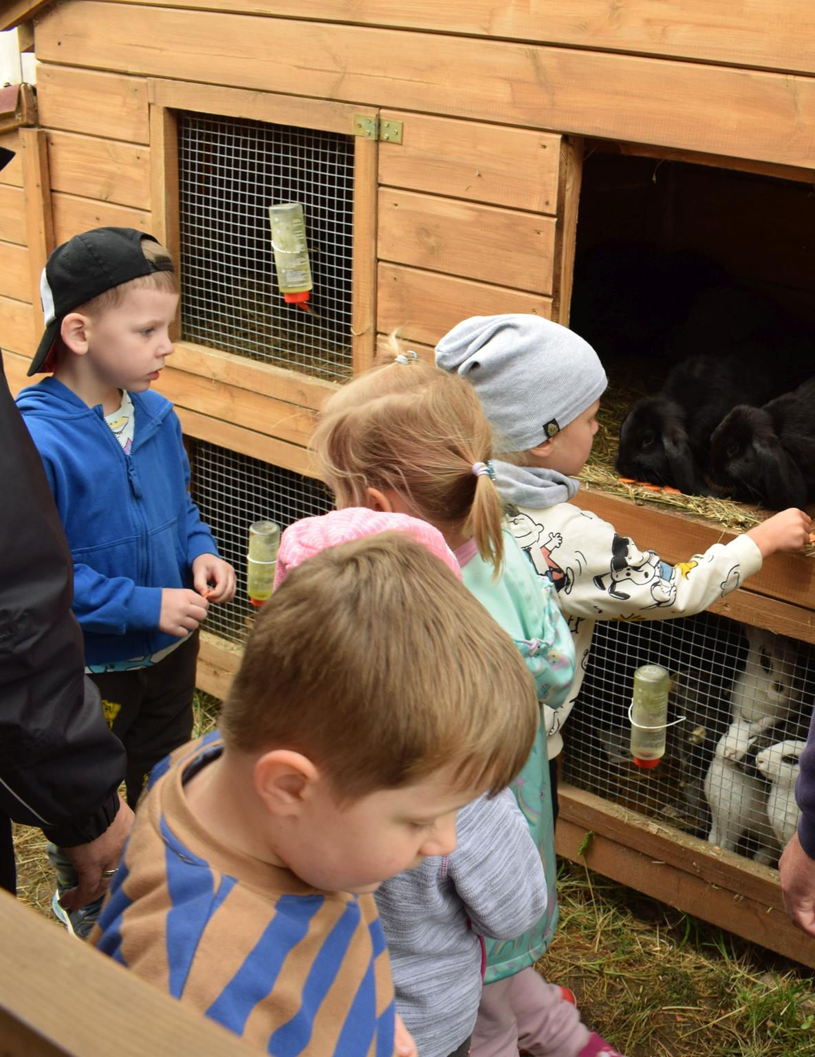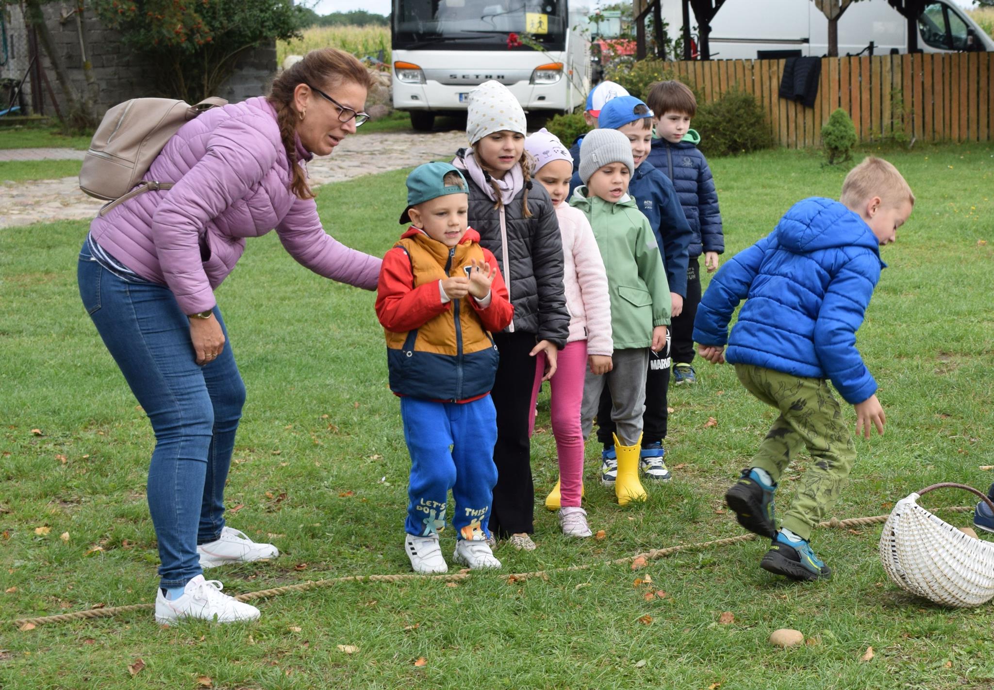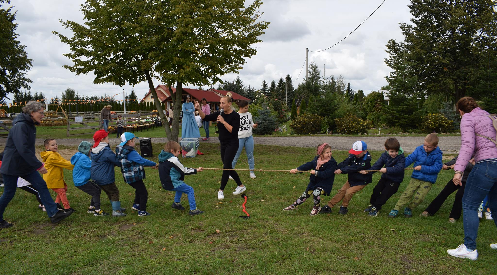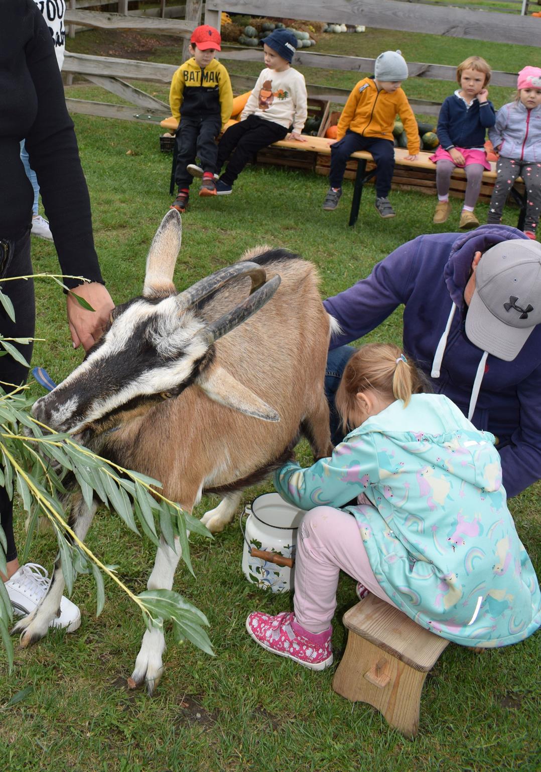 Na pierwszą wycieczkę w tym roku szkolnym wybraliśmy się do Farmy Wesołe Alpaki w miejscowości Żabokliki koło Siedlec. Najważniejszym punktem programu naszej wycieczki było spotkanie ze zwierzętami. Poznaliśmy mieszkańców farmy z bliska: alpaki, kozy, króliki, owce, osiołka, kucyka i kury. Uczyliśmy się, jak bezpiecznie i z szacunkiem obchodzić się ze zwierzątkami. Mogliśmy je pogłaskać, nakarmić, a także przytulić. Uczestniczyliśmy w jesiennych grach i zabawach, i kolejny raz przekonaliśmy się, że śmiech i ruch to najlepszy sposób na integrację! Miłych chwil doświadczyliśmy w trakcie oprowadzanek na kucyku, była to dla nas ważna lekcja zaufania do zwierząt. Dmuchańce – to prawdziwa frajda, to taka atrakcja, która nigdy się nam nie nudzi. Uczestniczyliśmy w zajęciach prowadzonych przez lekarza weterynarii. Dowiedzieliśmy się, jak wygląda praca ze zwierzętami „od kuchni”, zobaczyliśmy prawdziwe narzędzia lekarskie, mogliśmy także osłuchać serduszko kucyka. Gospodarzom farmy serdecznie dziękujemy za wszystkie atrakcje, ciekawe zajęcia, wspólną zabawę. Był to dla nas udany dzień i udana WYCIECZKA!