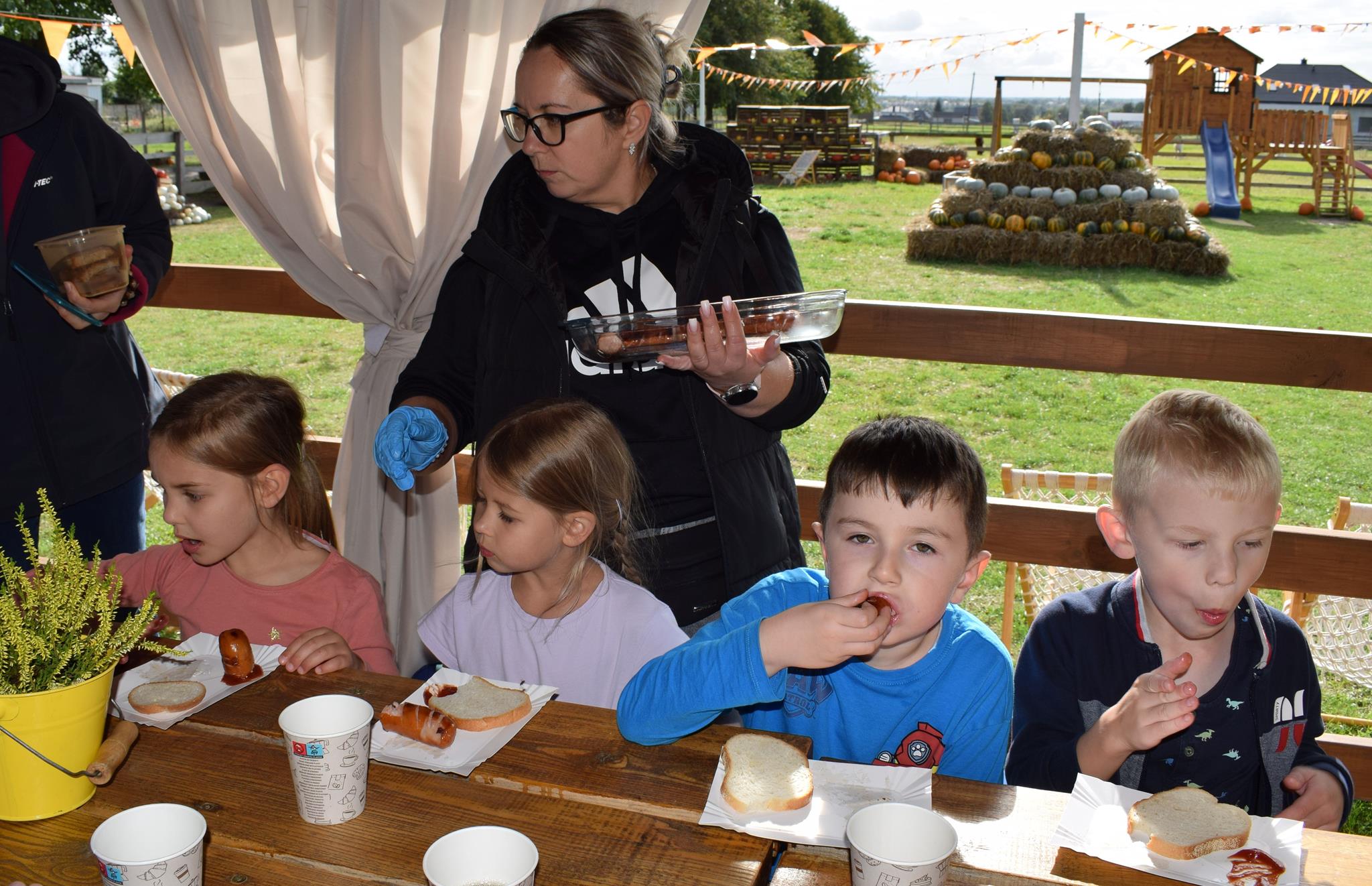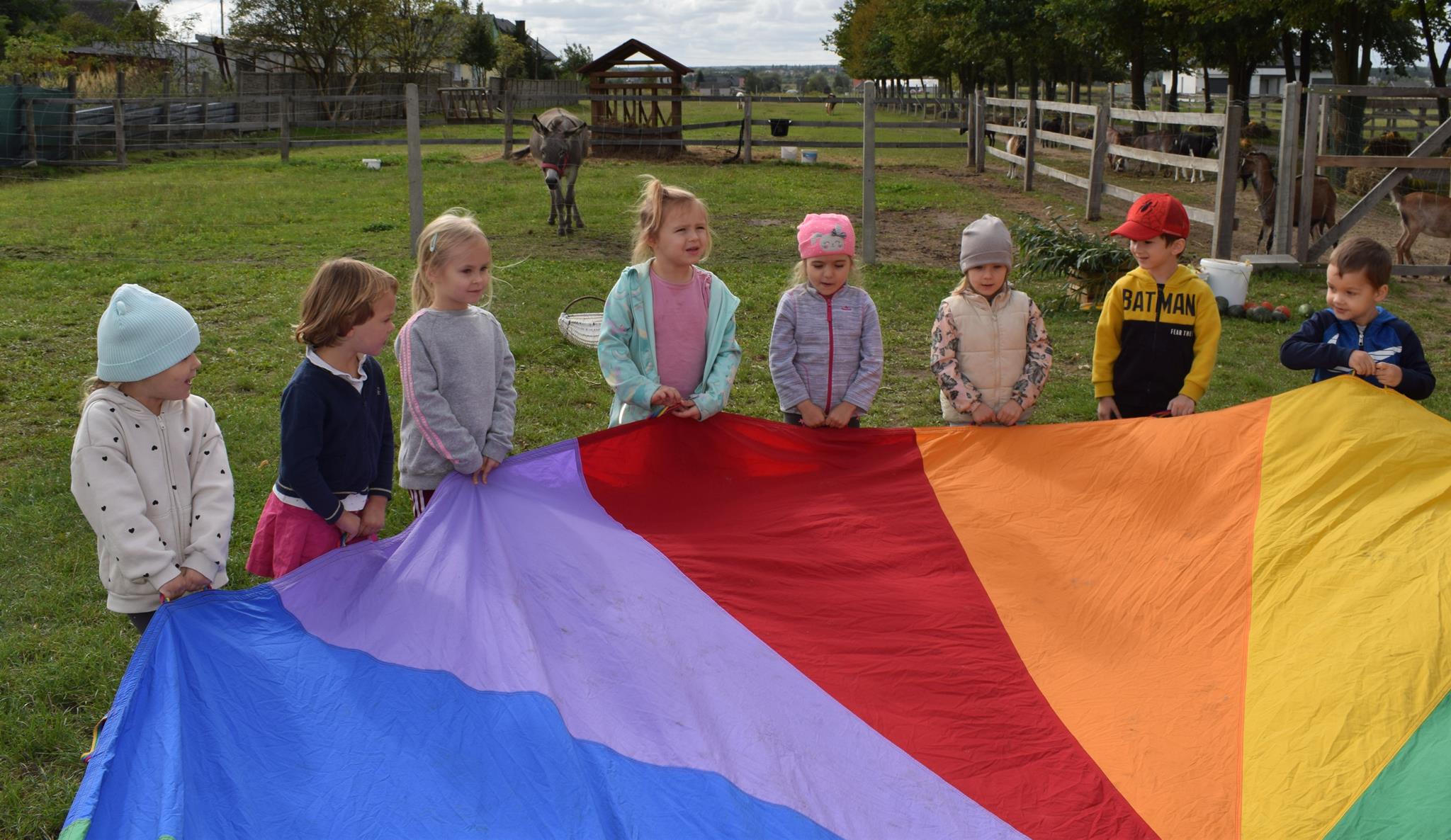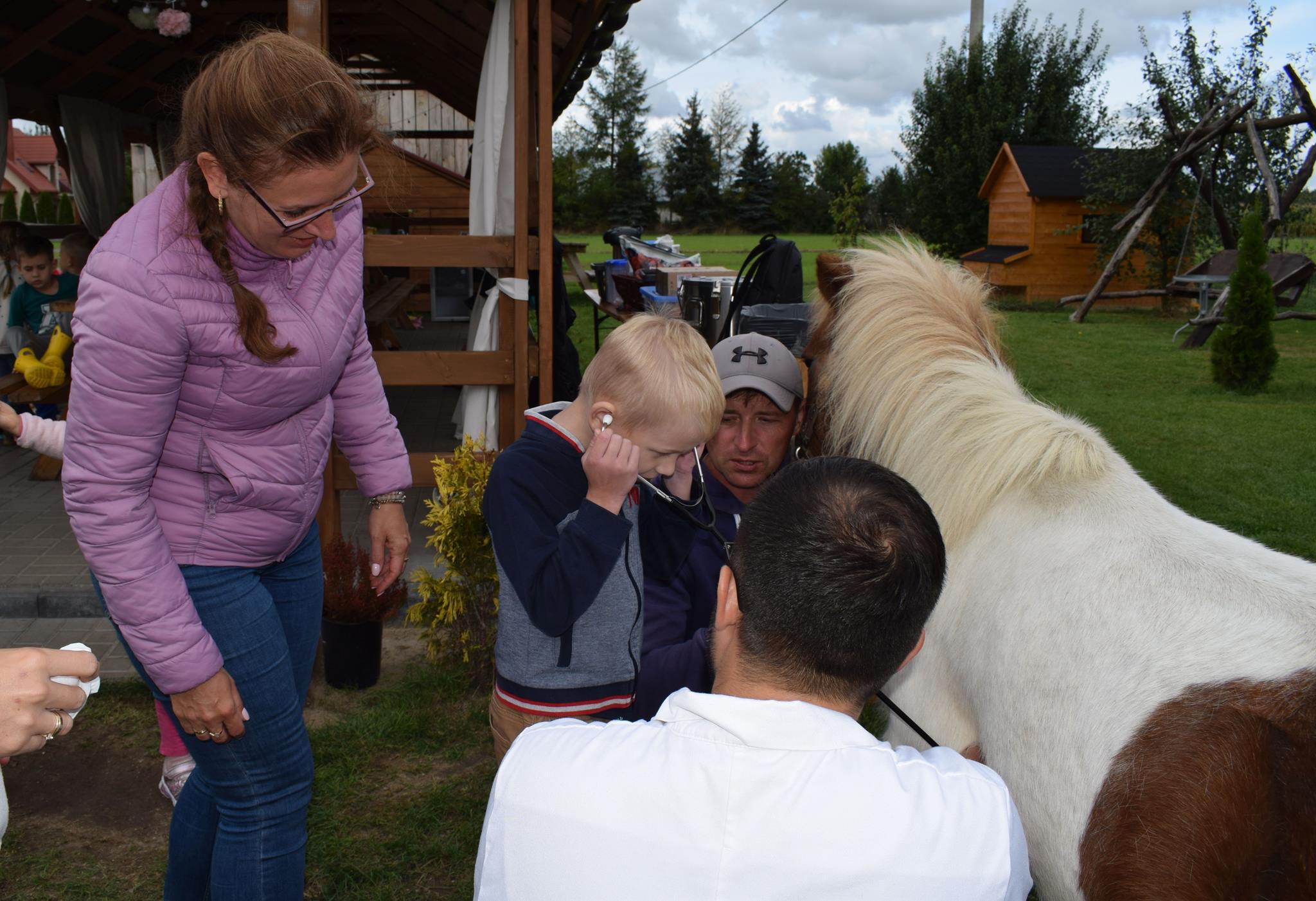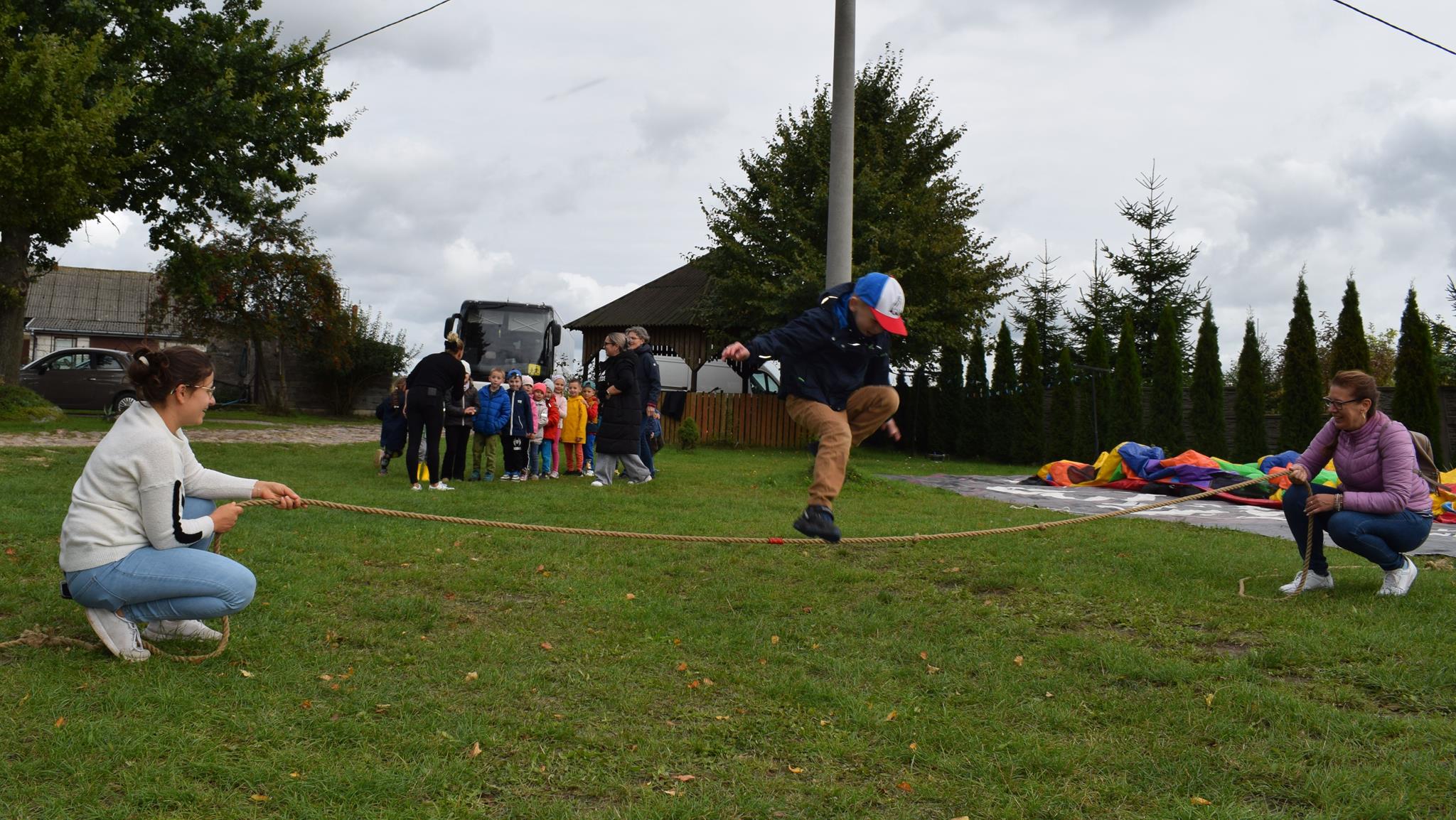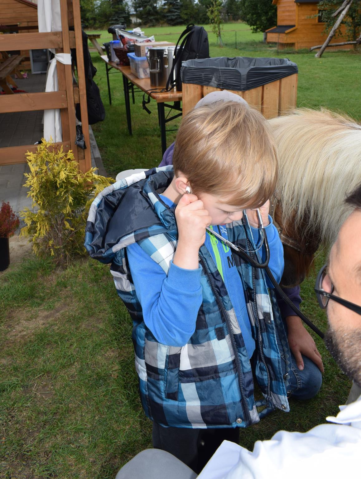 Na pierwszą wycieczkę w tym roku szkolnym wybraliśmy się do Farmy Wesołe Alpaki w miejscowości Żabokliki koło Siedlec. Najważniejszym punktem programu naszej wycieczki było spotkanie ze zwierzętami. Poznaliśmy mieszkańców farmy z bliska: alpaki, kozy, króliki, owce, osiołka, kucyka i kury. Uczyliśmy się, jak bezpiecznie i z szacunkiem obchodzić się ze zwierzątkami. Mogliśmy je pogłaskać, nakarmić, a także przytulić. Uczestniczyliśmy w jesiennych grach i zabawach, i kolejny raz przekonaliśmy się, że śmiech i ruch to najlepszy sposób na integrację! Miłych chwil doświadczyliśmy w trakcie oprowadzanek na kucyku, była to dla nas ważna lekcja zaufania do zwierząt. Dmuchańce – to prawdziwa frajda, to taka atrakcja, która nigdy się nam nie nudzi. Uczestniczyliśmy w zajęciach prowadzonych przez lekarza weterynarii. Dowiedzieliśmy się, jak wygląda praca ze zwierzętami „od kuchni”, zobaczyliśmy prawdziwe narzędzia lekarskie, mogliśmy także osłuchać serduszko kucyka. Gospodarzom farmy serdecznie dziękujemy za wszystkie atrakcje, ciekawe zajęcia, wspólną zabawę. Był to dla nas udany dzień i udana WYCIECZKA!