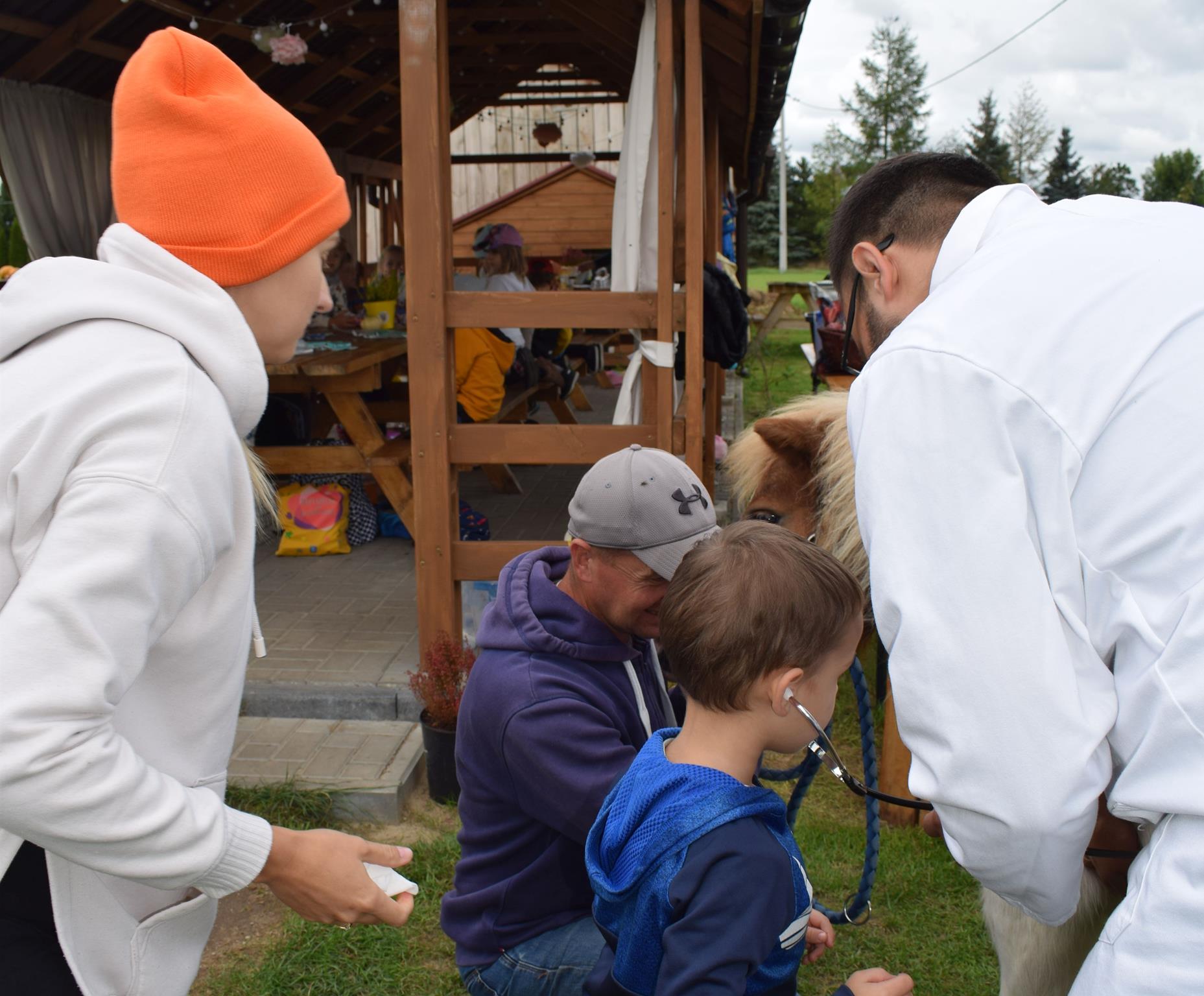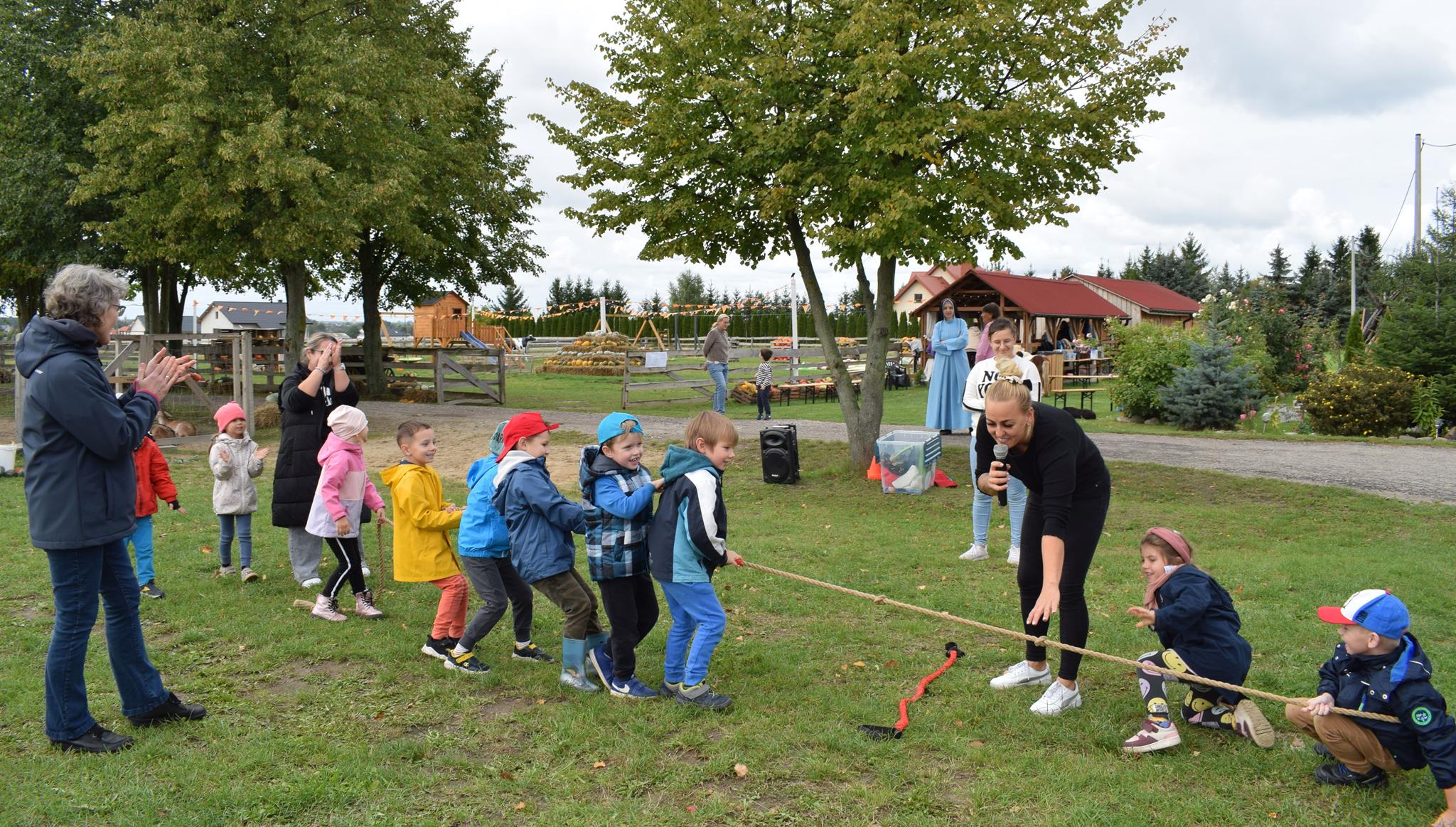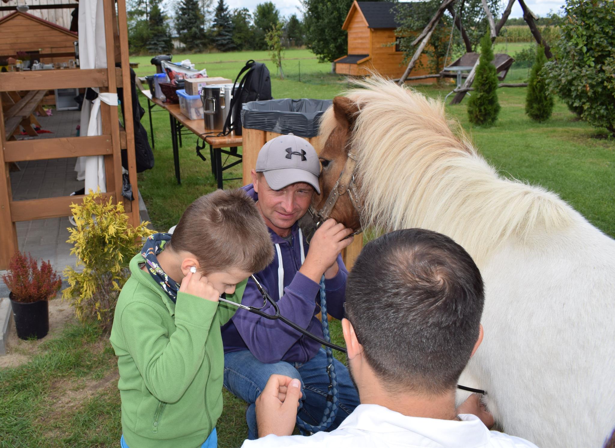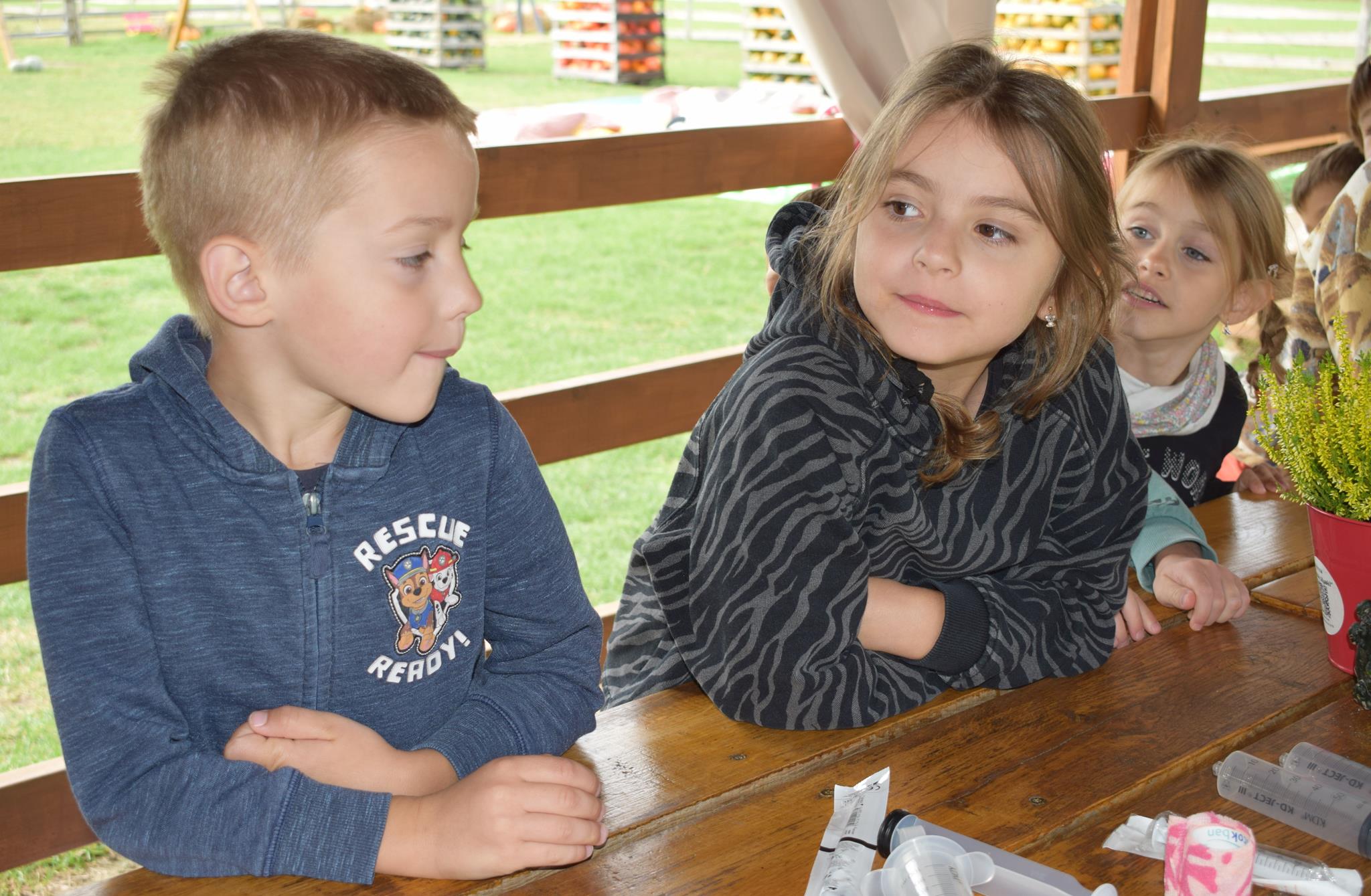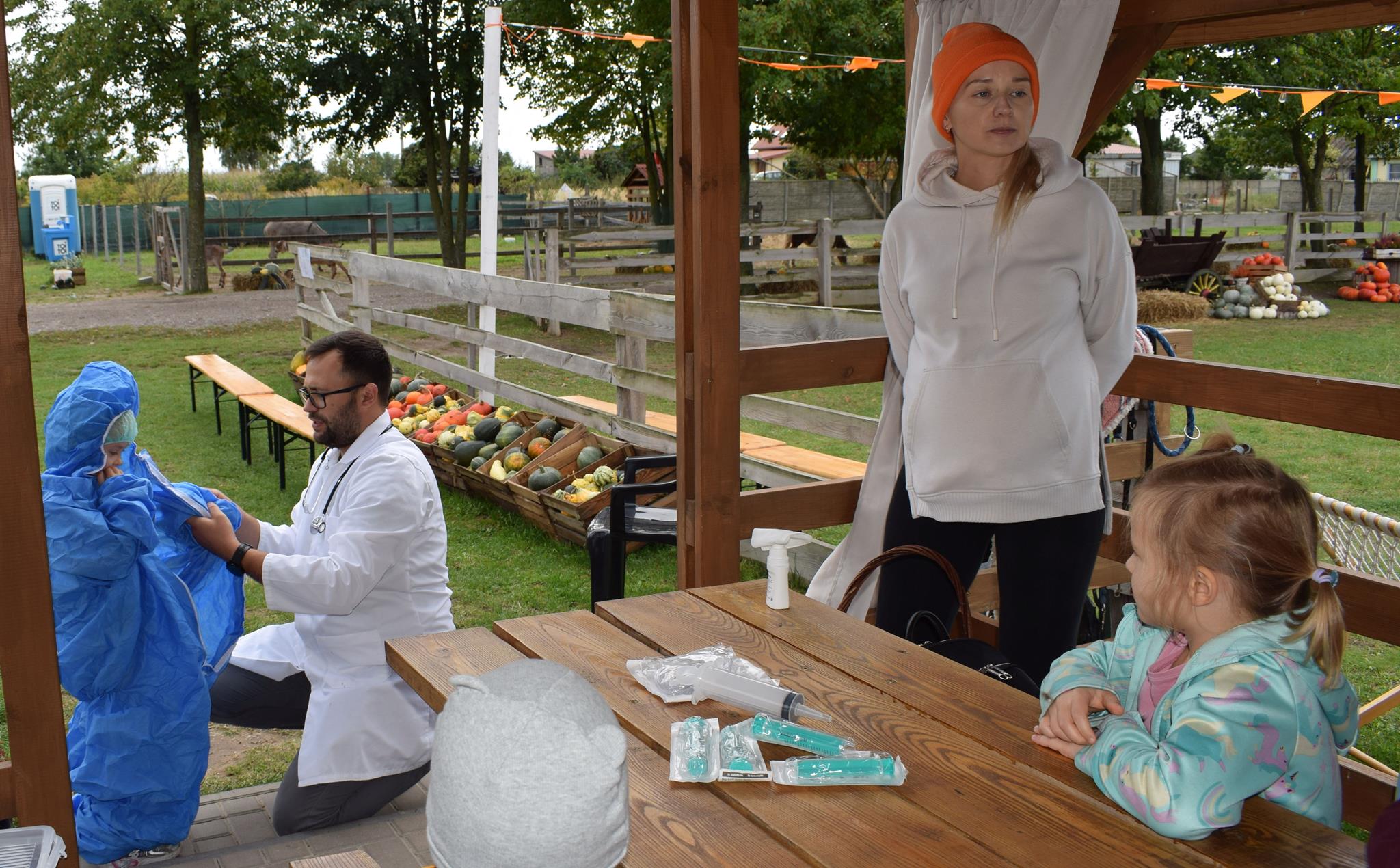 Na pierwszą wycieczkę w tym roku szkolnym wybraliśmy się do Farmy Wesołe Alpaki w miejscowości Żabokliki koło Siedlec. Najważniejszym punktem programu naszej wycieczki było spotkanie ze zwierzętami. Poznaliśmy mieszkańców farmy z bliska: alpaki, kozy, króliki, owce, osiołka, kucyka i kury. Uczyliśmy się, jak bezpiecznie i z szacunkiem obchodzić się ze zwierzątkami. Mogliśmy je pogłaskać, nakarmić, a także przytulić. Uczestniczyliśmy w jesiennych grach i zabawach, i kolejny raz przekonaliśmy się, że śmiech i ruch to najlepszy sposób na integrację! Miłych chwil doświadczyliśmy w trakcie oprowadzanek na kucyku, była to dla nas ważna lekcja zaufania do zwierząt. Dmuchańce – to prawdziwa frajda, to taka atrakcja, która nigdy się nam nie nudzi. Uczestniczyliśmy w zajęciach prowadzonych przez lekarza weterynarii. Dowiedzieliśmy się, jak wygląda praca ze zwierzętami „od kuchni”, zobaczyliśmy prawdziwe narzędzia lekarskie, mogliśmy także osłuchać serduszko kucyka. Gospodarzom farmy serdecznie dziękujemy za wszystkie atrakcje, ciekawe zajęcia, wspólną zabawę. Był to dla nas udany dzień i udana WYCIECZKA!