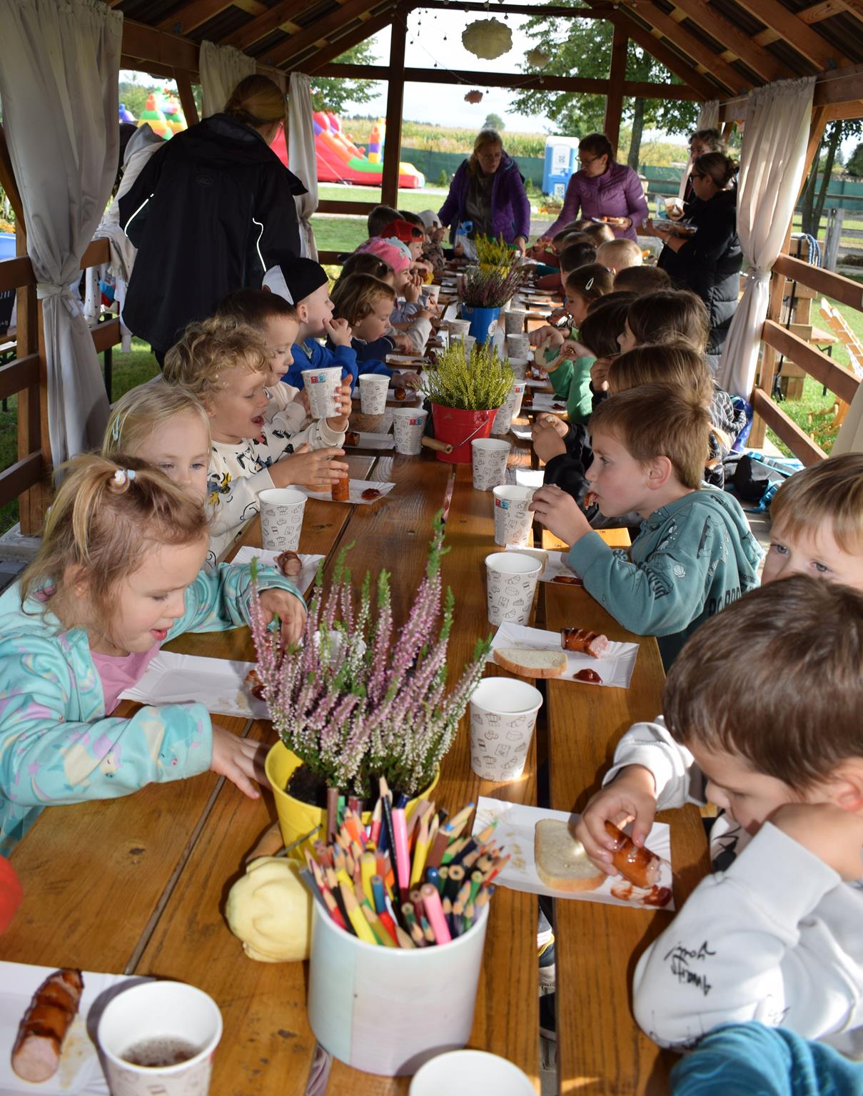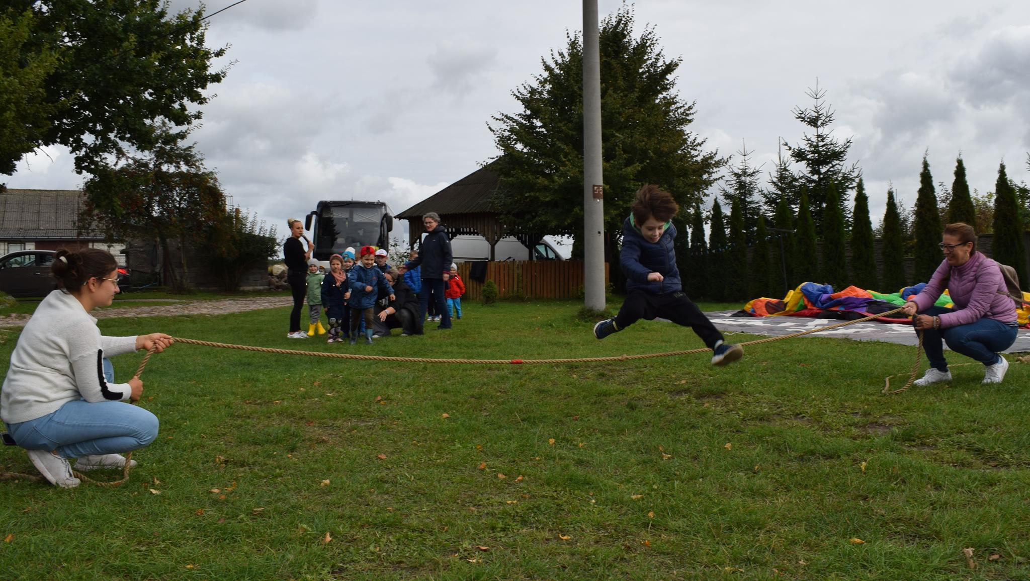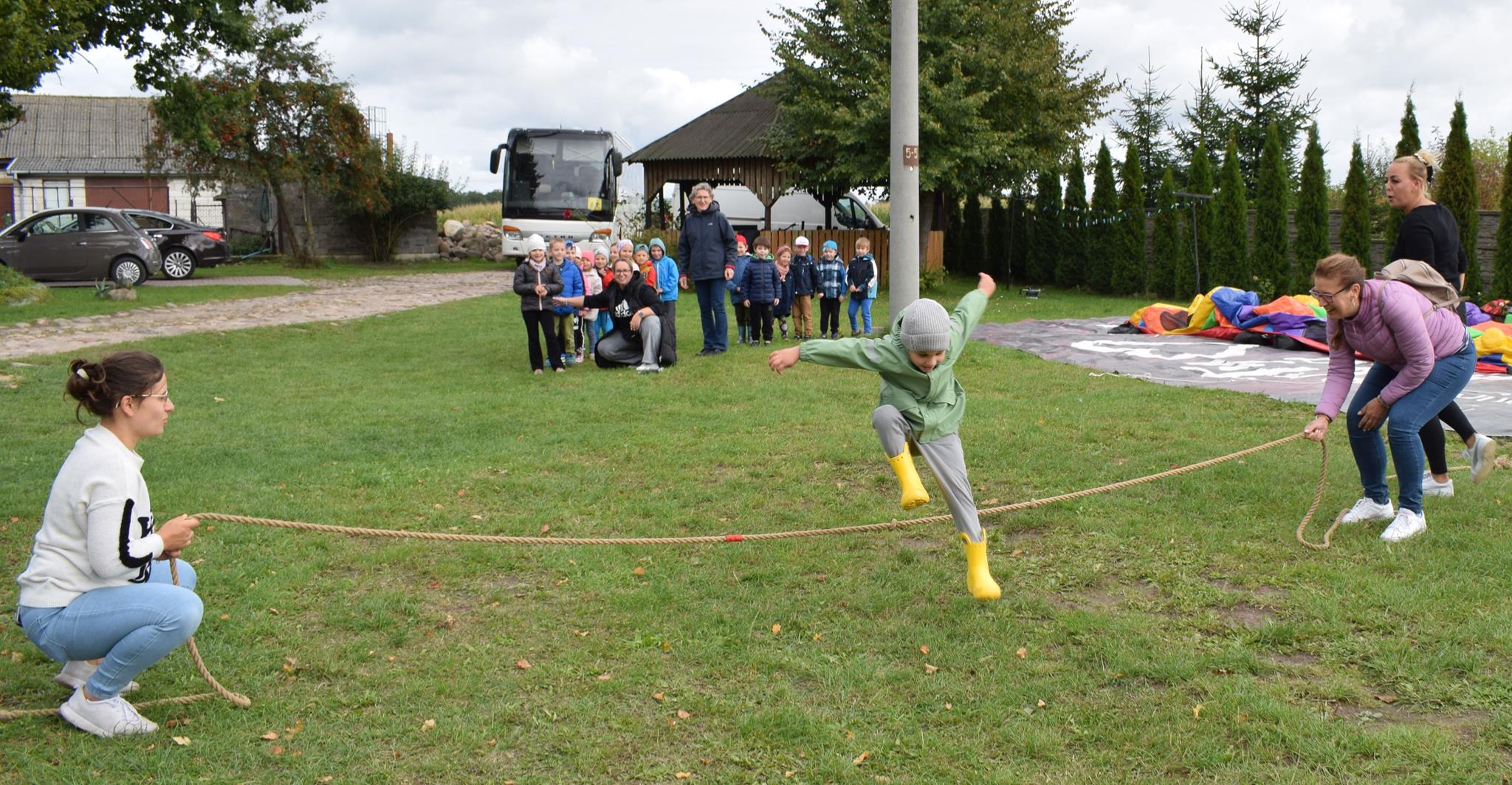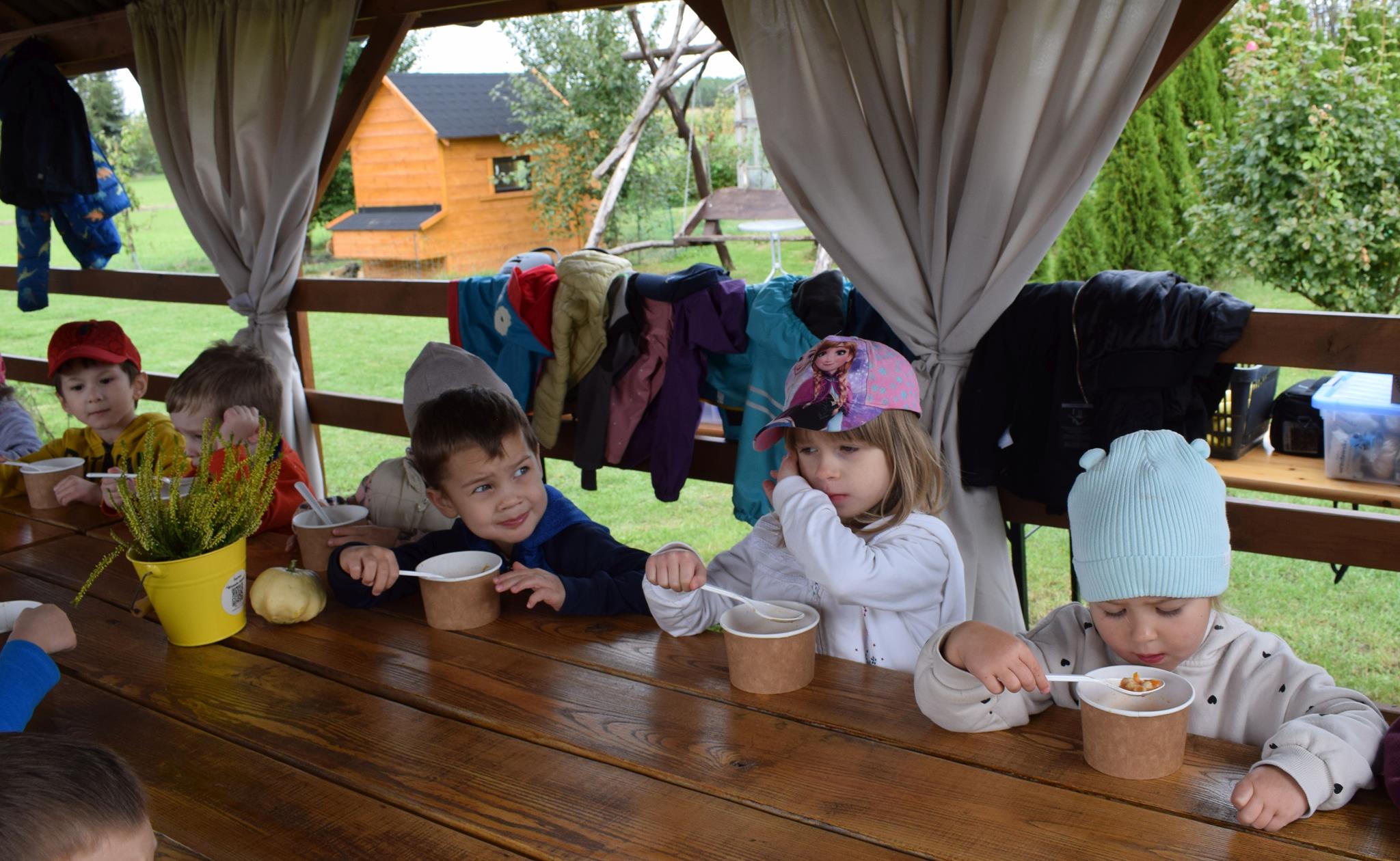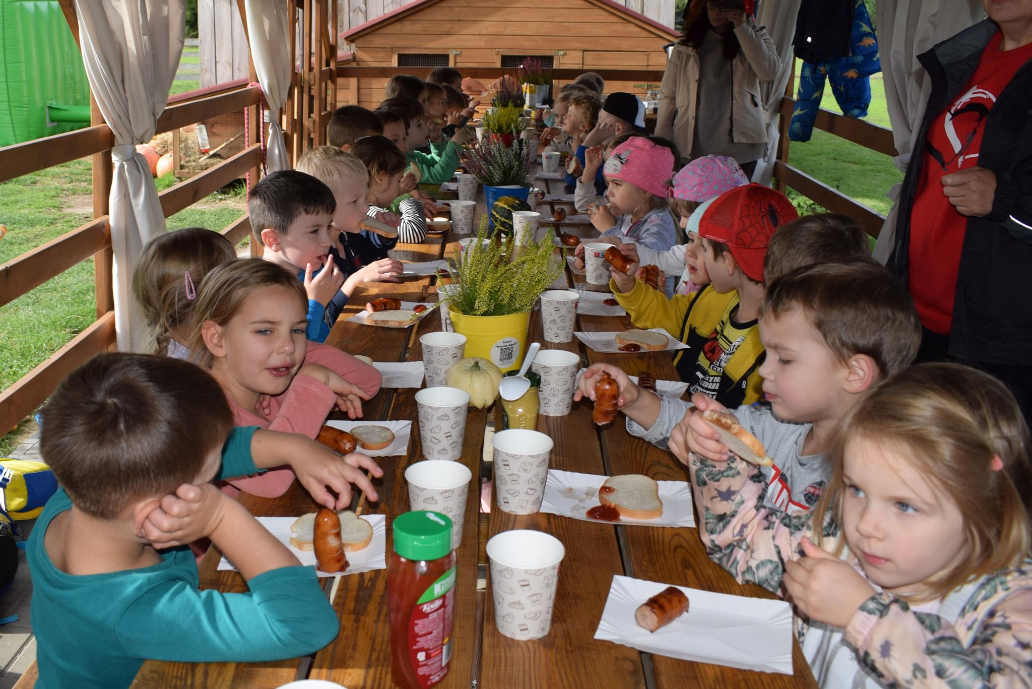 Na pierwszą wycieczkę w tym roku szkolnym wybraliśmy się do Farmy Wesołe Alpaki w miejscowości Żabokliki koło Siedlec. Najważniejszym punktem programu naszej wycieczki było spotkanie ze zwierzętami. Poznaliśmy mieszkańców farmy z bliska: alpaki, kozy, króliki, owce, osiołka, kucyka i kury. Uczyliśmy się, jak bezpiecznie i z szacunkiem obchodzić się ze zwierzątkami. Mogliśmy je pogłaskać, nakarmić, a także przytulić. Uczestniczyliśmy w jesiennych grach i zabawach, i kolejny raz przekonaliśmy się, że śmiech i ruch to najlepszy sposób na integrację! Miłych chwil doświadczyliśmy w trakcie oprowadzanek na kucyku, była to dla nas ważna lekcja zaufania do zwierząt. Dmuchańce – to prawdziwa frajda, to taka atrakcja, która nigdy się nam nie nudzi. Uczestniczyliśmy w zajęciach prowadzonych przez lekarza weterynarii. Dowiedzieliśmy się, jak wygląda praca ze zwierzętami „od kuchni”, zobaczyliśmy prawdziwe narzędzia lekarskie, mogliśmy także osłuchać serduszko kucyka. Gospodarzom farmy serdecznie dziękujemy za wszystkie atrakcje, ciekawe zajęcia, wspólną zabawę. Był to dla nas udany dzień i udana WYCIECZKA!