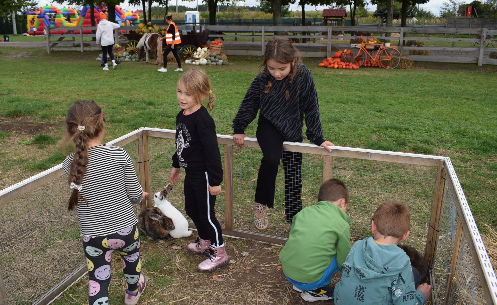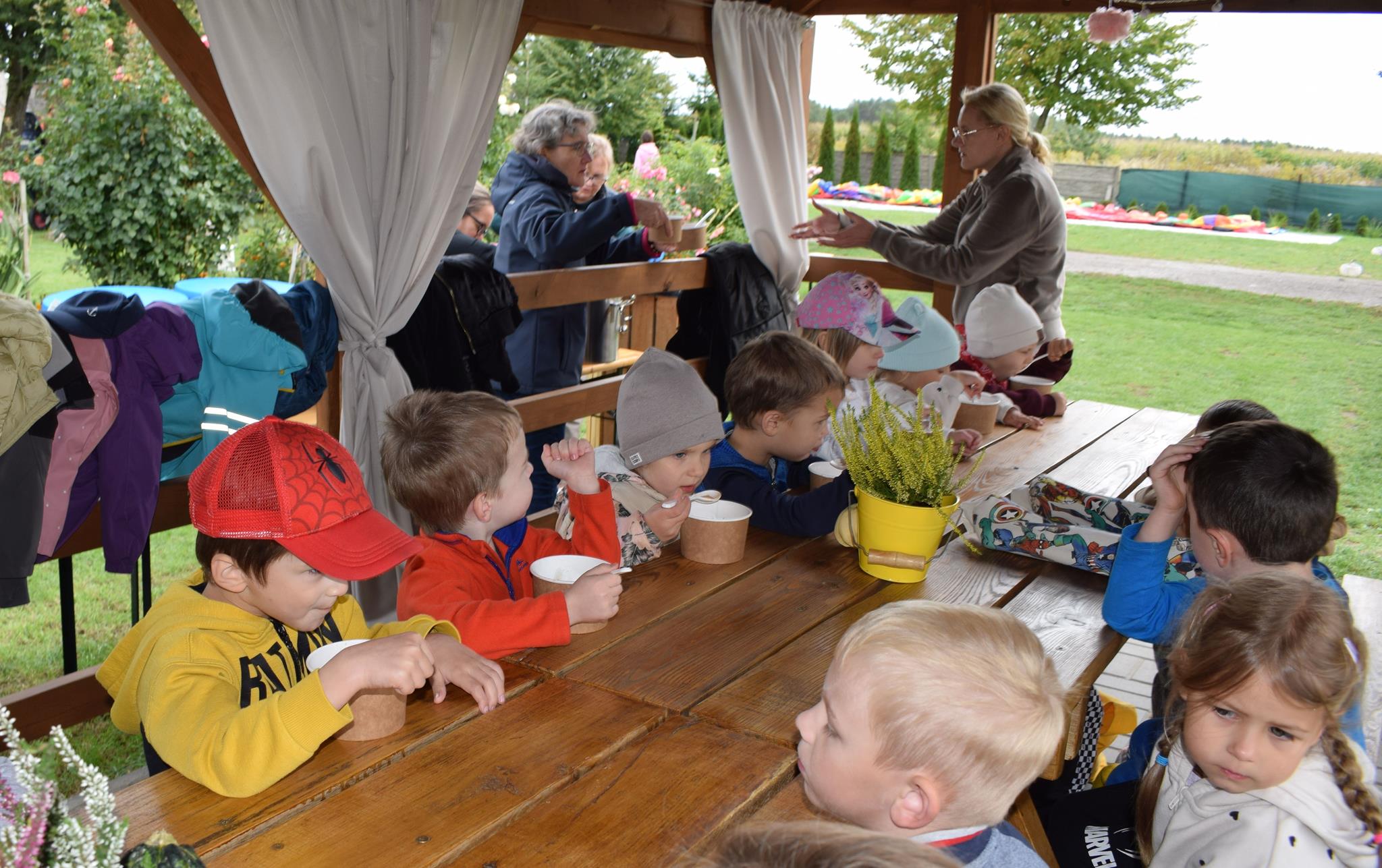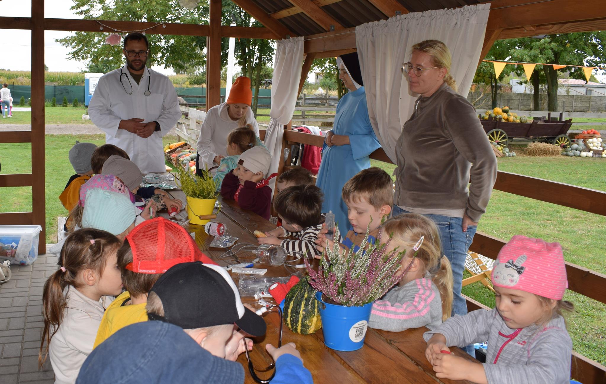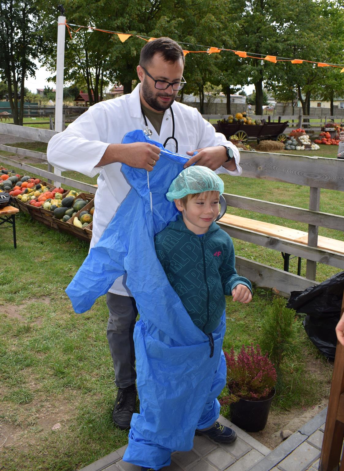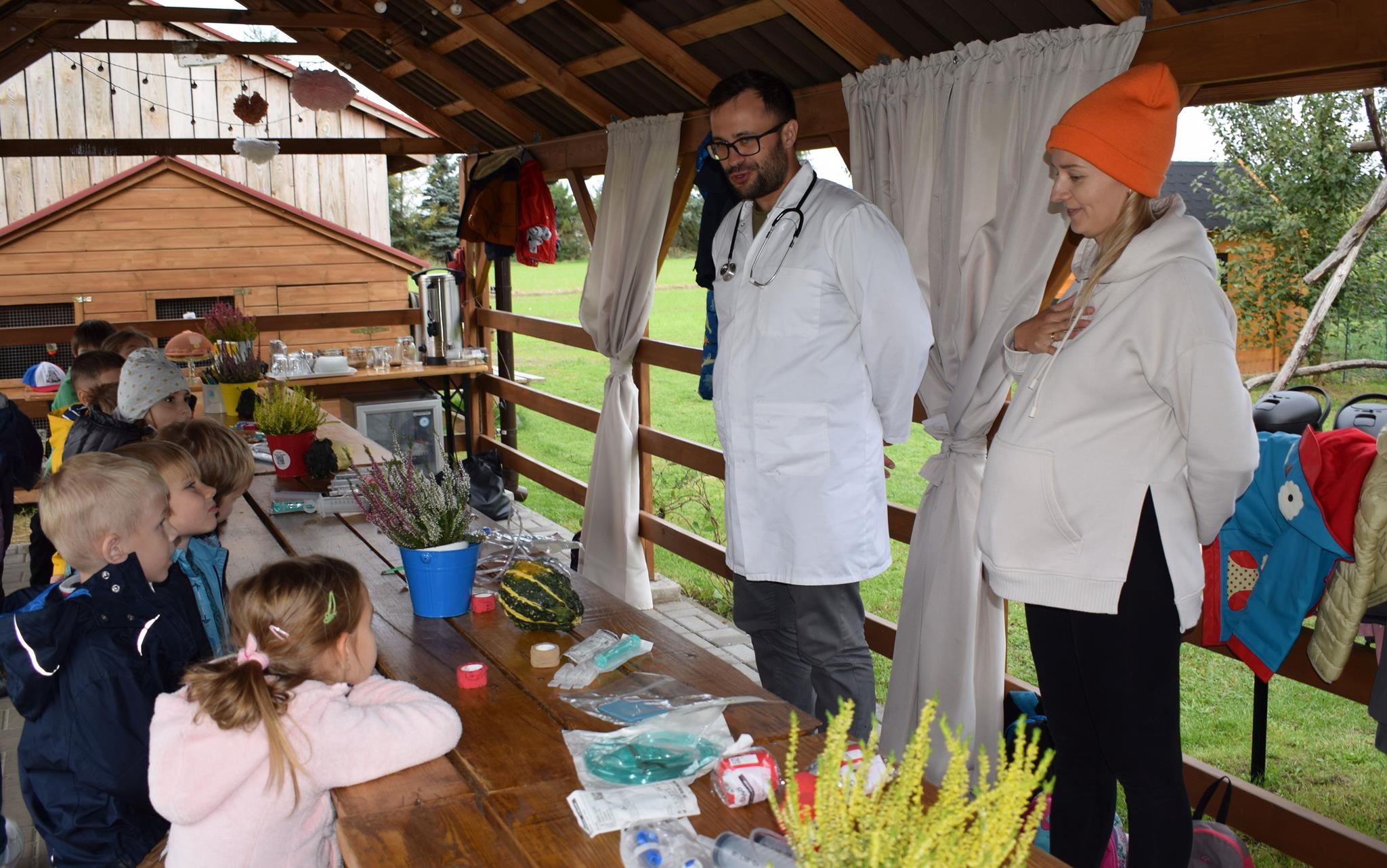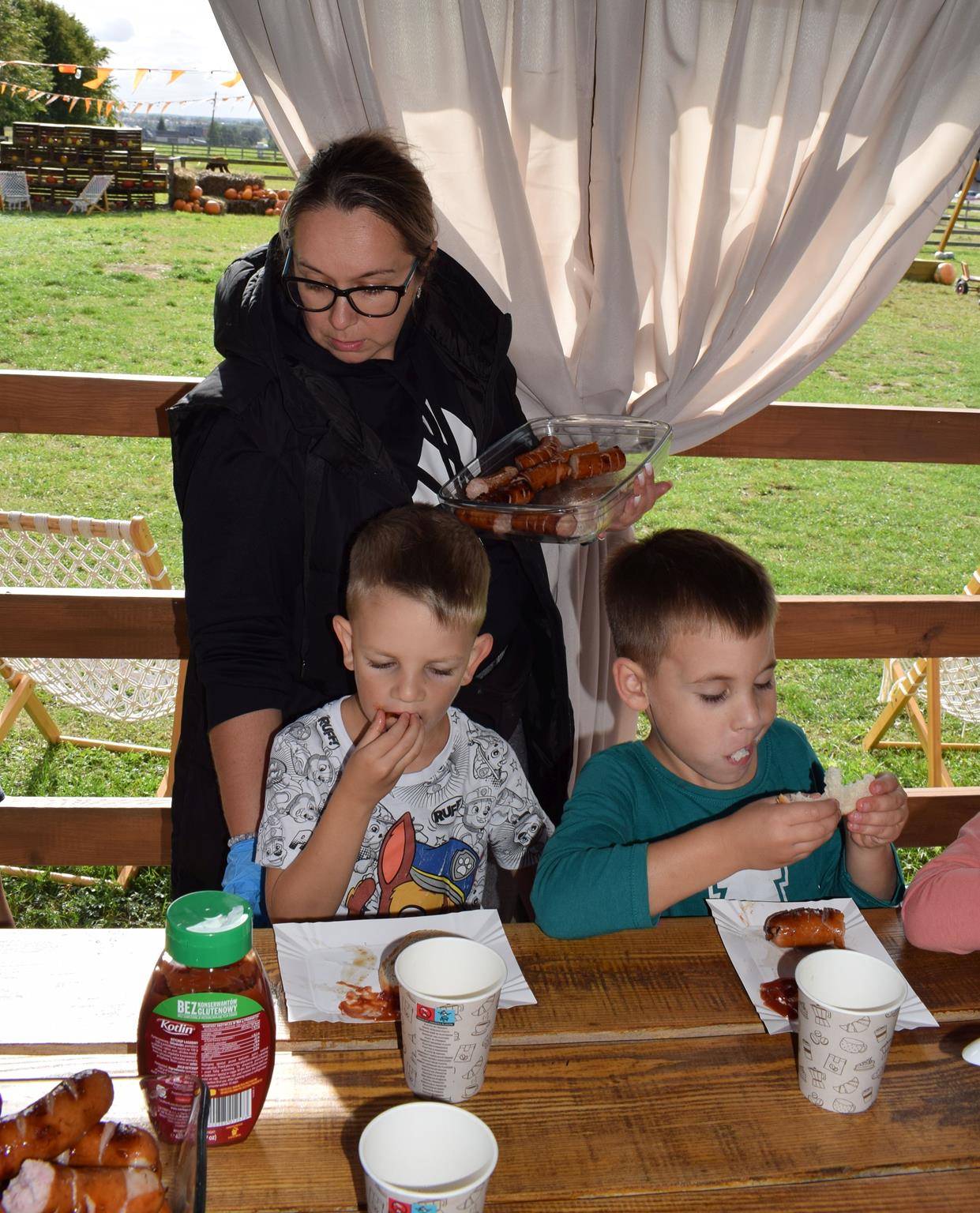 Na pierwszą wycieczkę w tym roku szkolnym wybraliśmy się do Farmy Wesołe Alpaki w miejscowości Żabokliki koło Siedlec. Najważniejszym punktem programu naszej wycieczki było spotkanie ze zwierzętami. Poznaliśmy mieszkańców farmy z bliska: alpaki, kozy, króliki, owce, osiołka, kucyka i kury. Uczyliśmy się, jak bezpiecznie i z szacunkiem obchodzić się ze zwierzątkami. Mogliśmy je pogłaskać, nakarmić, a także przytulić. Uczestniczyliśmy w jesiennych grach i zabawach, i kolejny raz przekonaliśmy się, że śmiech i ruch to najlepszy sposób na integrację! Miłych chwil doświadczyliśmy w trakcie oprowadzanek na kucyku, była to dla nas ważna lekcja zaufania do zwierząt. Dmuchańce – to prawdziwa frajda, to taka atrakcja, która nigdy się nam nie nudzi. Uczestniczyliśmy w zajęciach prowadzonych przez lekarza weterynarii. Dowiedzieliśmy się, jak wygląda praca ze zwierzętami „od kuchni”, zobaczyliśmy prawdziwe narzędzia lekarskie, mogliśmy także osłuchać serduszko kucyka. Gospodarzom farmy serdecznie dziękujemy za wszystkie atrakcje, ciekawe zajęcia, wspólną zabawę. Był to dla nas udany dzień i udana WYCIECZKA!