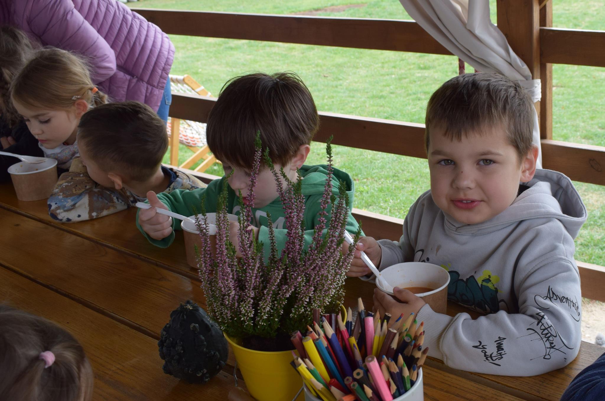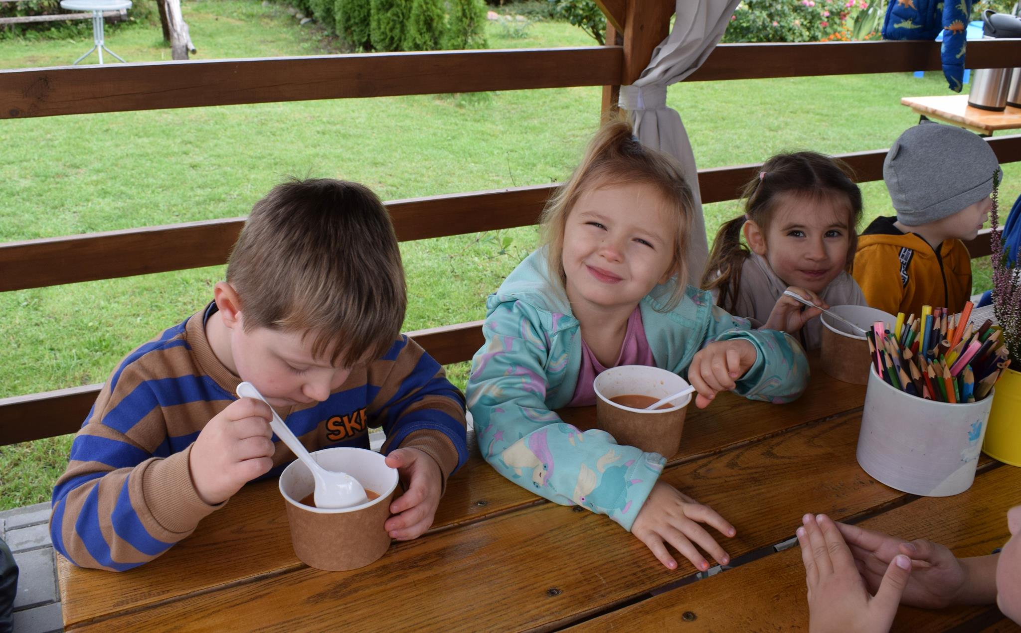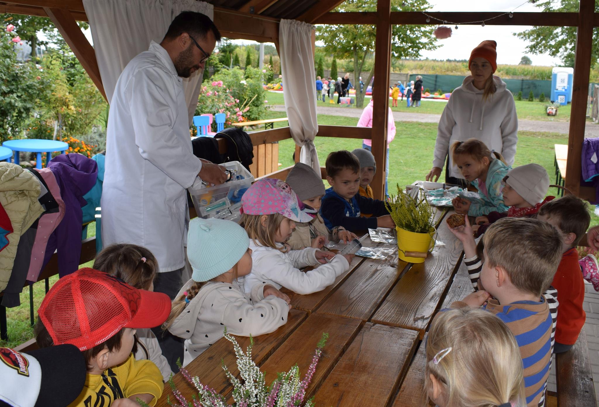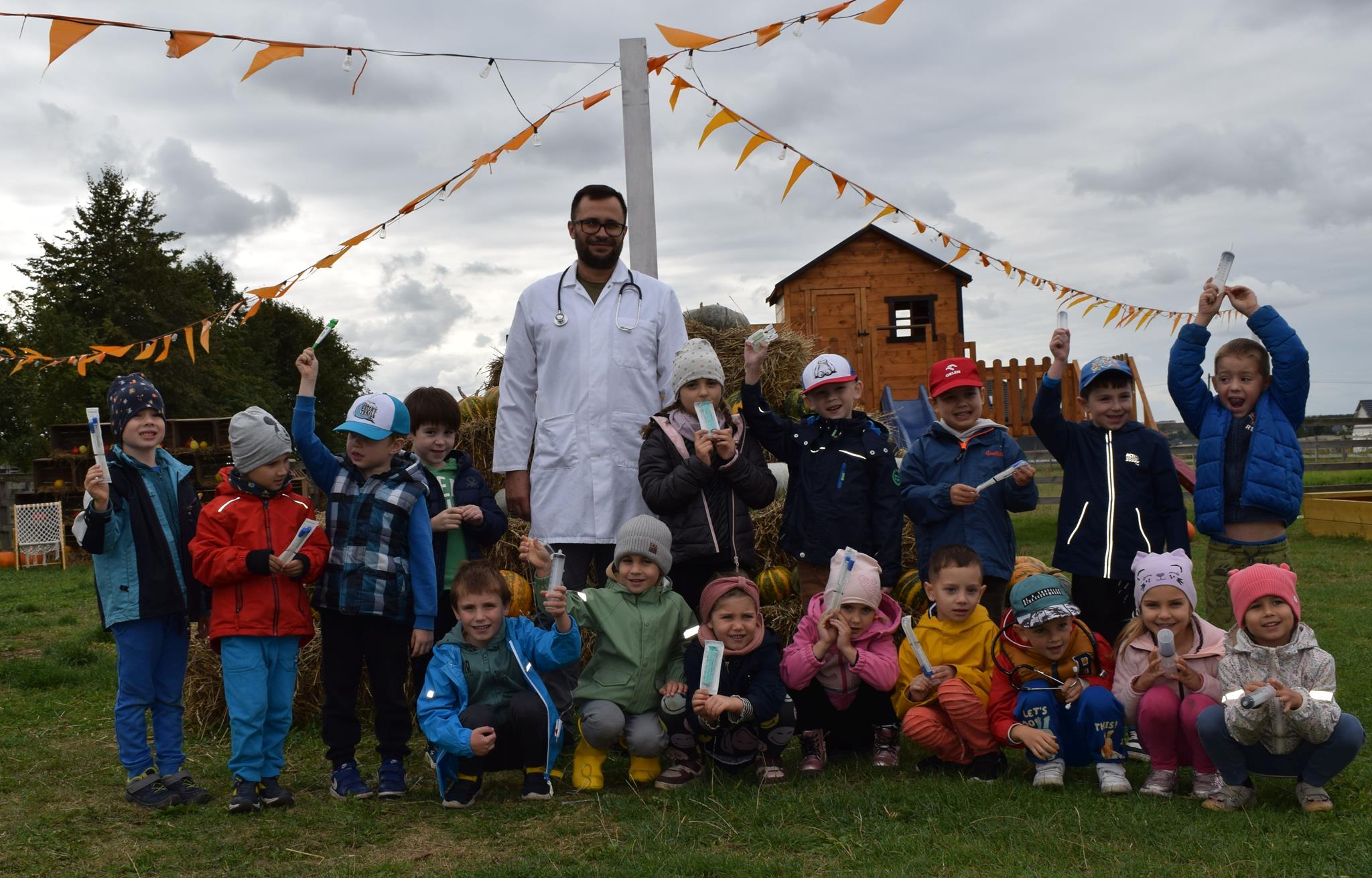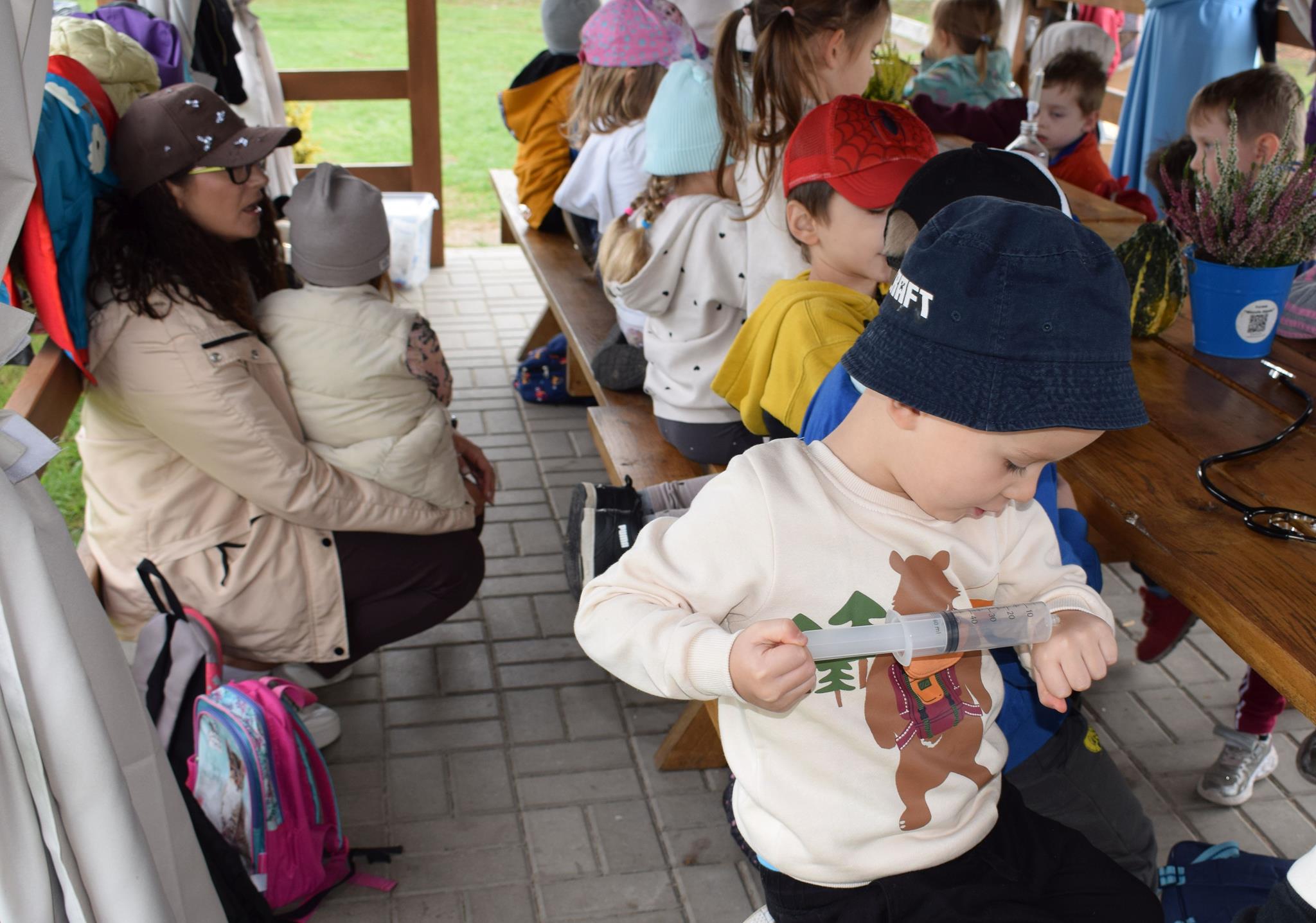 Na pierwszą wycieczkę w tym roku szkolnym wybraliśmy się do Farmy Wesołe Alpaki w miejscowości Żabokliki koło Siedlec. Najważniejszym punktem programu naszej wycieczki było spotkanie ze zwierzętami. Poznaliśmy mieszkańców farmy z bliska: alpaki, kozy, króliki, owce, osiołka, kucyka i kury. Uczyliśmy się, jak bezpiecznie i z szacunkiem obchodzić się ze zwierzątkami. Mogliśmy je pogłaskać, nakarmić, a także przytulić. Uczestniczyliśmy w jesiennych grach i zabawach, i kolejny raz przekonaliśmy się, że śmiech i ruch to najlepszy sposób na integrację! Miłych chwil doświadczyliśmy w trakcie oprowadzanek na kucyku, była to dla nas ważna lekcja zaufania do zwierząt. Dmuchańce – to prawdziwa frajda, to taka atrakcja, która nigdy się nam nie nudzi. Uczestniczyliśmy w zajęciach prowadzonych przez lekarza weterynarii. Dowiedzieliśmy się, jak wygląda praca ze zwierzętami „od kuchni”, zobaczyliśmy prawdziwe narzędzia lekarskie, mogliśmy także osłuchać serduszko kucyka. Gospodarzom farmy serdecznie dziękujemy za wszystkie atrakcje, ciekawe zajęcia, wspólną zabawę. Był to dla nas udany dzień i udana WYCIECZKA!