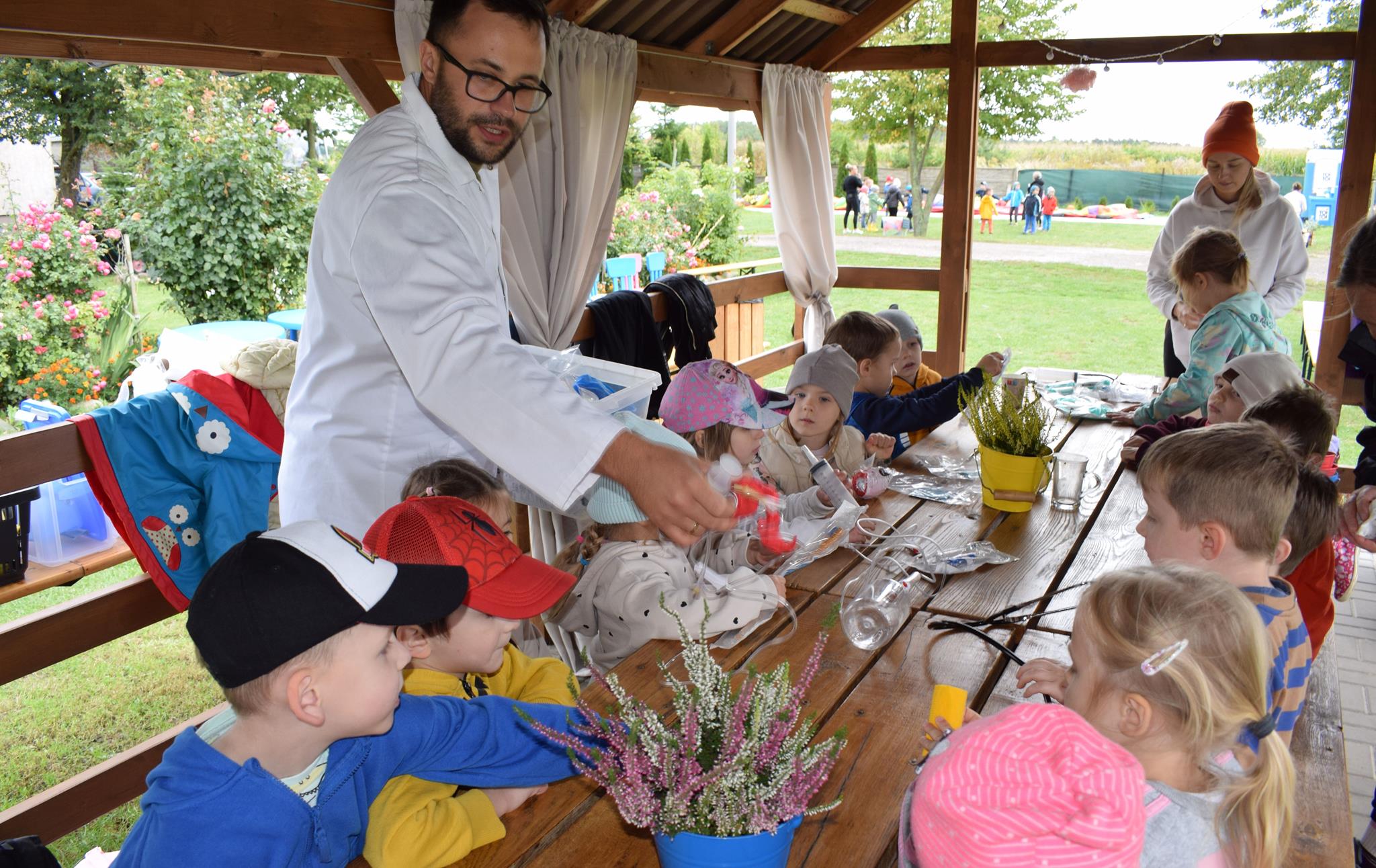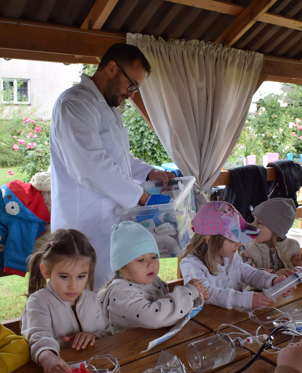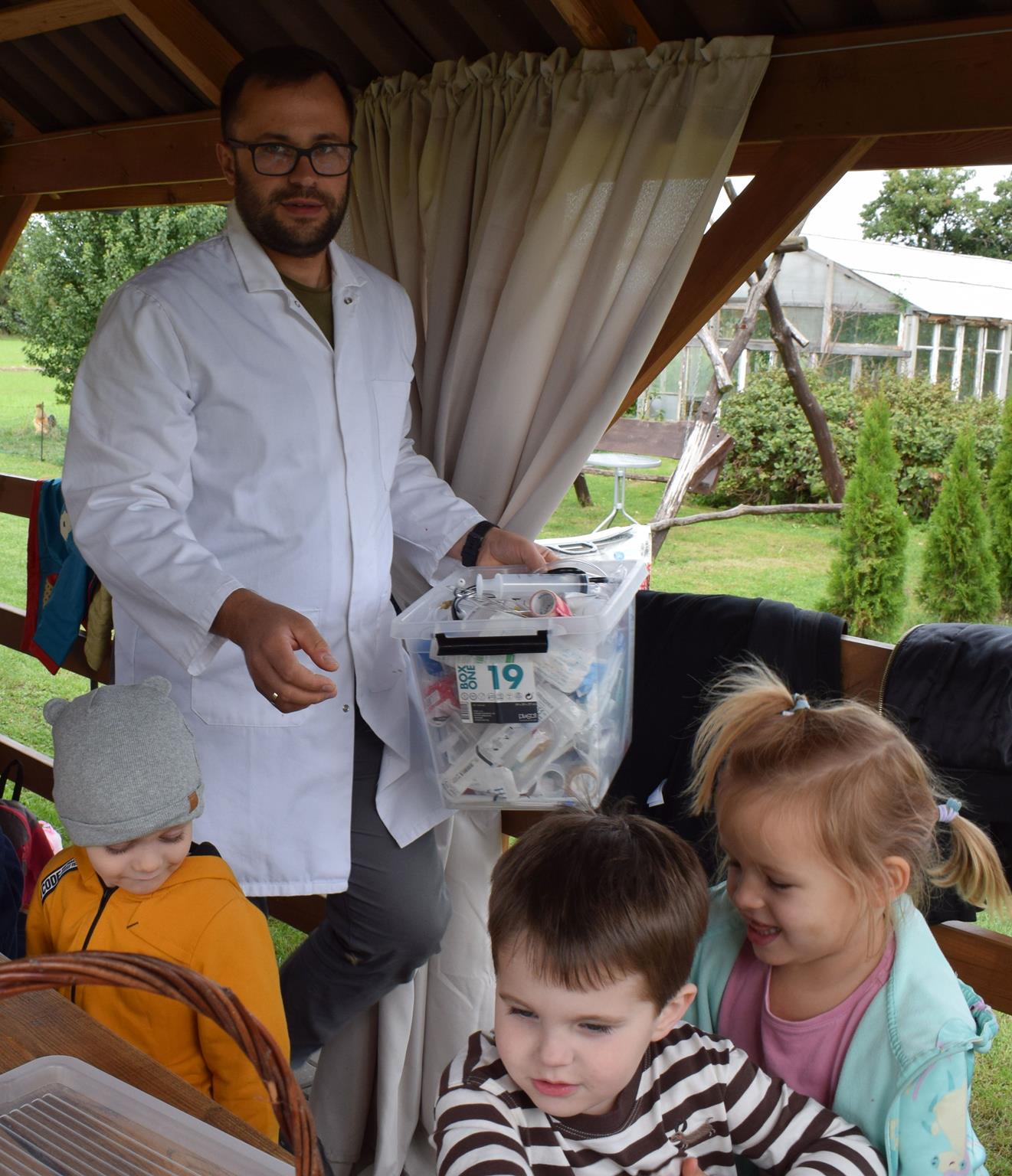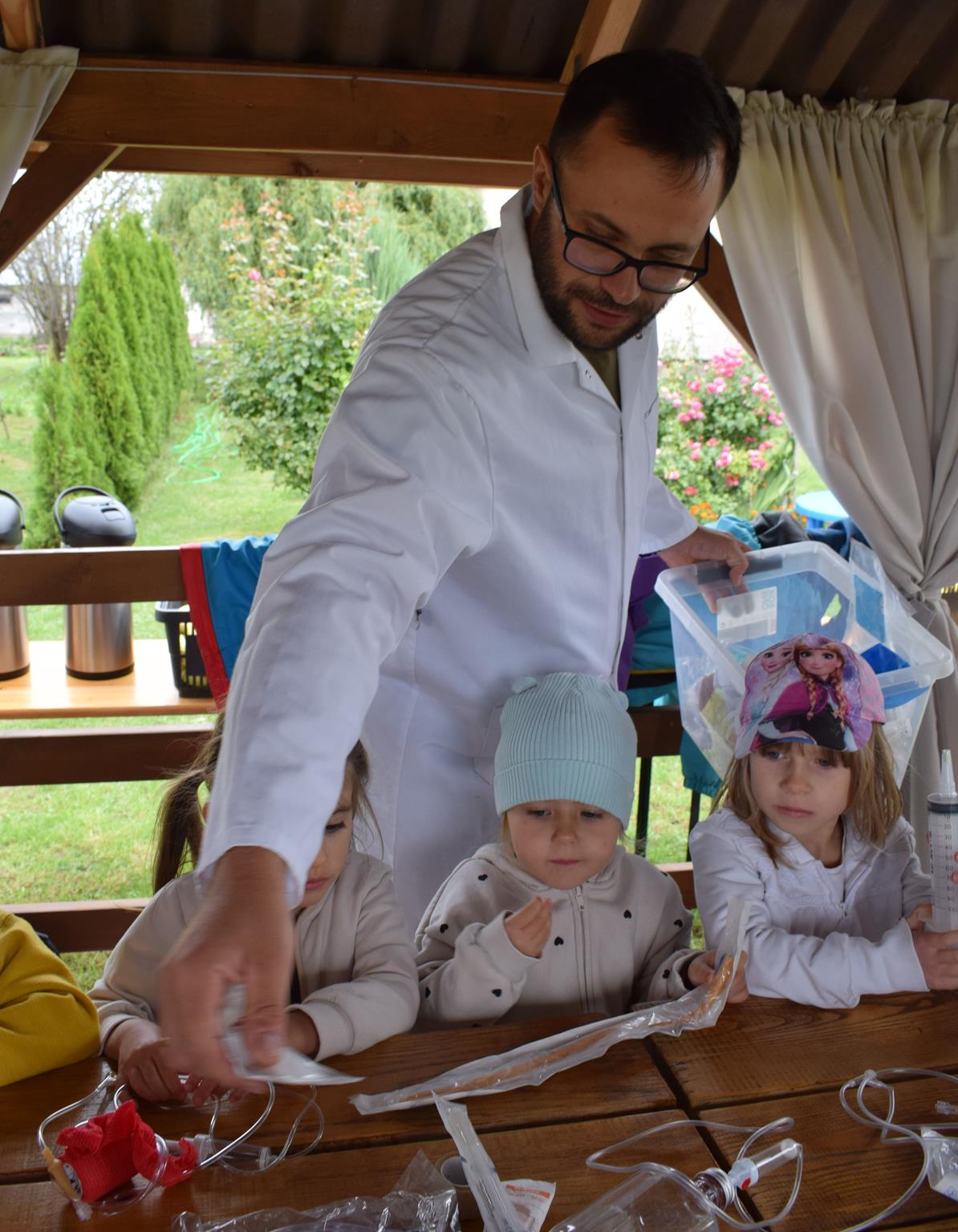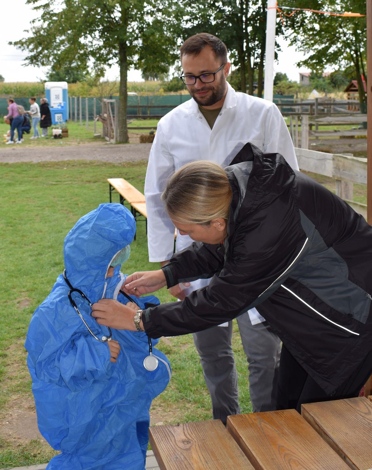Na pierwszą wycieczkę w tym roku szkolnym wybraliśmy się do Farmy Wesołe Alpaki w miejscowości Żabokliki koło Siedlec. Najważniejszym punktem programu naszej wycieczki było spotkanie ze zwierzętami. Poznaliśmy mieszkańców farmy z bliska: alpaki, kozy, króliki, owce, osiołka, kucyka i kury. Uczyliśmy się, jak bezpiecznie i z szacunkiem obchodzić się ze zwierzątkami. Mogliśmy je pogłaskać, nakarmić, a także przytulić. Uczestniczyliśmy w jesiennych grach i zabawach, i kolejny raz przekonaliśmy się, że śmiech i ruch to najlepszy sposób na integrację! Miłych chwil doświadczyliśmy w trakcie oprowadzanek na kucyku, była to dla nas ważna lekcja zaufania do zwierząt. Dmuchańce – to prawdziwa frajda, to taka atrakcja, która nigdy się nam nie nudzi. Uczestniczyliśmy w zajęciach prowadzonych przez lekarza weterynarii. Dowiedzieliśmy się, jak wygląda praca ze zwierzętami „od kuchni”, zobaczyliśmy prawdziwe narzędzia lekarskie, mogliśmy także osłuchać serduszko kucyka. Gospodarzom farmy serdecznie dziękujemy za wszystkie atrakcje, ciekawe zajęcia, wspólną zabawę. Był to dla nas udany dzień i udana WYCIECZKA!