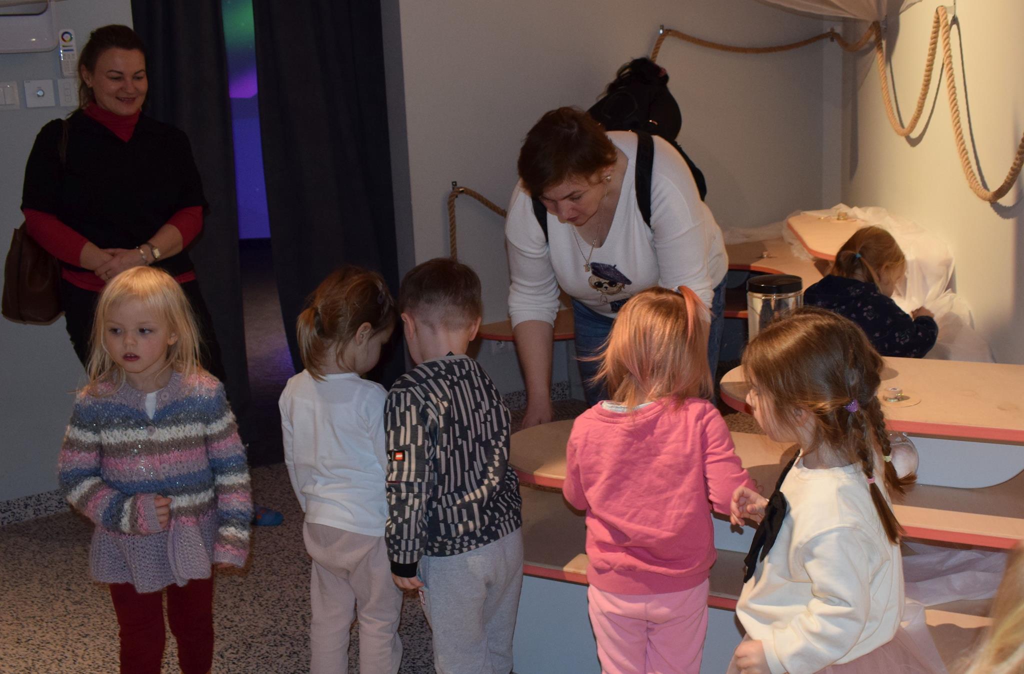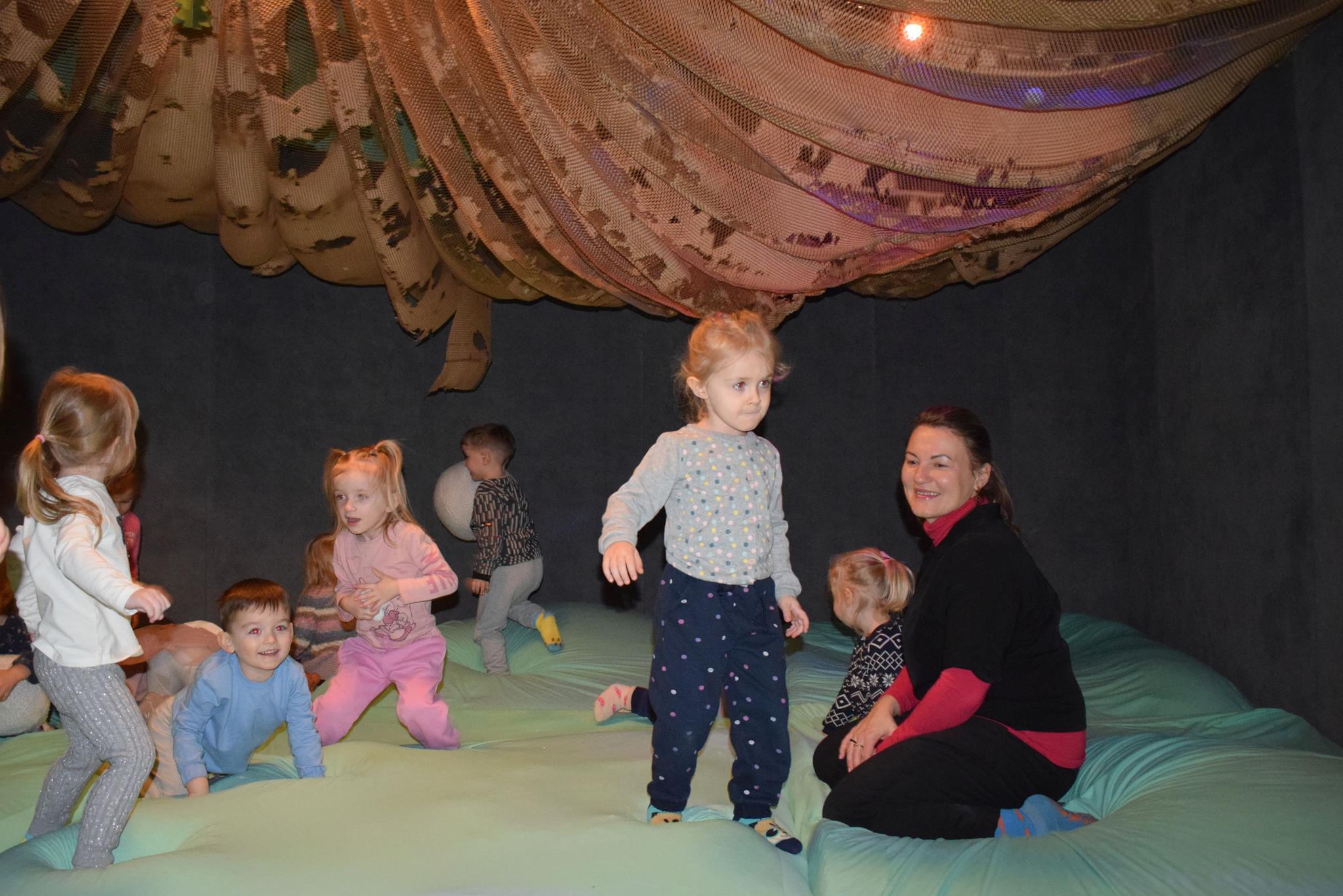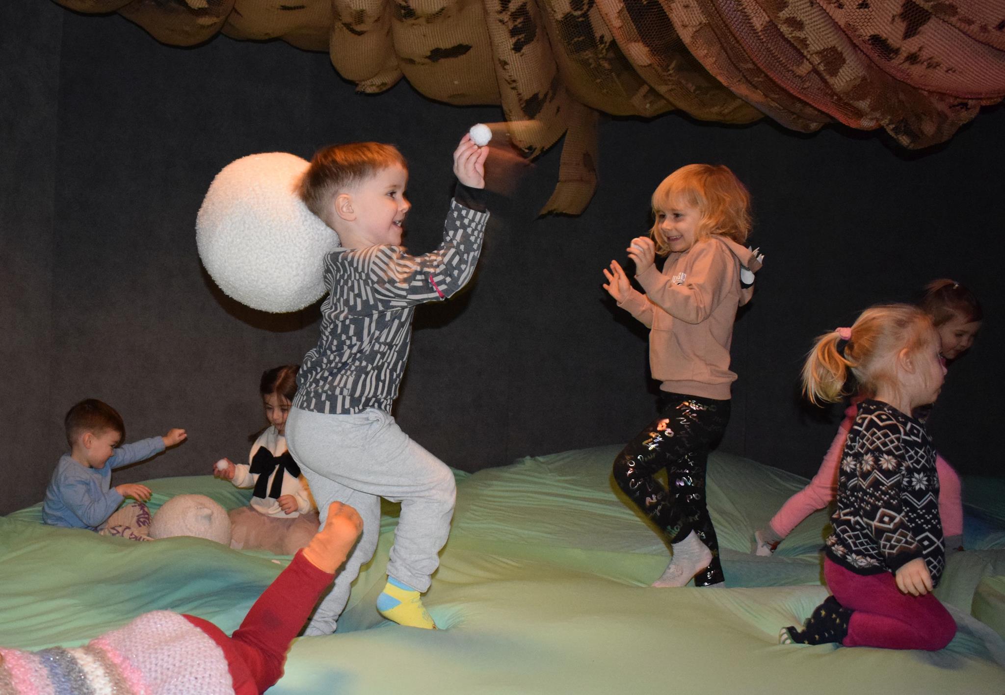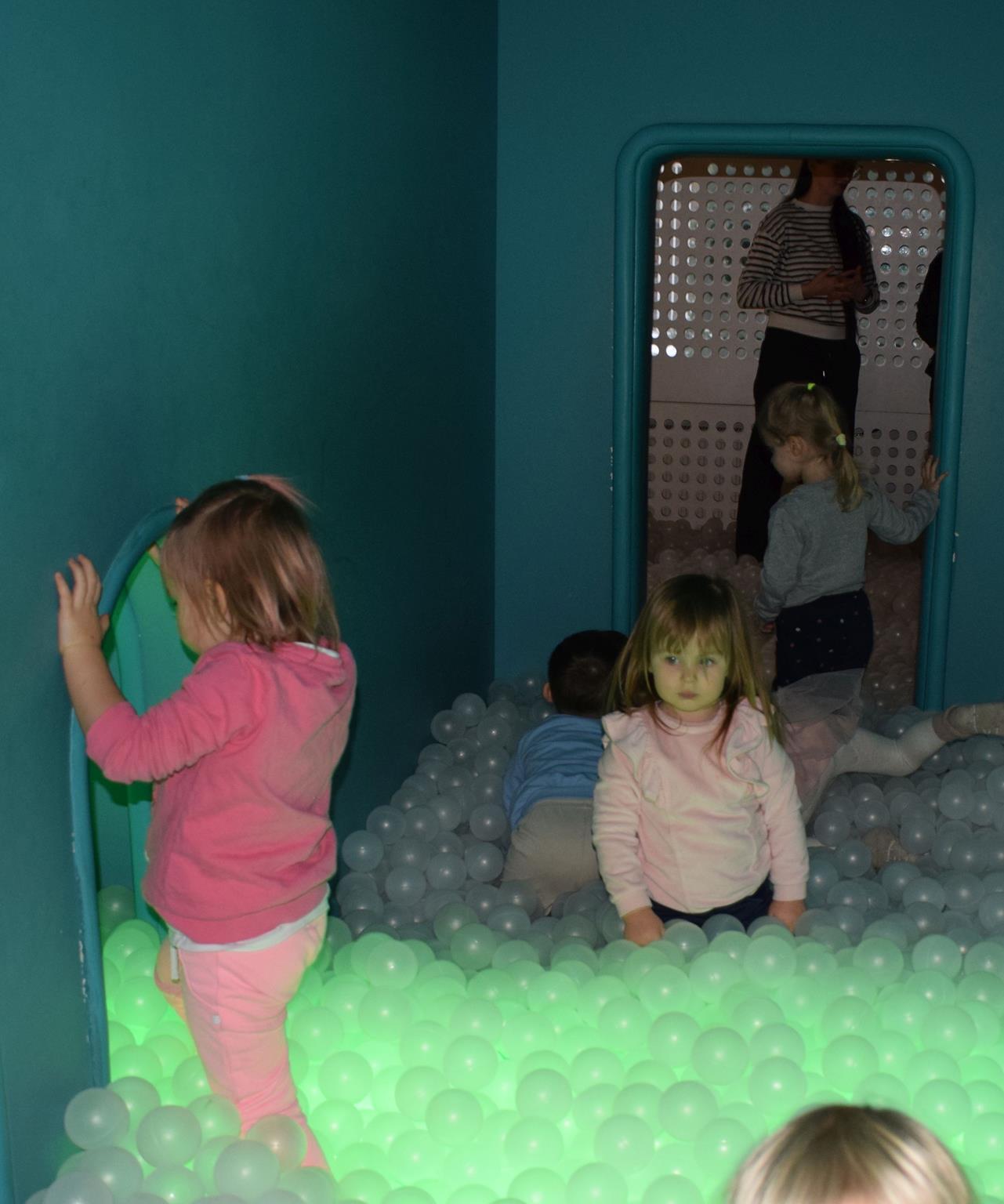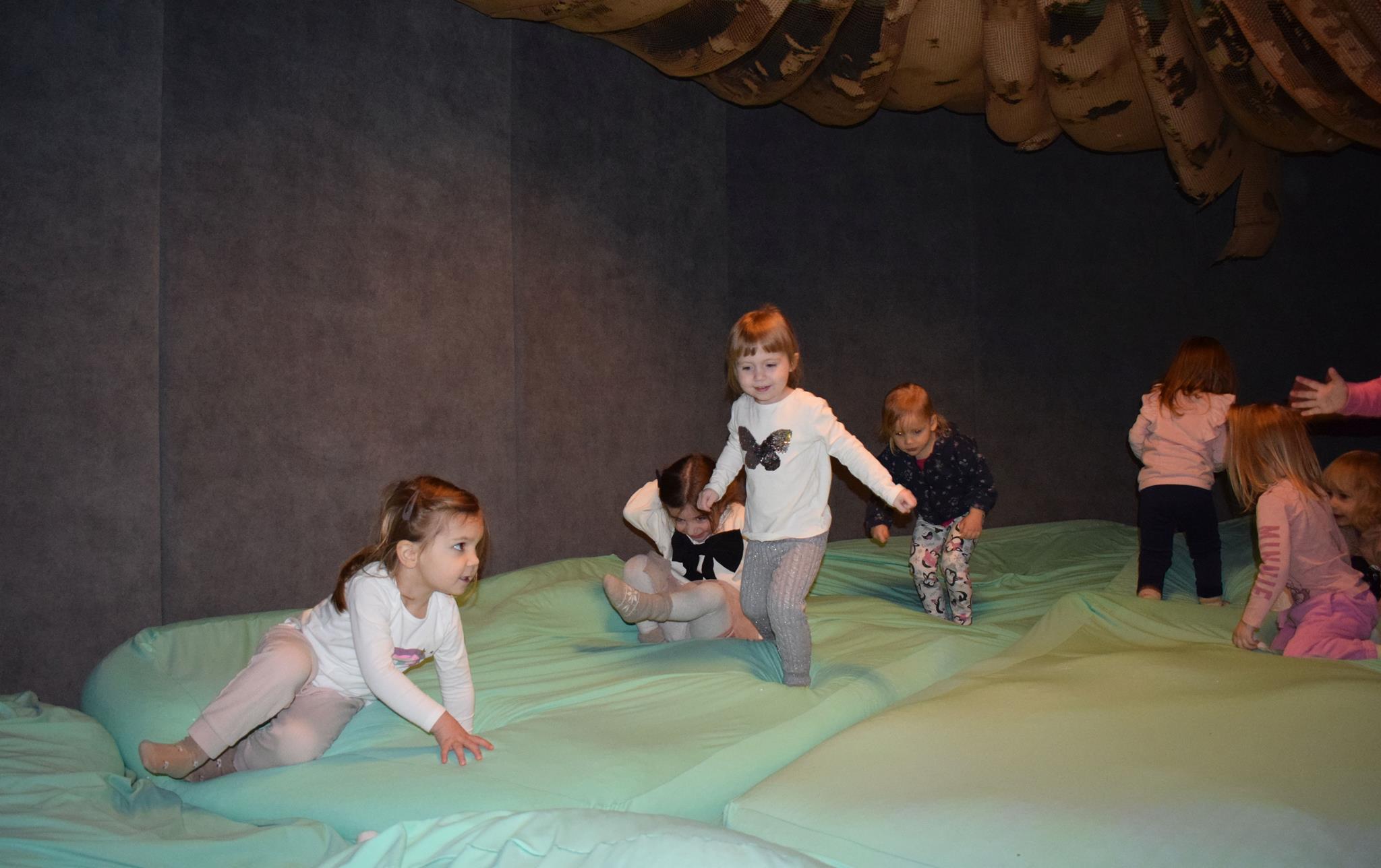 Najmłodsze dzieci z gr. Delfinki wybrały się do Sali Zabaw Sensorysie, gdzie czekało je wiele atrakcji: spotkanie z interaktywnym Rysiem, pełna przygód podóż w kosmos, udział w zajęciach plastyczno-sensorycznych, mnóstwo czasu na zabawę ruchową. Do dyspozycji były zjeżdżalnie, ścianka wspinaczkowa, labirynt sensoryczny, tunel z siatki, trampoliny, strefa lasu, jasknia foczek z kulkami, magnetyczne klocki, tablice manipulacyjne. Sensorysie to piękna sala zabaw, stworzona z myślą o dzieciach i ich rozwoju, dostosowana do potrzeb najmłodszych, zachęciła dzieci do aktywności i eksploracji świata zmysłów.