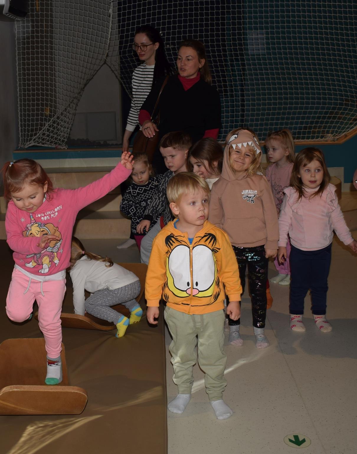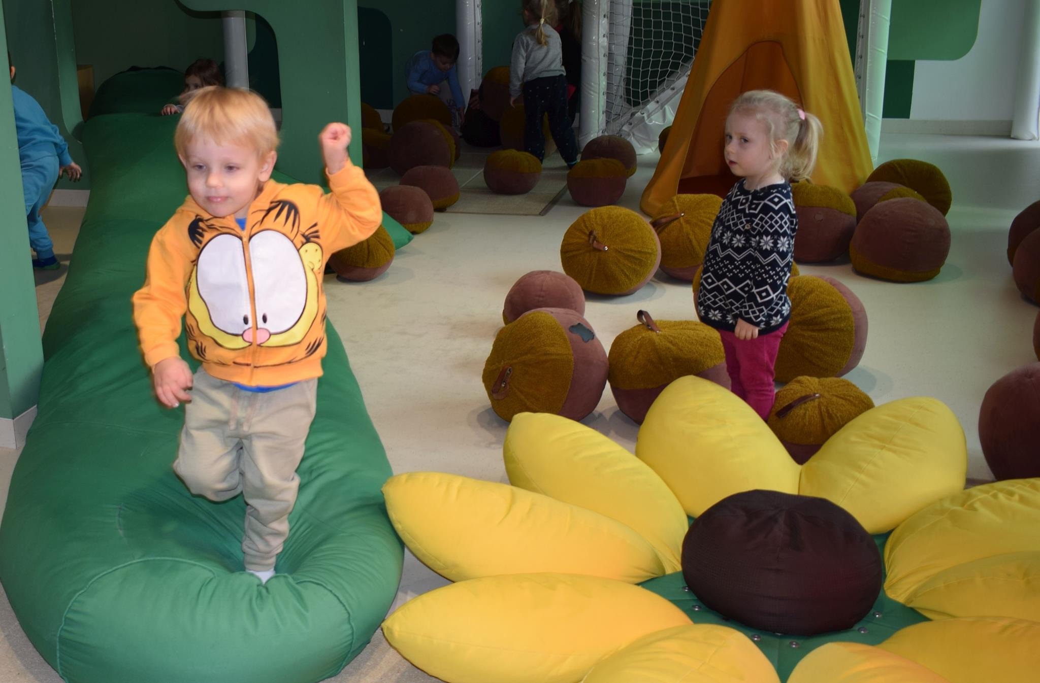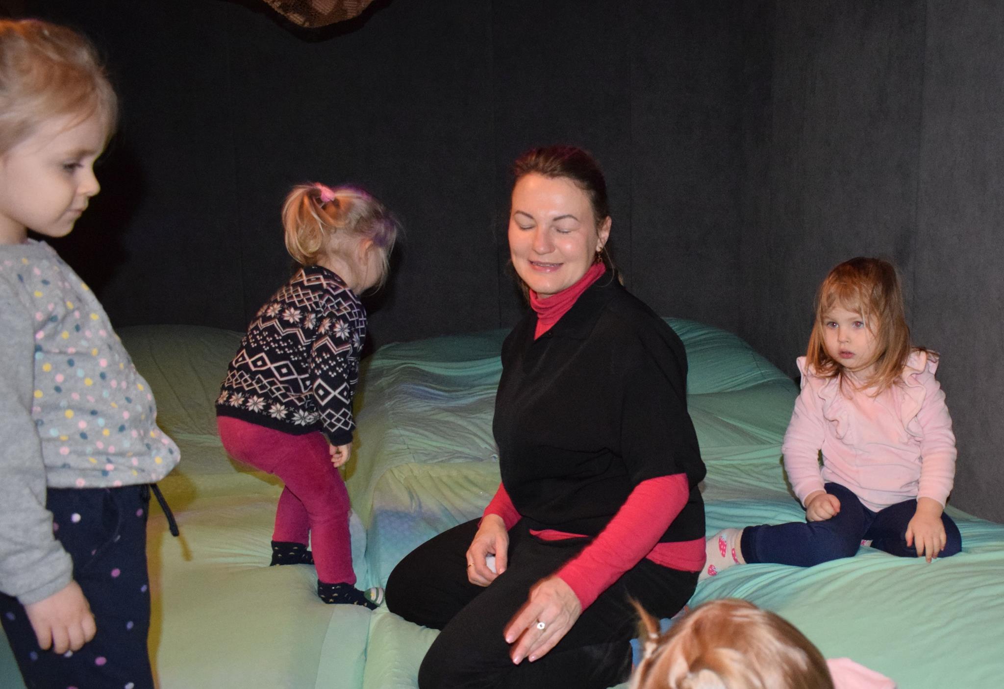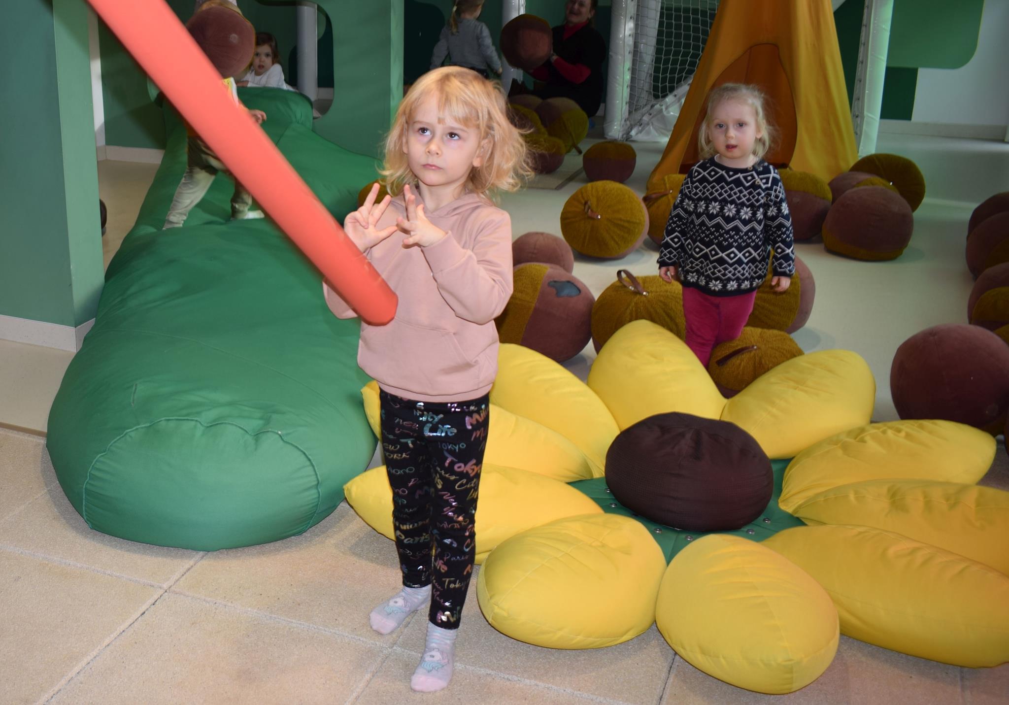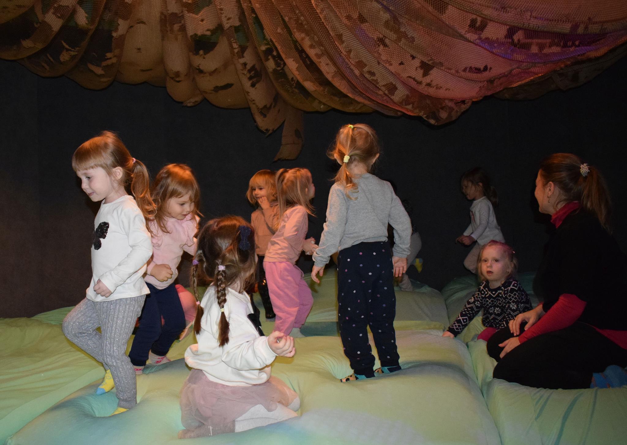 Najmłodsze dzieci z gr. Delfinki wybrały się do Sali Zabaw Sensorysie, gdzie czekało je wiele atrakcji: spotkanie z interaktywnym Rysiem, pełna przygód podóż w kosmos, udział w zajęciach plastyczno-sensorycznych, mnóstwo czasu na zabawę ruchową. Do dyspozycji były zjeżdżalnie, ścianka wspinaczkowa, labirynt sensoryczny, tunel z siatki, trampoliny, strefa lasu, jasknia foczek z kulkami, magnetyczne klocki, tablice manipulacyjne. Sensorysie to piękna sala zabaw, stworzona z myślą o dzieciach i ich rozwoju, dostosowana do potrzeb najmłodszych, zachęciła dzieci do aktywności i eksploracji świata zmysłów.