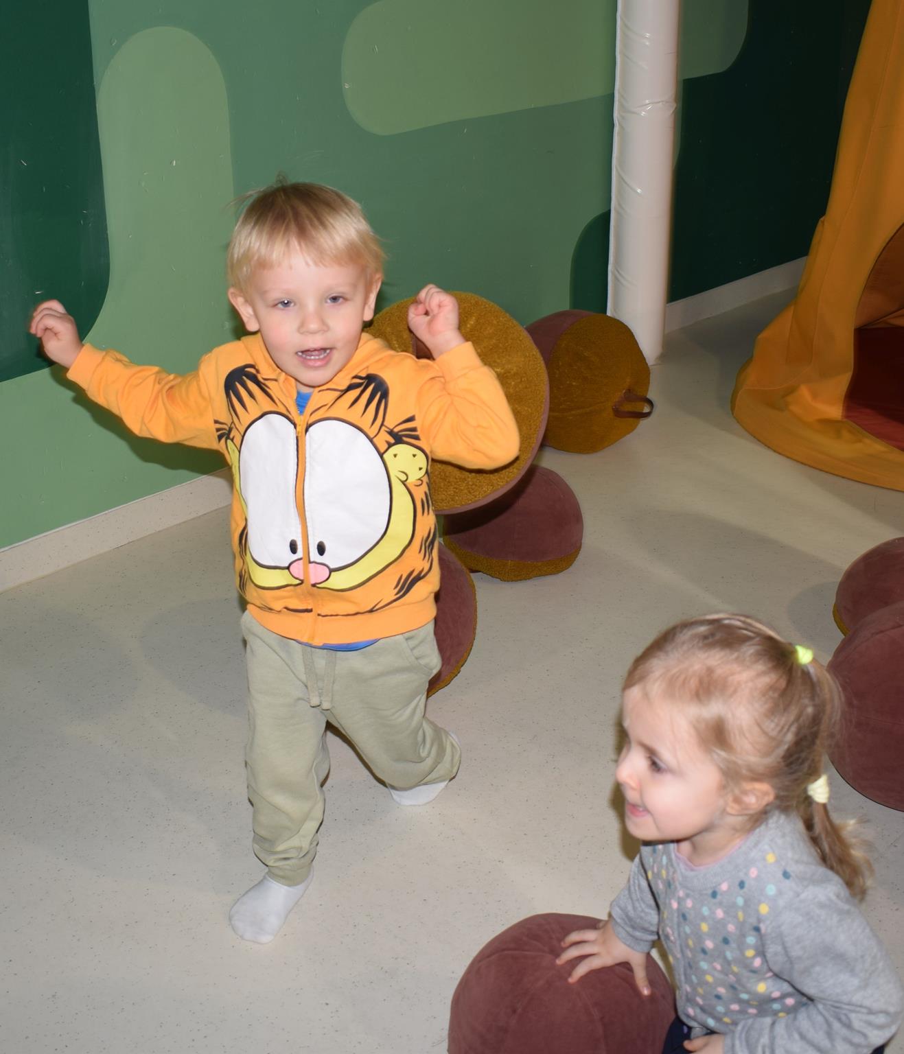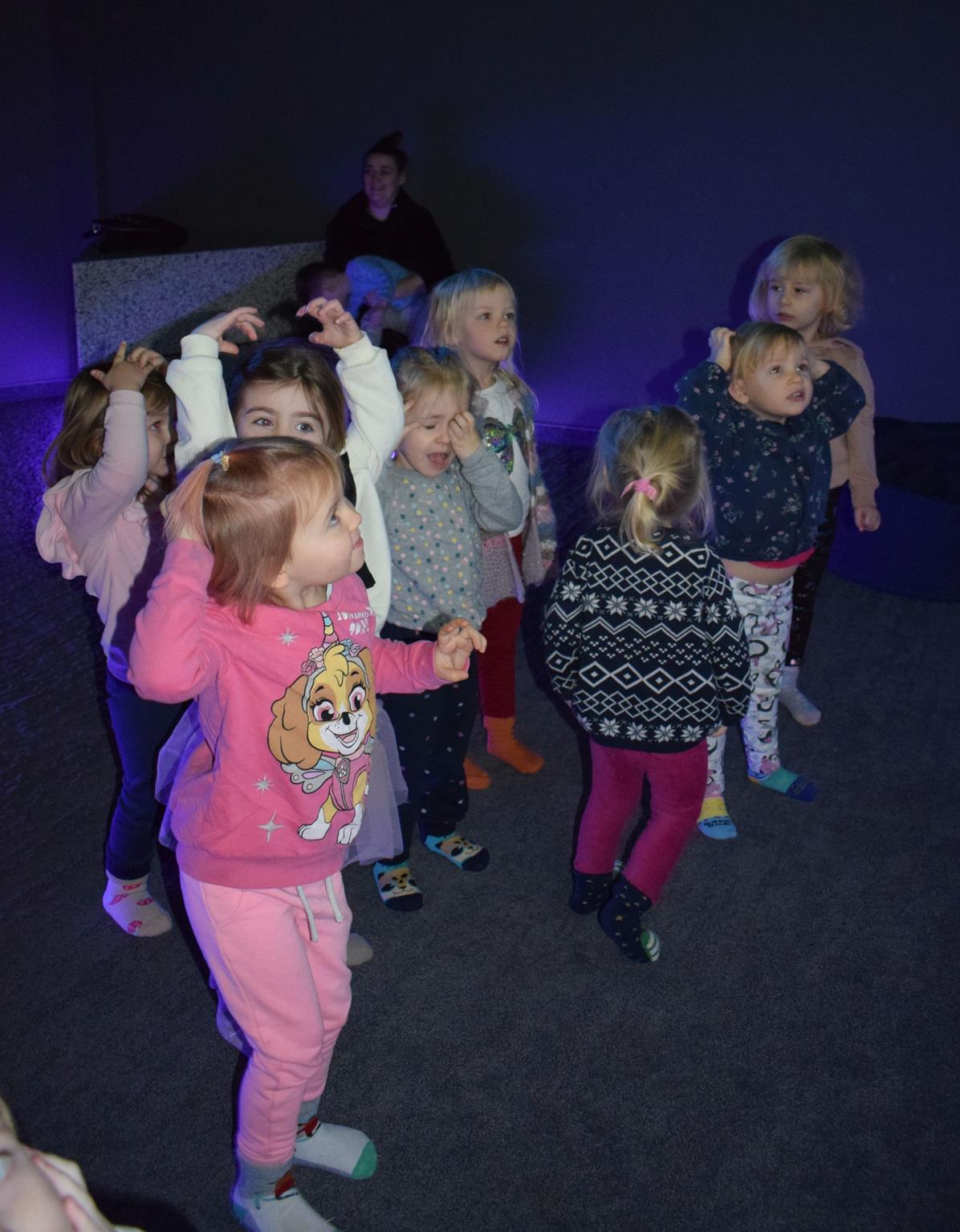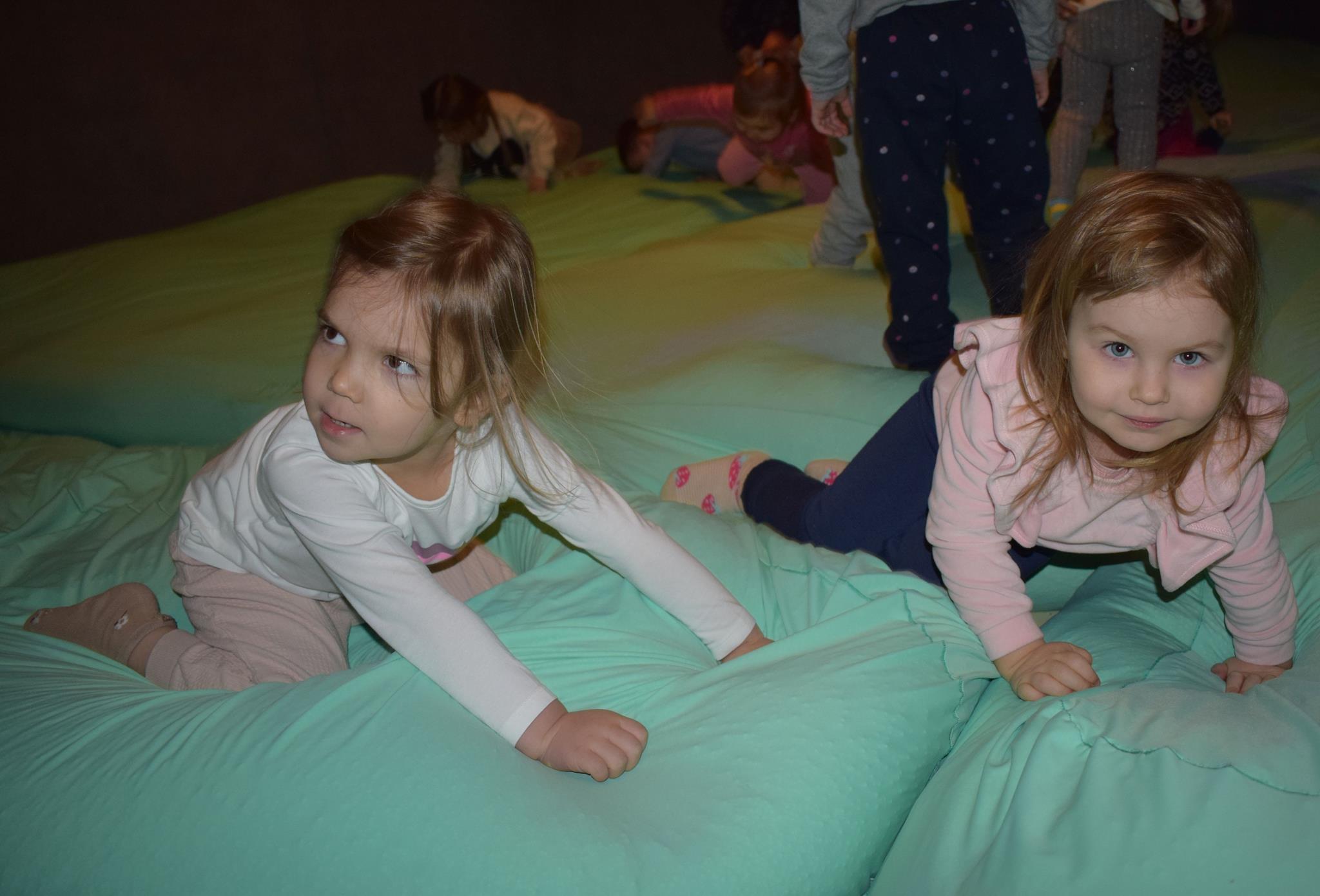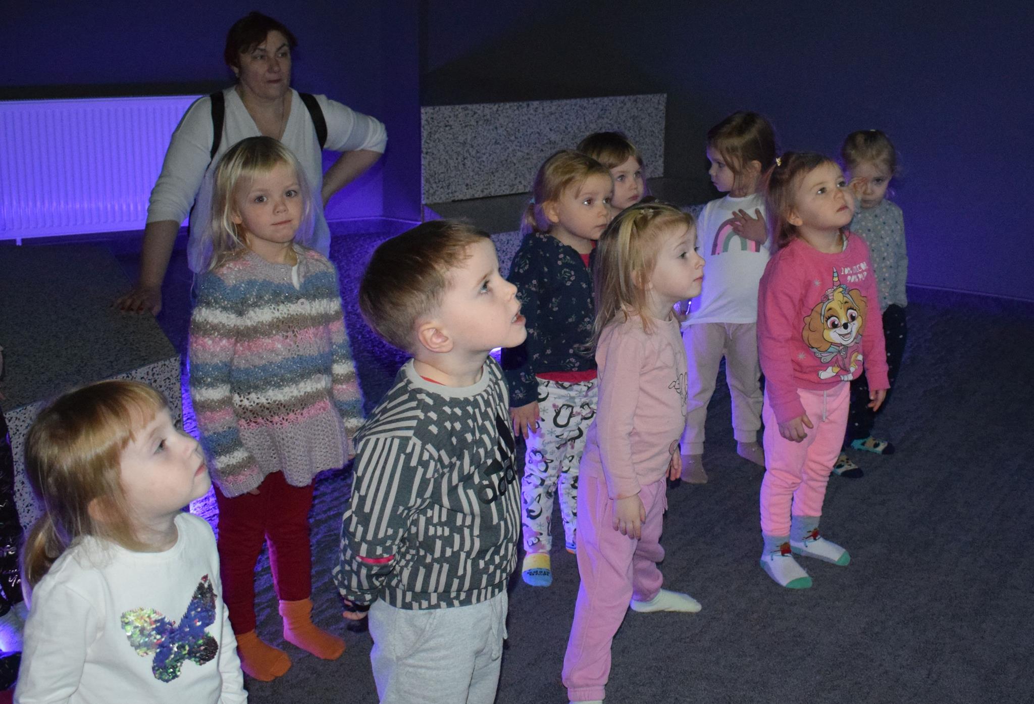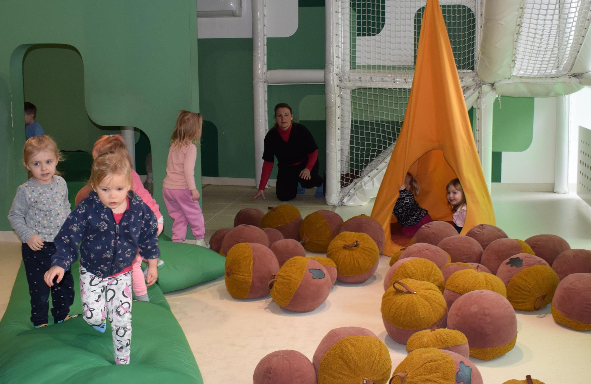 Najmłodsze dzieci z gr. Delfinki wybrały się do Sali Zabaw Sensorysie, gdzie czekało je wiele atrakcji: spotkanie z interaktywnym Rysiem, pełna przygód podóż w kosmos, udział w zajęciach plastyczno-sensorycznych, mnóstwo czasu na zabawę ruchową. Do dyspozycji były zjeżdżalnie, ścianka wspinaczkowa, labirynt sensoryczny, tunel z siatki, trampoliny, strefa lasu, jasknia foczek z kulkami, magnetyczne klocki, tablice manipulacyjne. Sensorysie to piękna sala zabaw, stworzona z myślą o dzieciach i ich rozwoju, dostosowana do potrzeb najmłodszych, zachęciła dzieci do aktywności i eksploracji świata zmysłów.