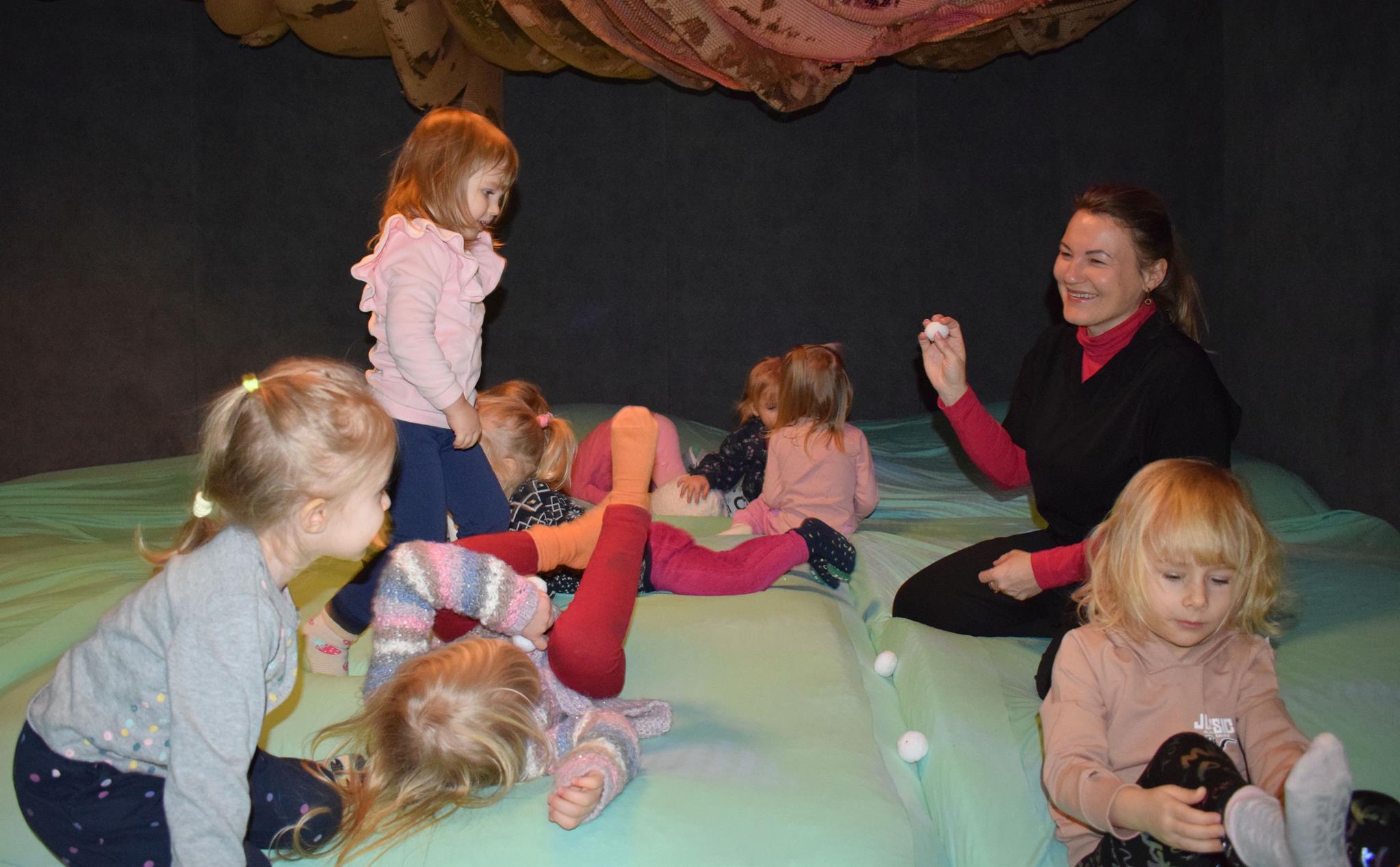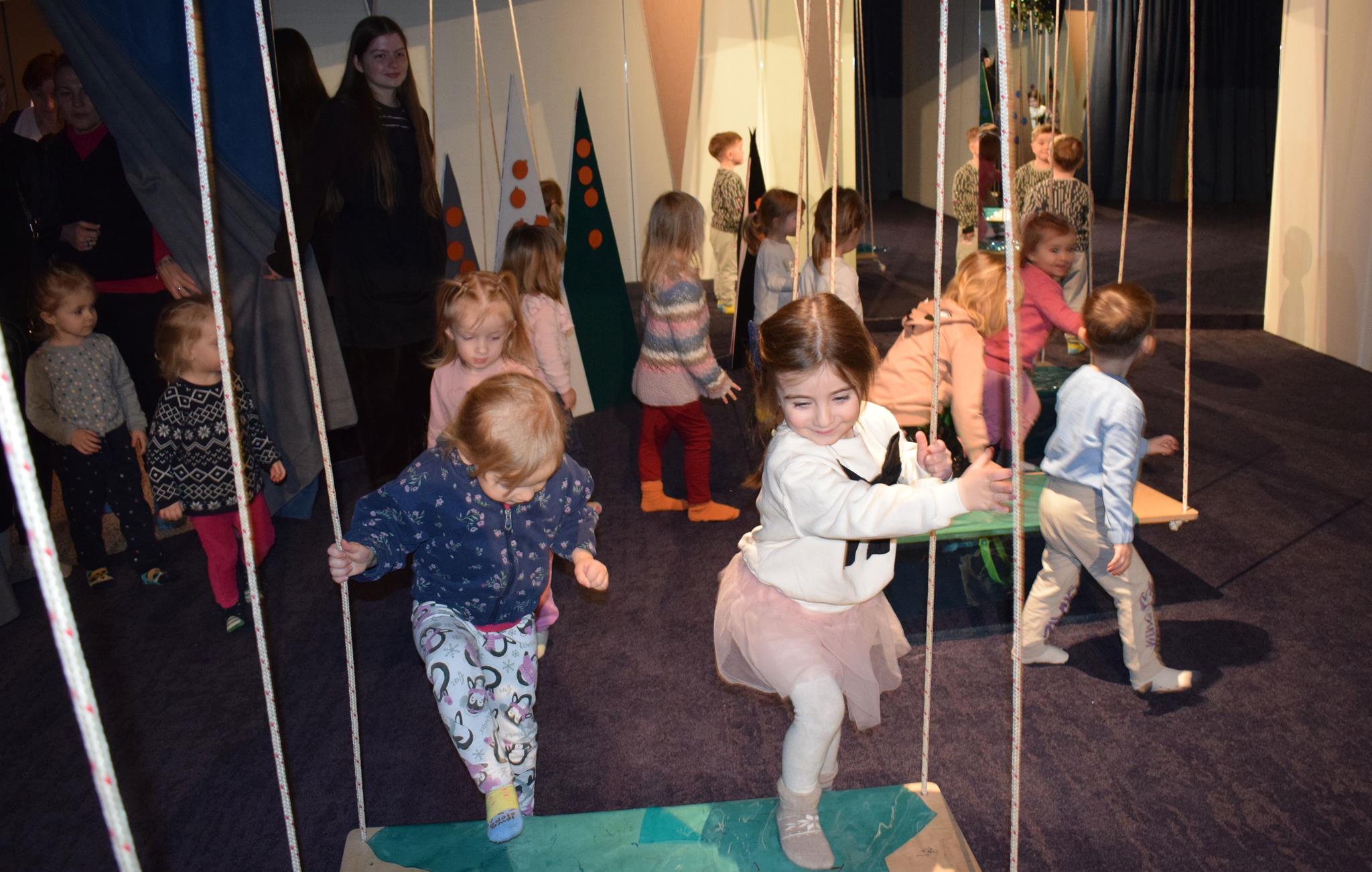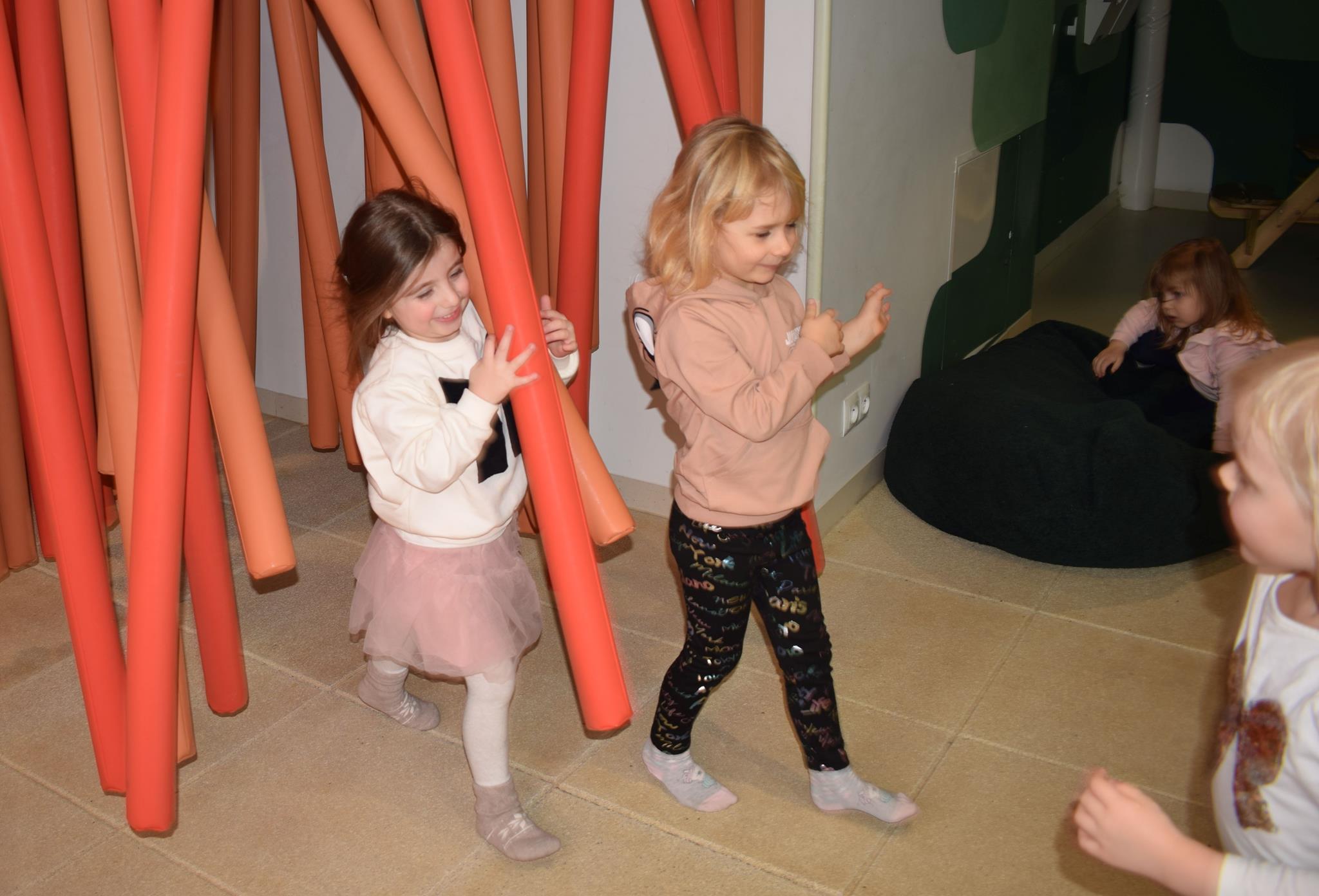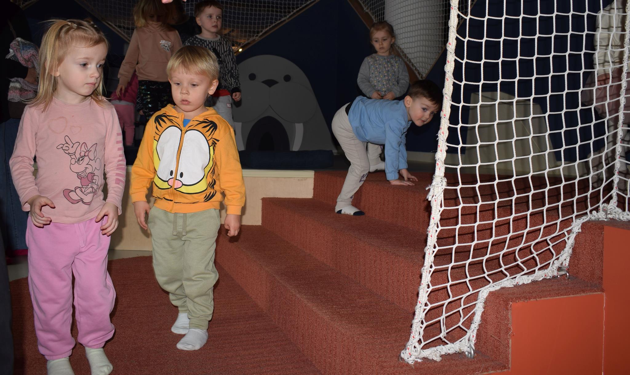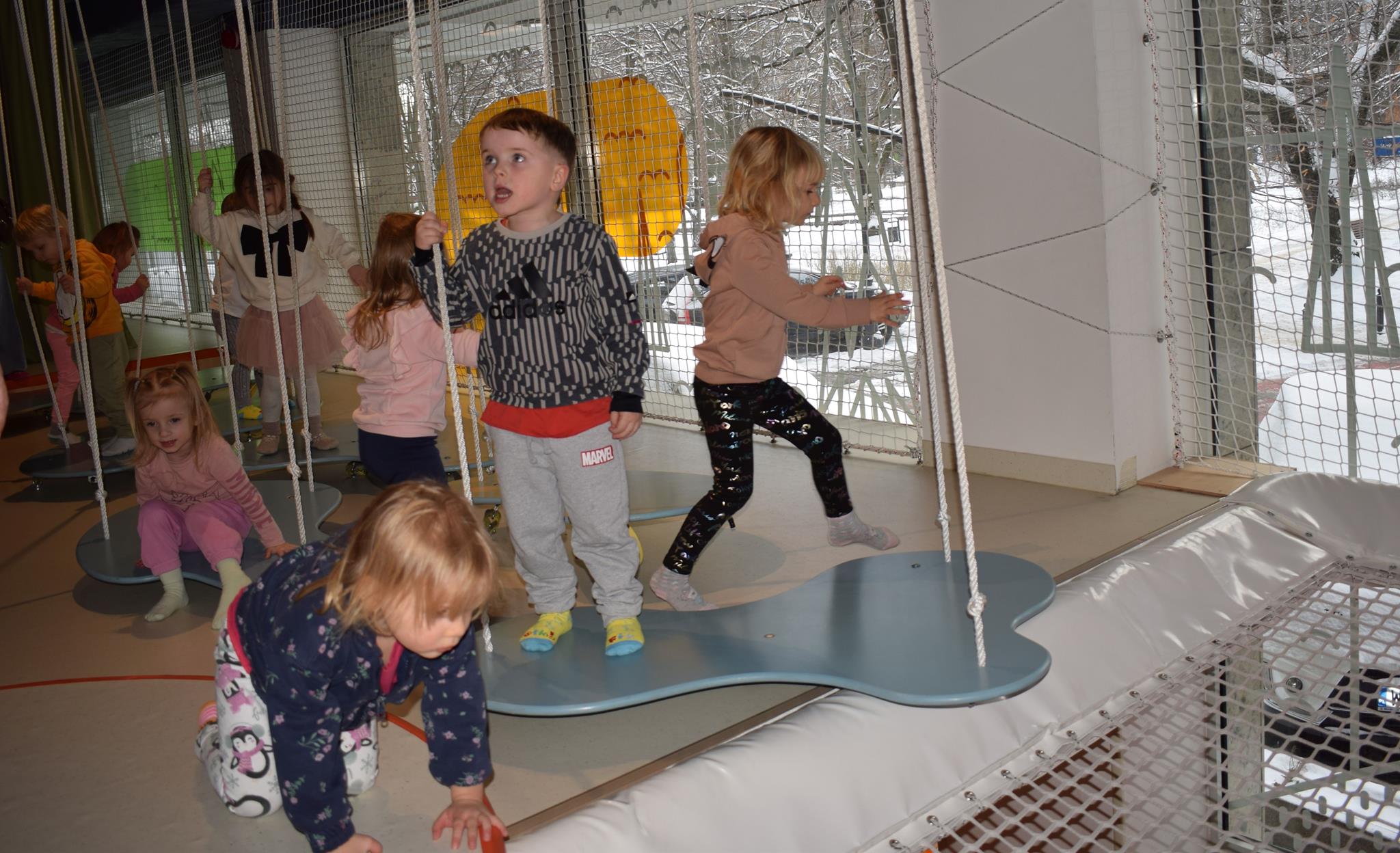 Najmłodsze dzieci z gr. Delfinki wybrały się do Sali Zabaw Sensorysie, gdzie czekało je wiele atrakcji: spotkanie z interaktywnym Rysiem, pełna przygód podóż w kosmos, udział w zajęciach plastyczno-sensorycznych, mnóstwo czasu na zabawę ruchową. Do dyspozycji były zjeżdżalnie, ścianka wspinaczkowa, labirynt sensoryczny, tunel z siatki, trampoliny, strefa lasu, jasknia foczek z kulkami, magnetyczne klocki, tablice manipulacyjne. Sensorysie to piękna sala zabaw, stworzona z myślą o dzieciach i ich rozwoju, dostosowana do potrzeb najmłodszych, zachęciła dzieci do aktywności i eksploracji świata zmysłów.