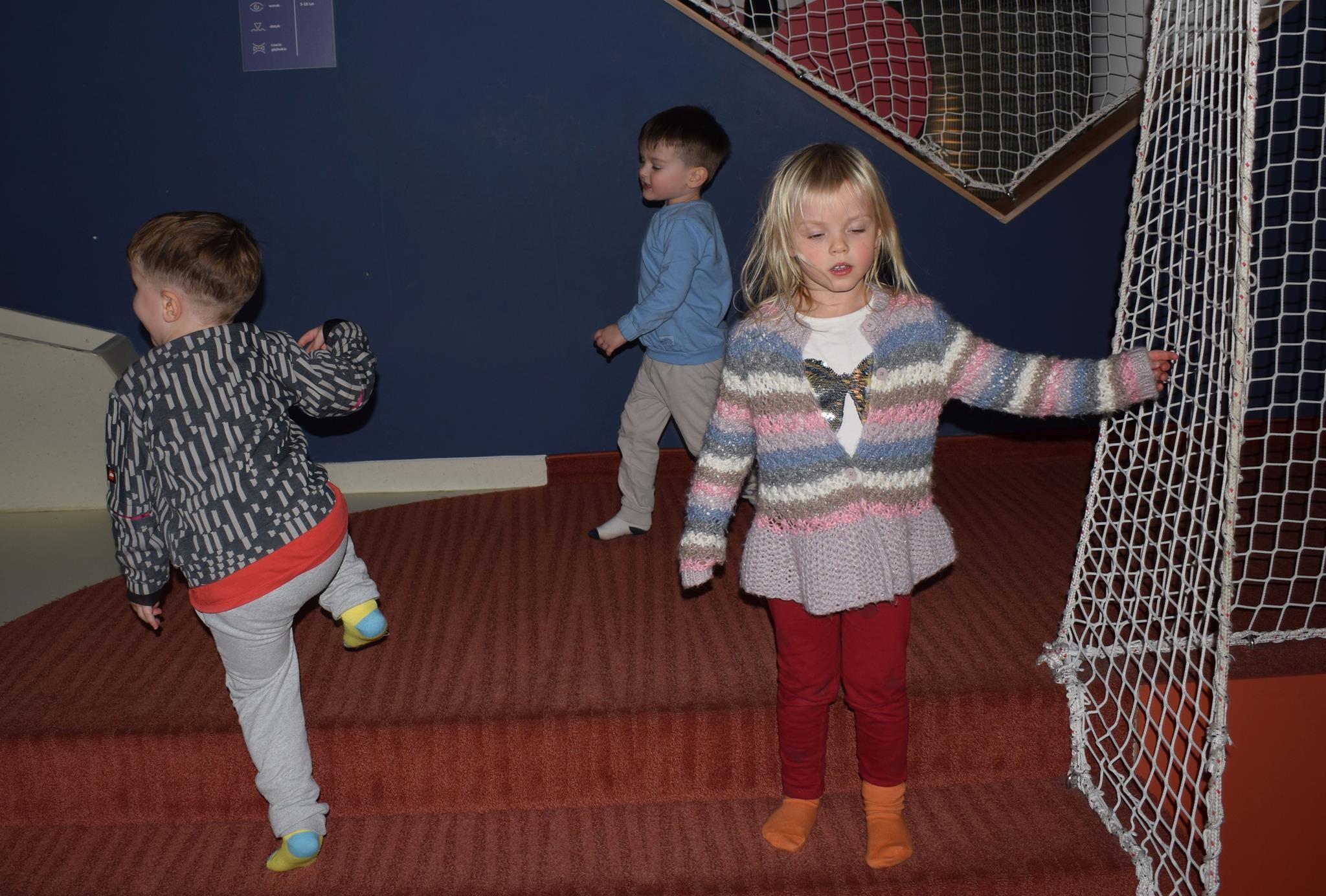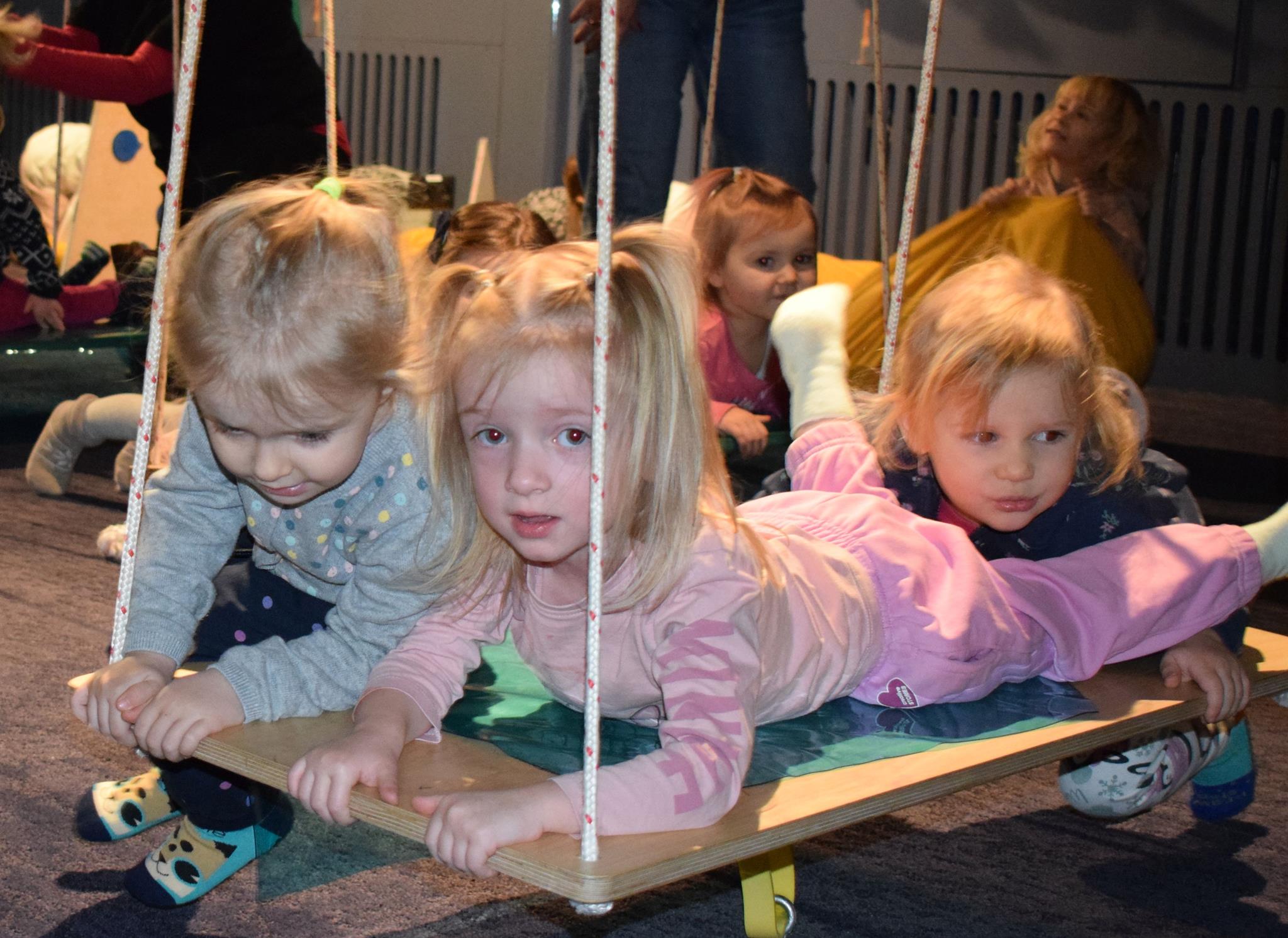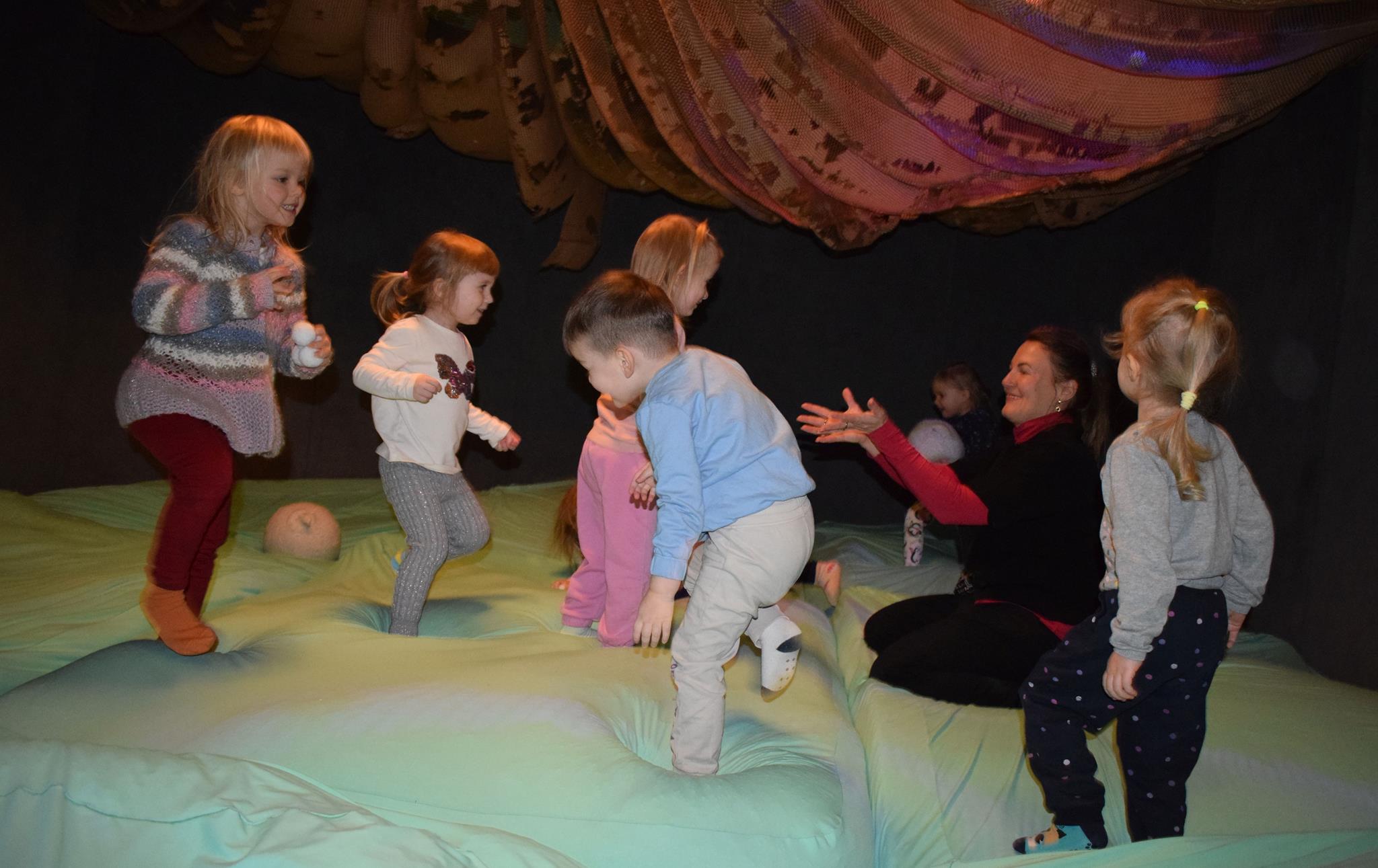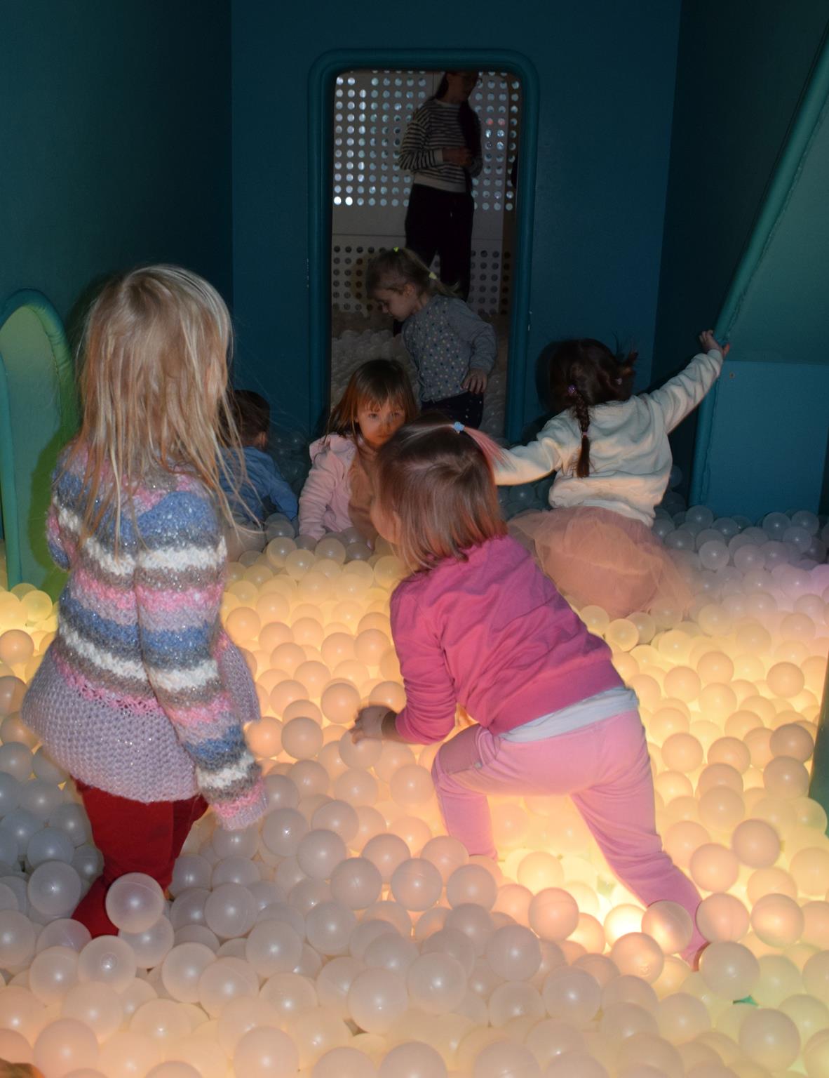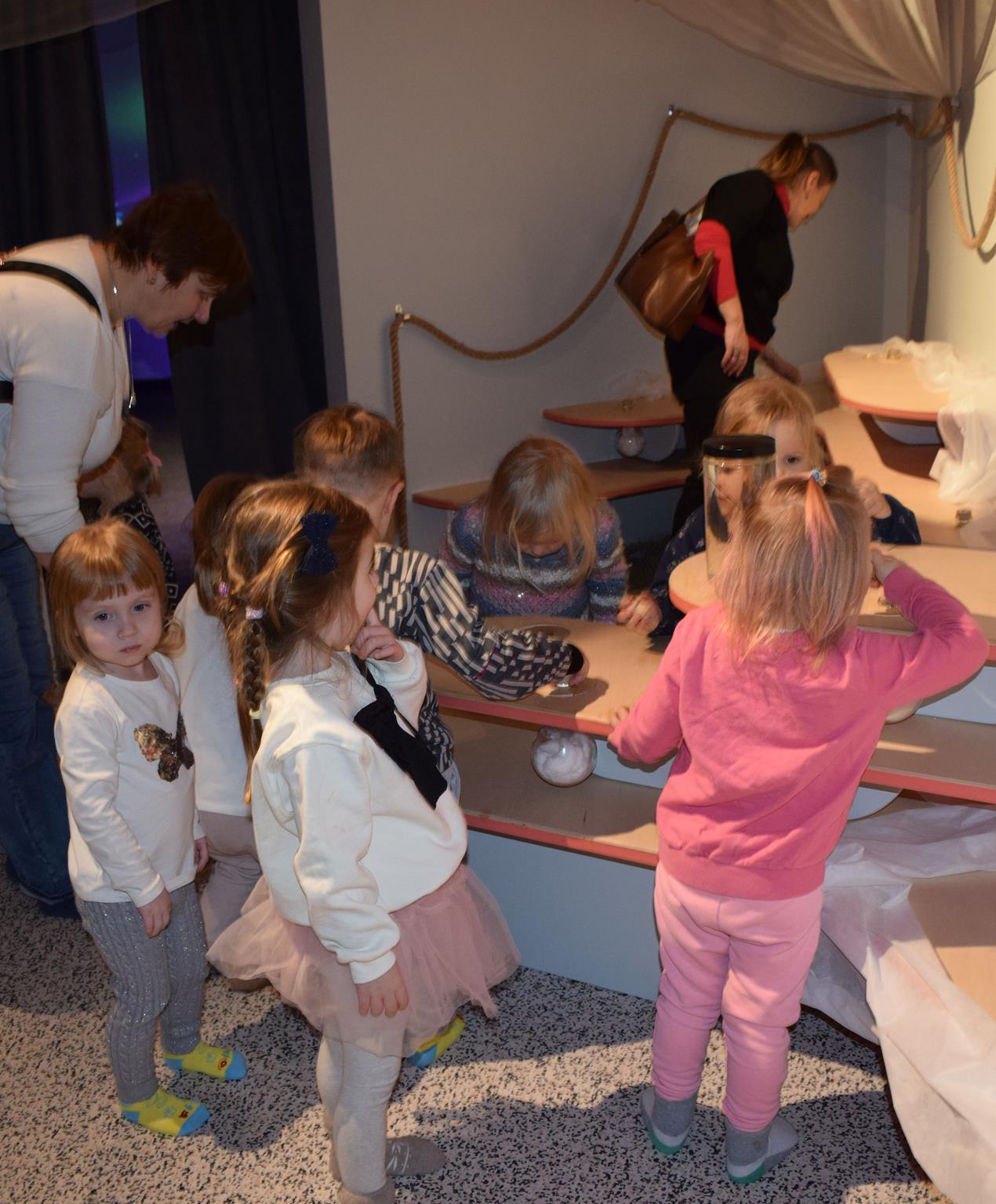 Najmłodsze dzieci z gr. Delfinki wybrały się do Sali Zabaw Sensorysie, gdzie czekało je wiele atrakcji: spotkanie z interaktywnym Rysiem, pełna przygód podóż w kosmos, udział w zajęciach plastyczno-sensorycznych, mnóstwo czasu na zabawę ruchową. Do dyspozycji były zjeżdżalnie, ścianka wspinaczkowa, labirynt sensoryczny, tunel z siatki, trampoliny, strefa lasu, jasknia foczek z kulkami, magnetyczne klocki, tablice manipulacyjne. Sensorysie to piękna sala zabaw, stworzona z myślą o dzieciach i ich rozwoju, dostosowana do potrzeb najmłodszych, zachęciła dzieci do aktywności i eksploracji świata zmysłów.