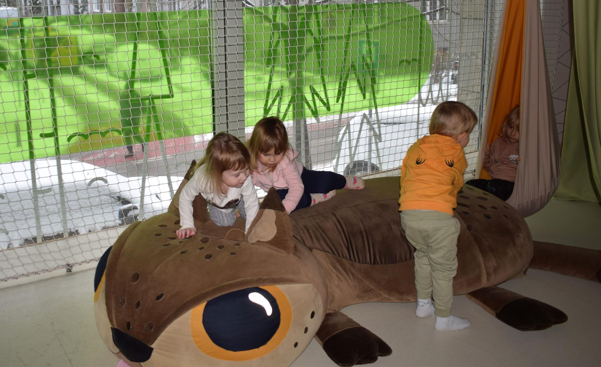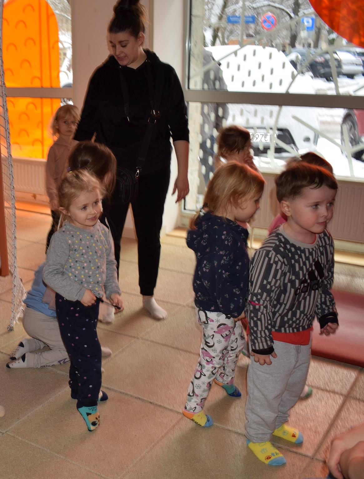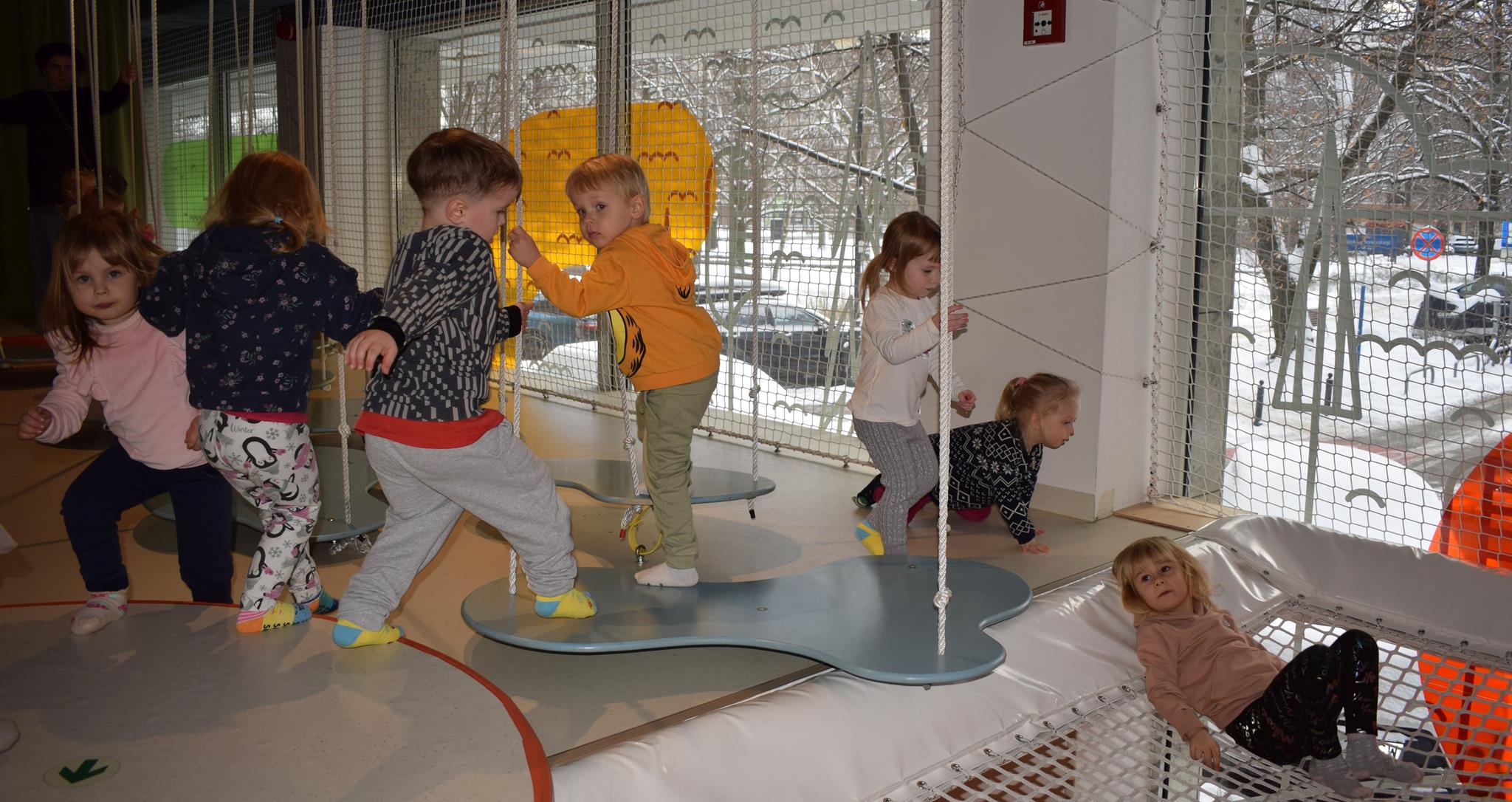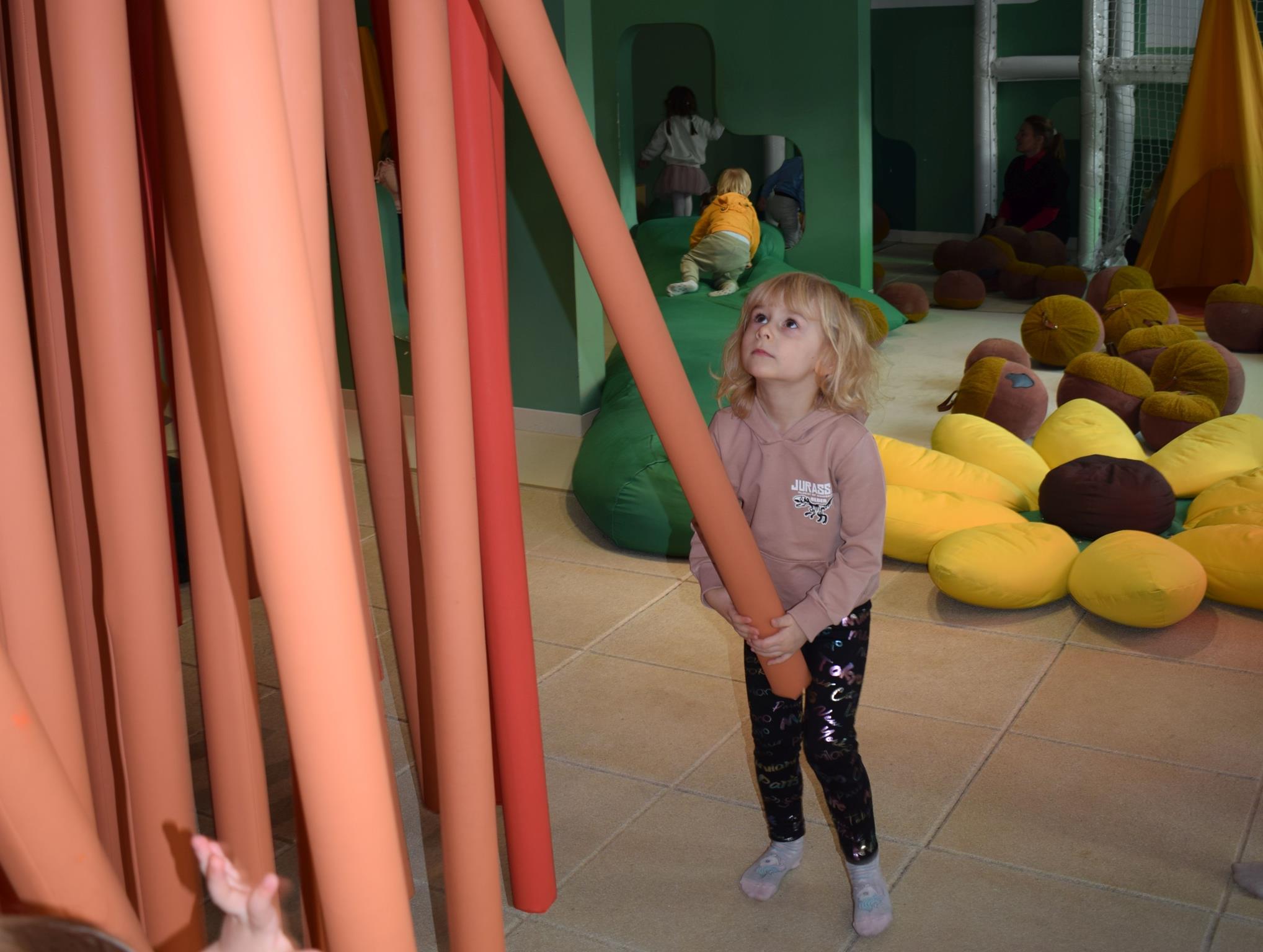 Najmłodsze dzieci z gr. Delfinki wybrały się do Sali Zabaw Sensorysie, gdzie czekało je wiele atrakcji: spotkanie z interaktywnym Rysiem, pełna przygód podóż w kosmos, udział w zajęciach plastyczno-sensorycznych, mnóstwo czasu na zabawę ruchową. Do dyspozycji były zjeżdżalnie, ścianka wspinaczkowa, labirynt sensoryczny, tunel z siatki, trampoliny, strefa lasu, jasknia foczek z kulkami, magnetyczne klocki, tablice manipulacyjne. Sensorysie to piękna sala zabaw, stworzona z myślą o dzieciach i ich rozwoju, dostosowana do potrzeb najmłodszych, zachęciła dzieci do aktywności i eksploracji świata zmysłów.