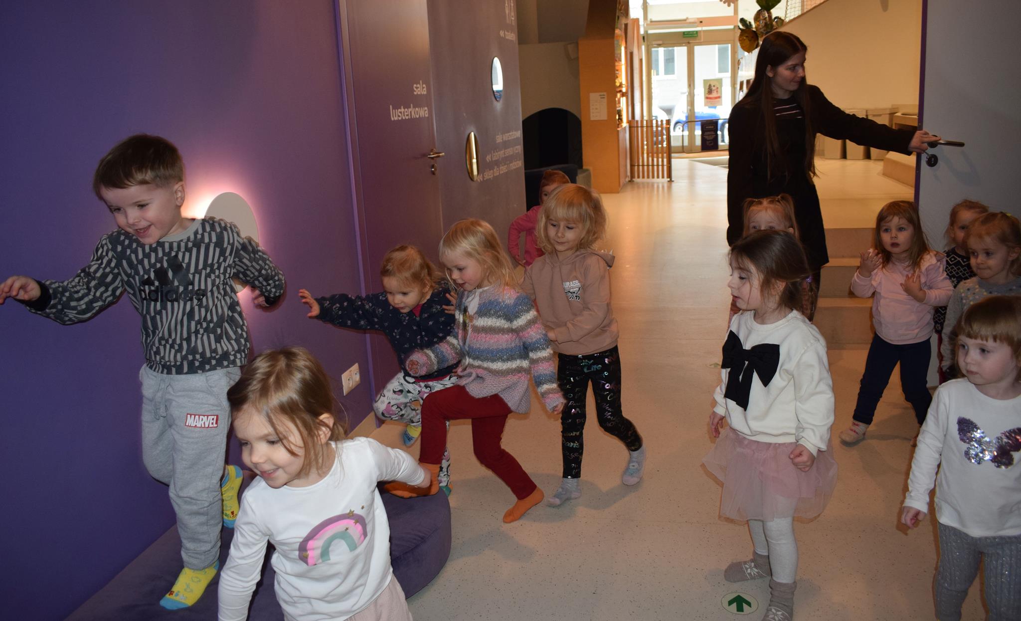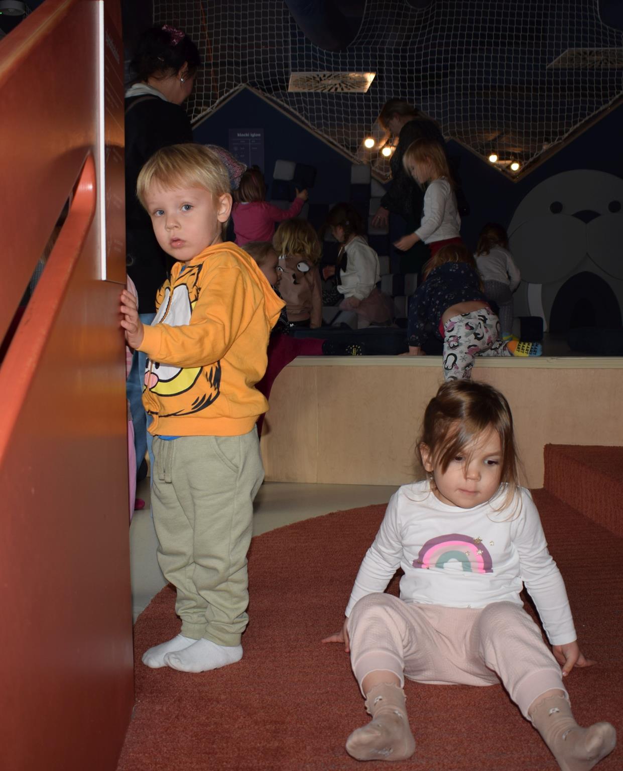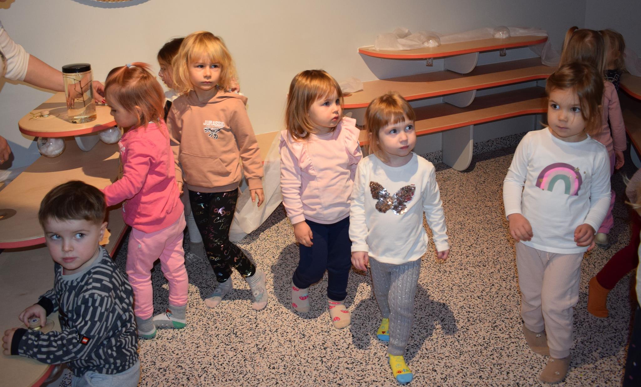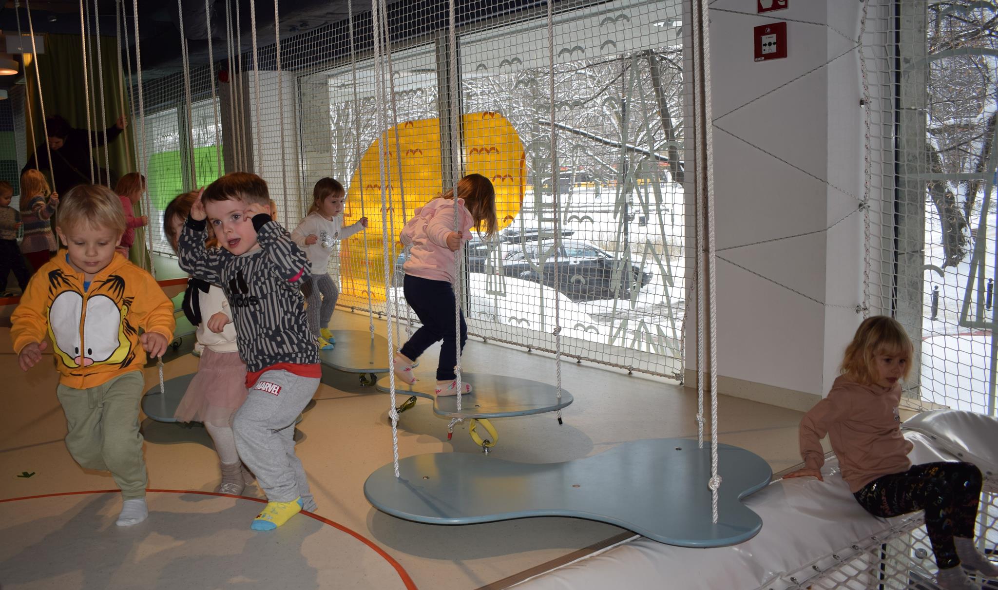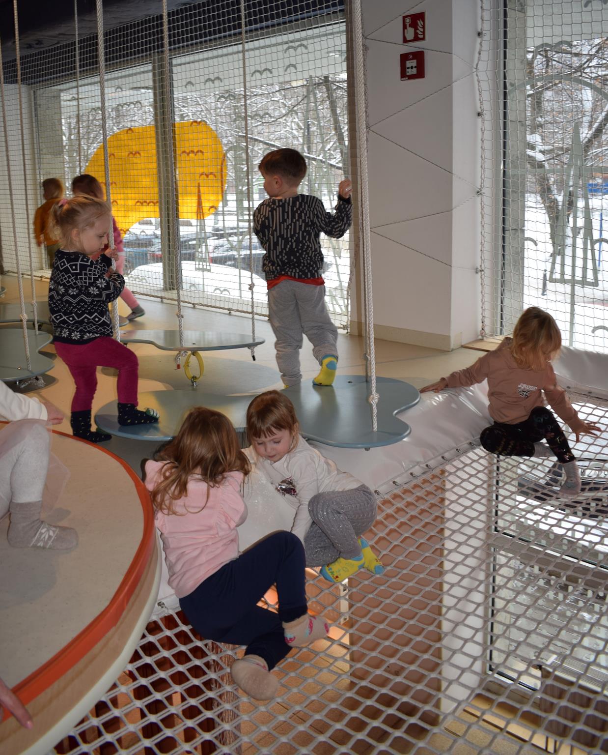 Najmłodsze dzieci z gr. Delfinki wybrały się do Sali Zabaw Sensorysie, gdzie czekało je wiele atrakcji: spotkanie z interaktywnym Rysiem, pełna przygód podóż w kosmos, udział w zajęciach plastyczno-sensorycznych, mnóstwo czasu na zabawę ruchową. Do dyspozycji były zjeżdżalnie, ścianka wspinaczkowa, labirynt sensoryczny, tunel z siatki, trampoliny, strefa lasu, jasknia foczek z kulkami, magnetyczne klocki, tablice manipulacyjne. Sensorysie to piękna sala zabaw, stworzona z myślą o dzieciach i ich rozwoju, dostosowana do potrzeb najmłodszych, zachęciła dzieci do aktywności i eksploracji świata zmysłów.