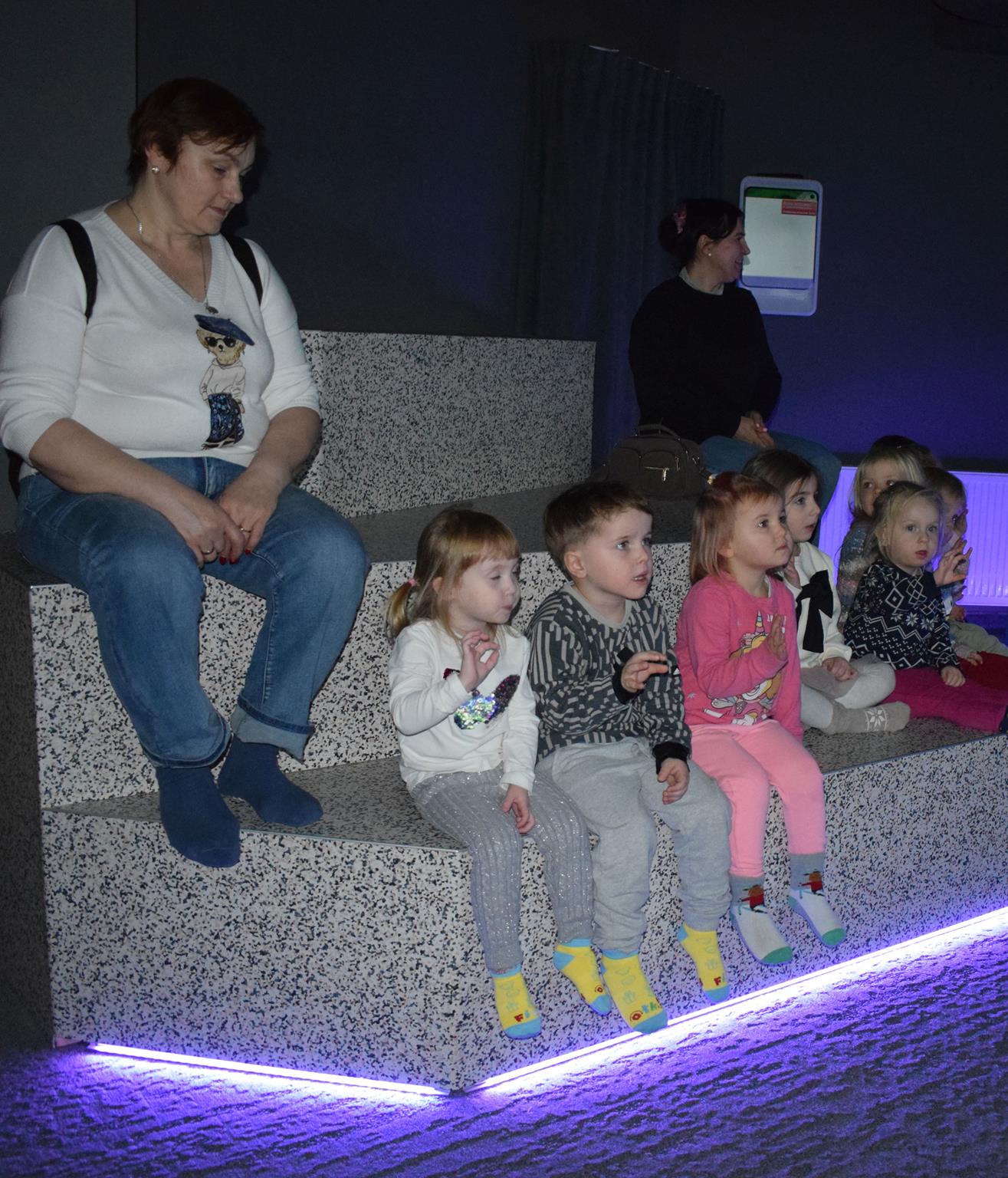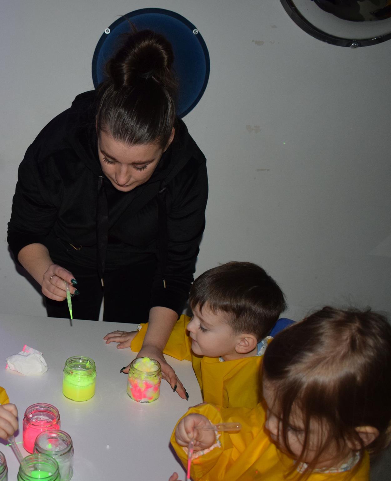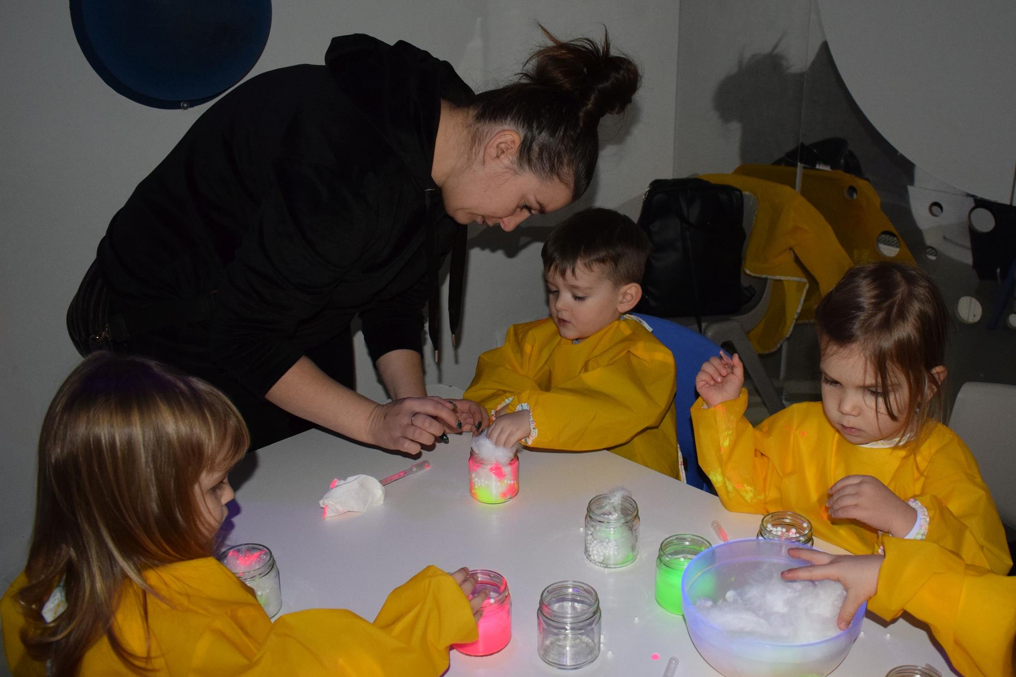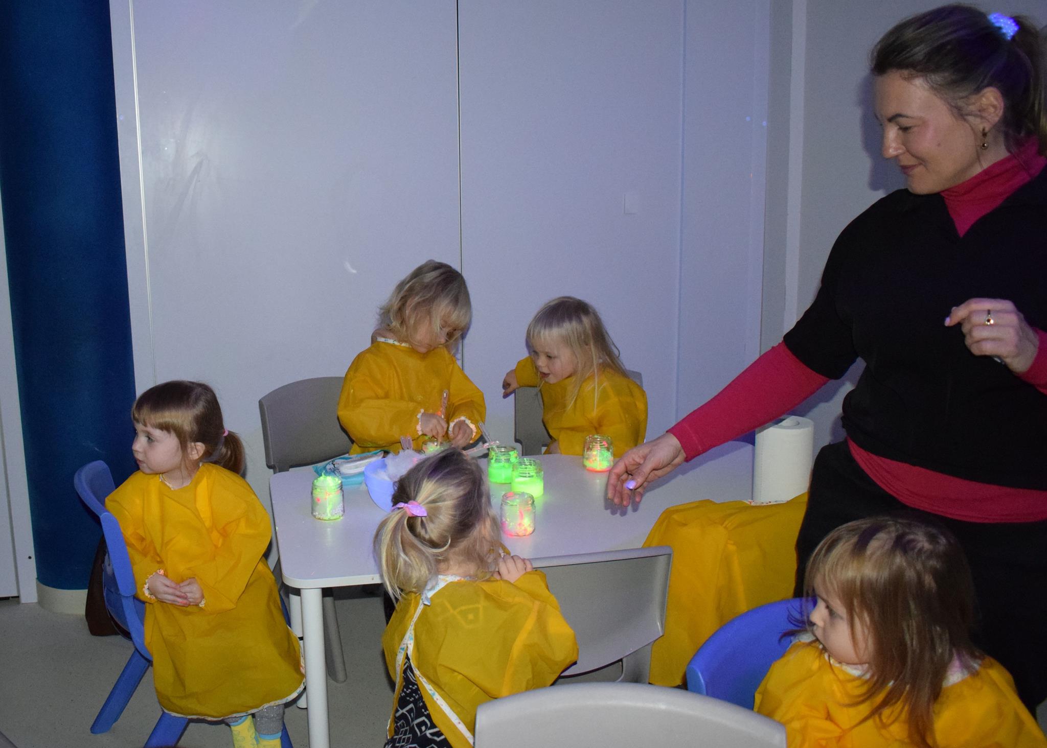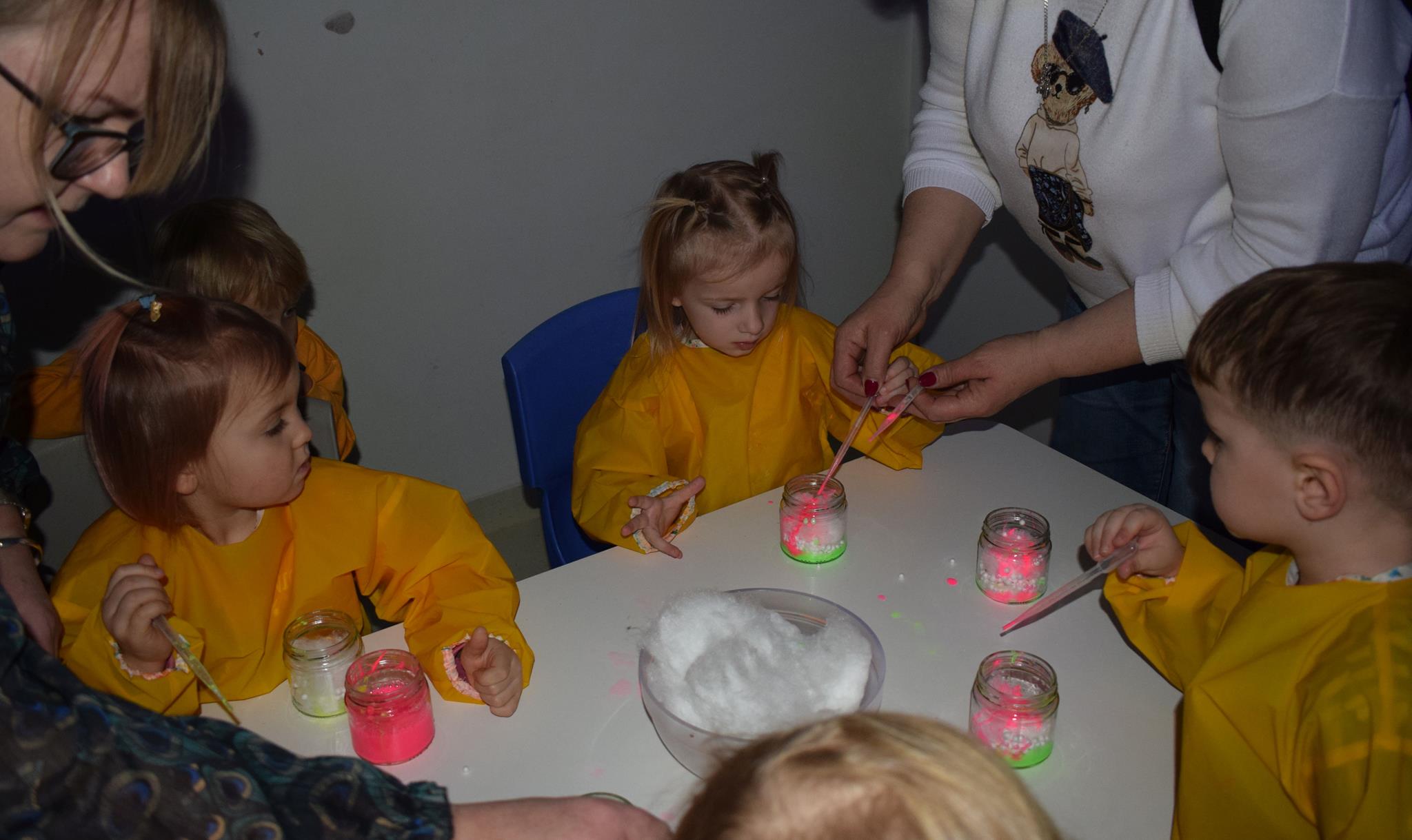 Najmłodsze dzieci z gr. Delfinki wybrały się do Sali Zabaw Sensorysie, gdzie czekało je wiele atrakcji: spotkanie z interaktywnym Rysiem, pełna przygód podóż w kosmos, udział w zajęciach plastyczno-sensorycznych, mnóstwo czasu na zabawę ruchową. Do dyspozycji były zjeżdżalnie, ścianka wspinaczkowa, labirynt sensoryczny, tunel z siatki, trampoliny, strefa lasu, jasknia foczek z kulkami, magnetyczne klocki, tablice manipulacyjne. Sensorysie to piękna sala zabaw, stworzona z myślą o dzieciach i ich rozwoju, dostosowana do potrzeb najmłodszych, zachęciła dzieci do aktywności i eksploracji świata zmysłów.