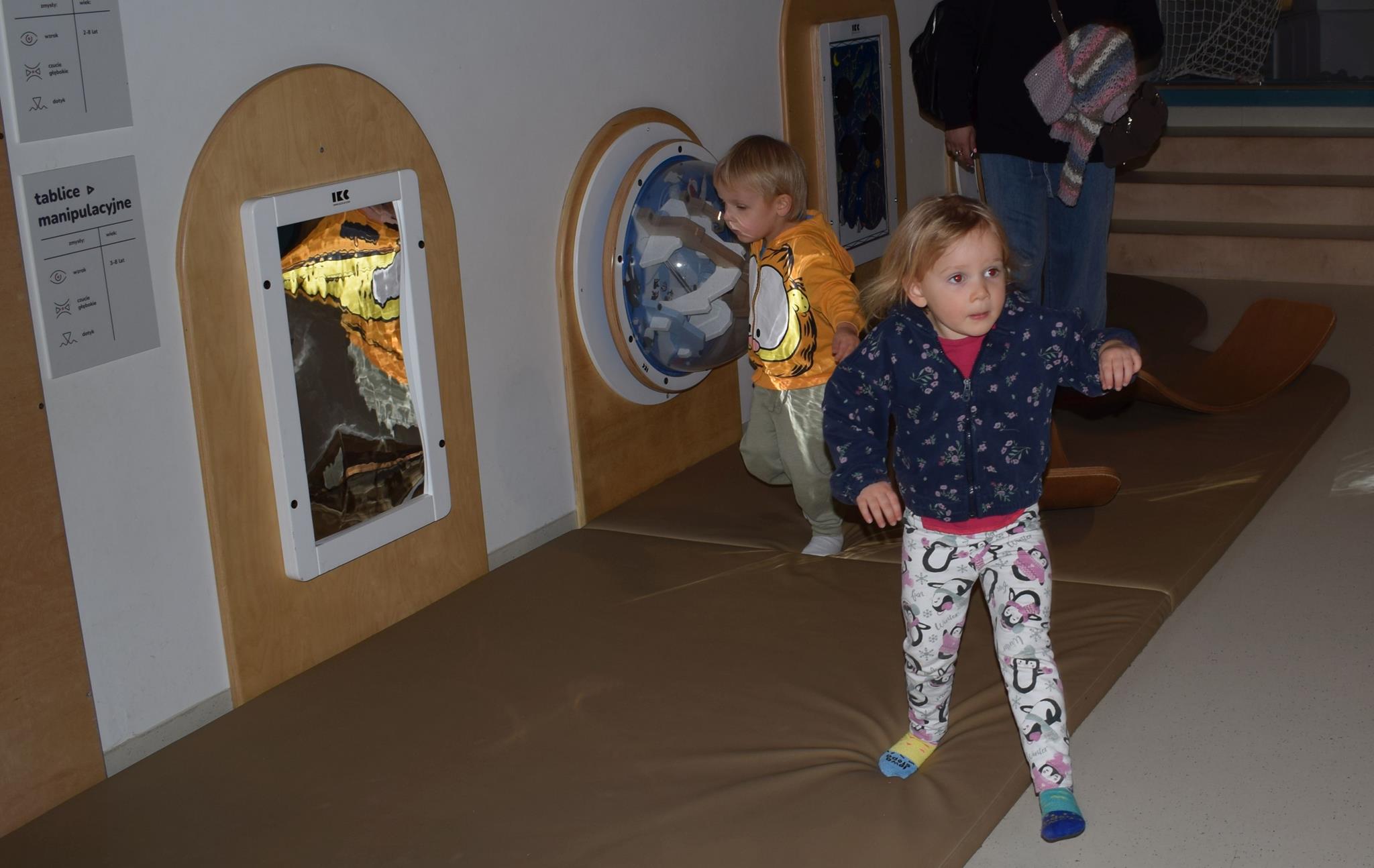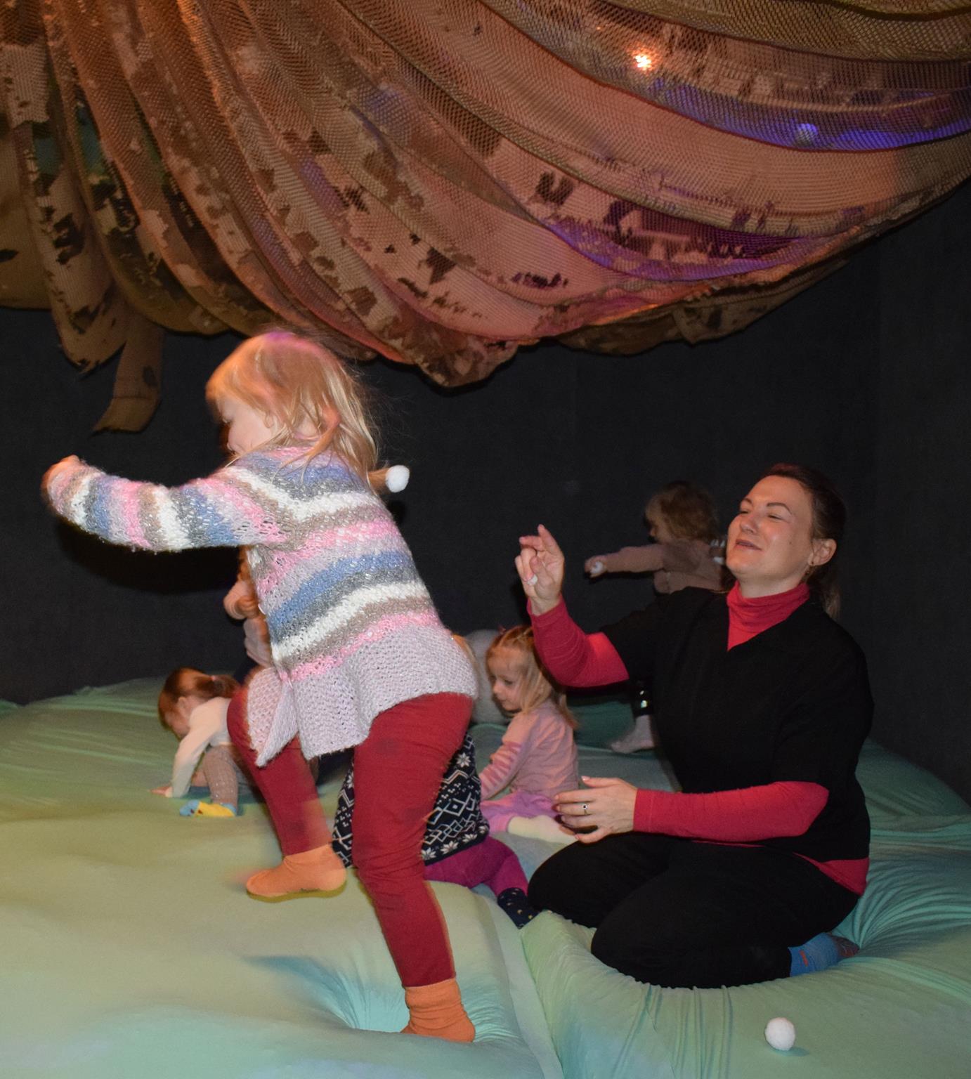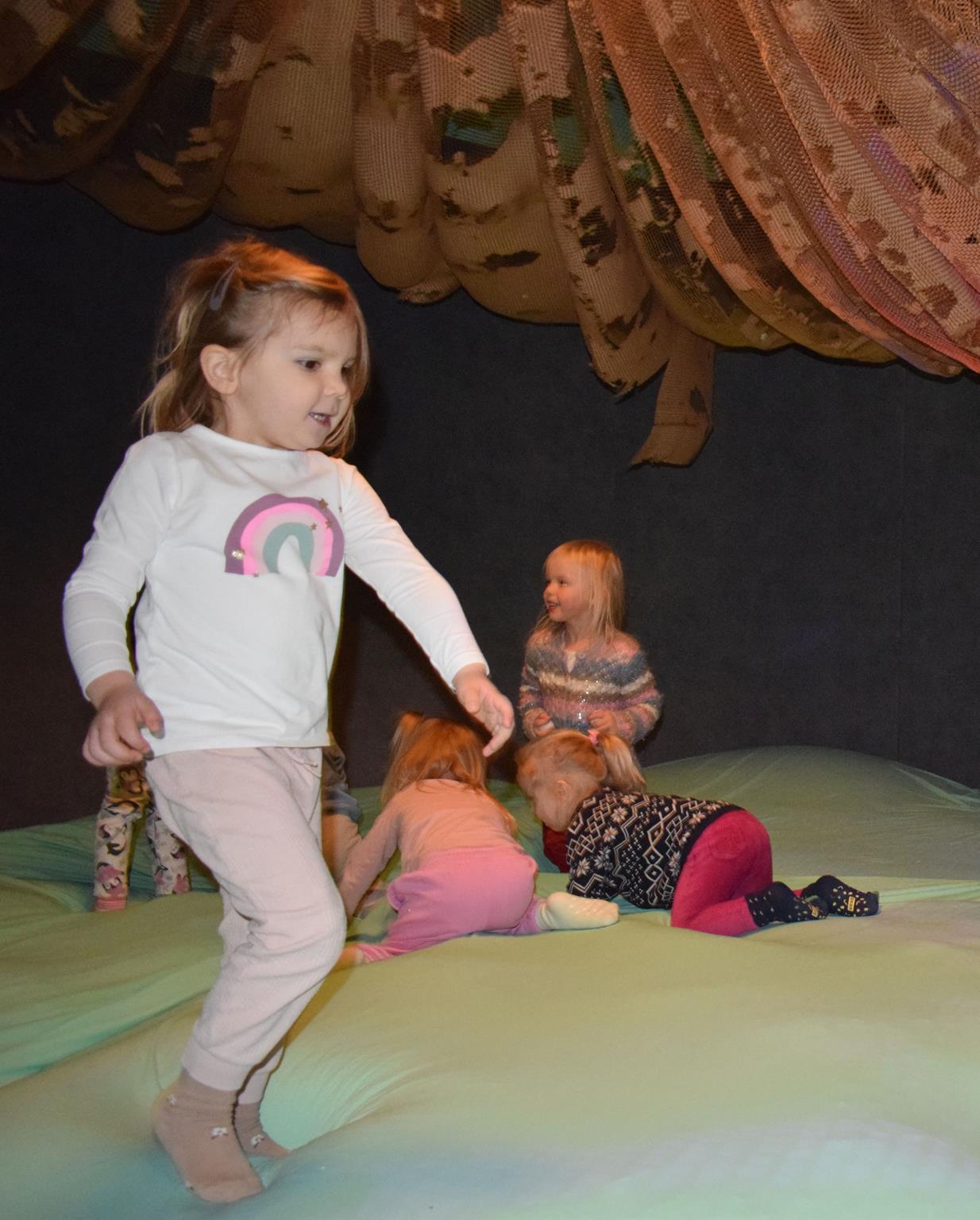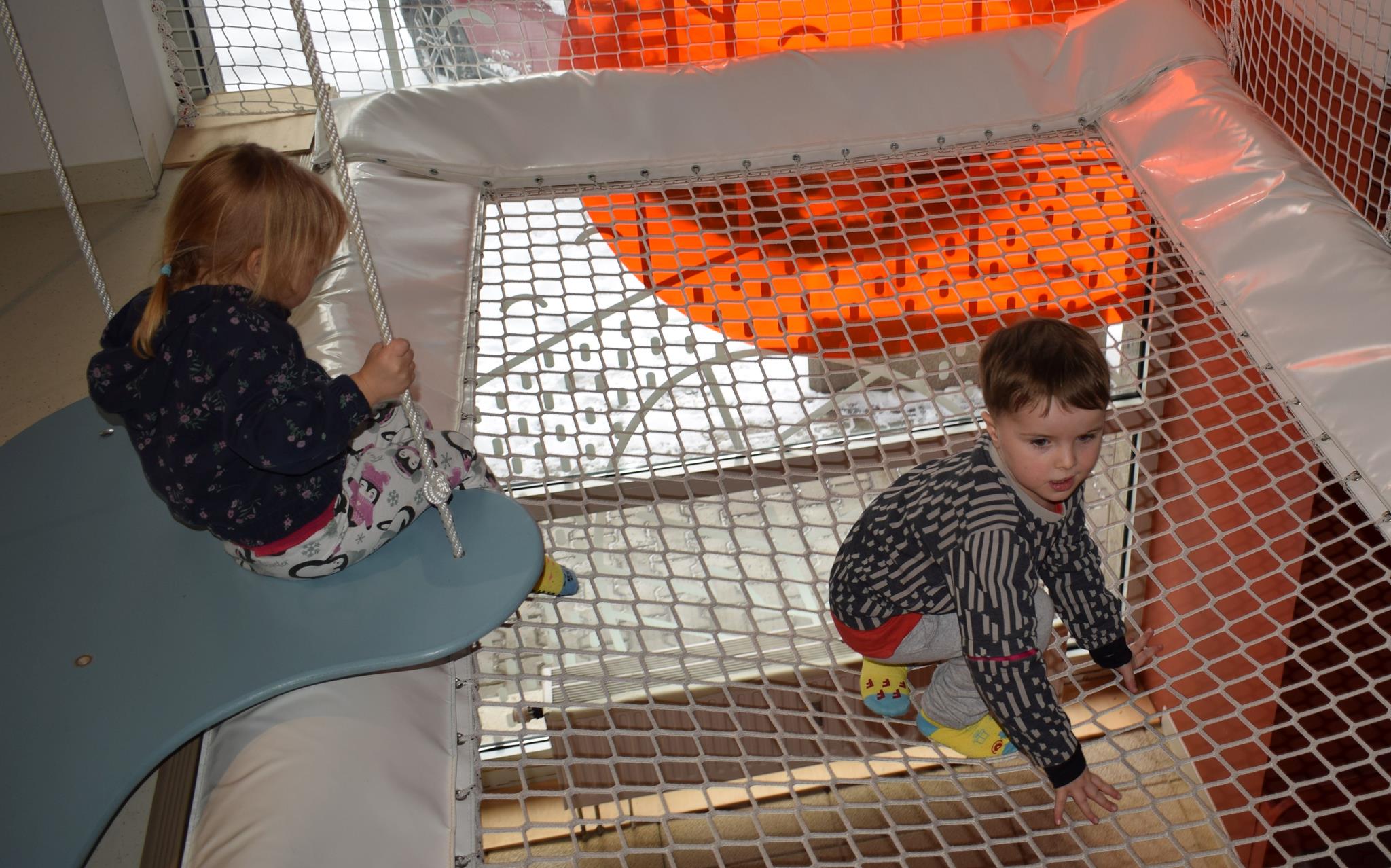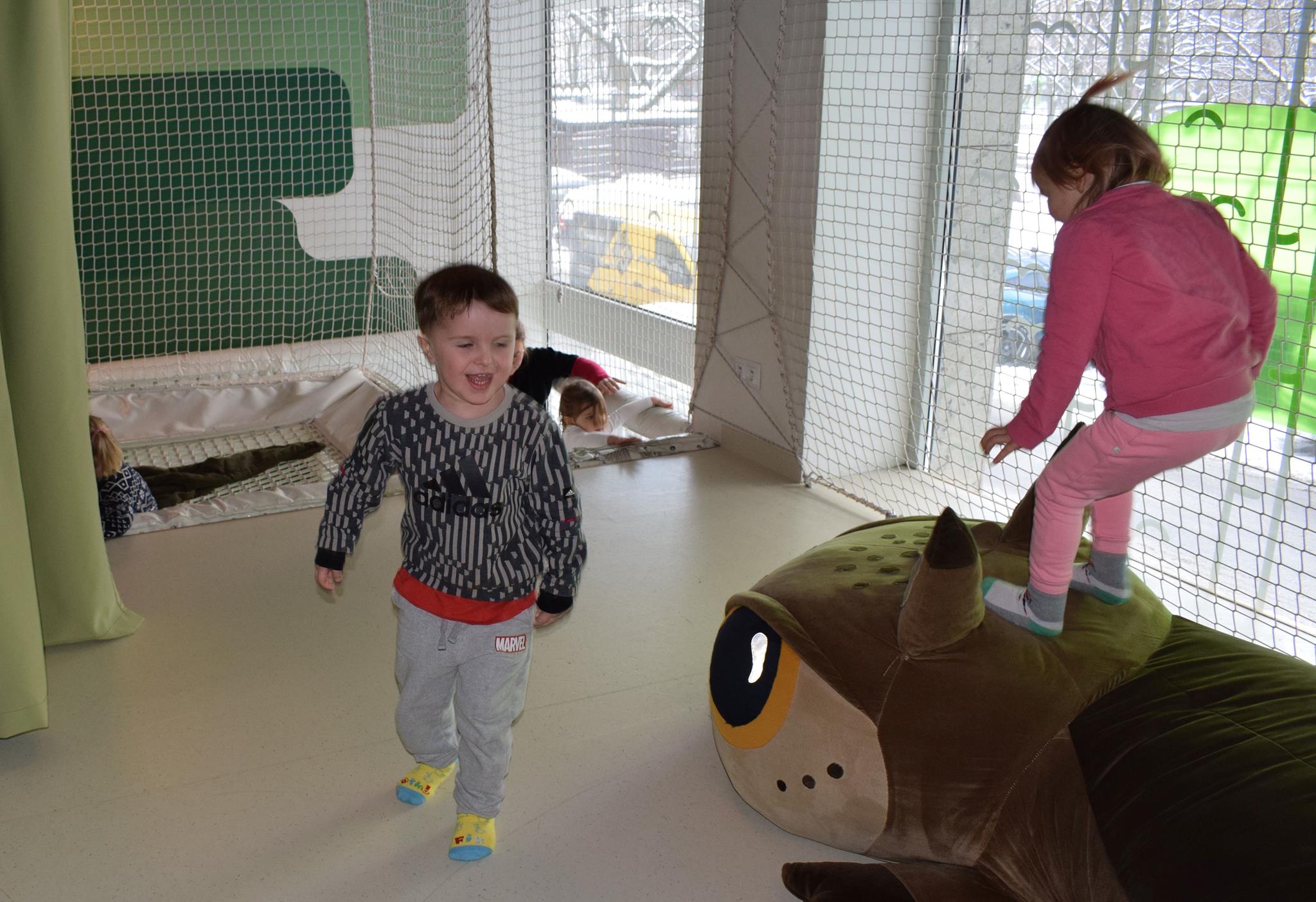 Najmłodsze dzieci z gr. Delfinki wybrały się do Sali Zabaw Sensorysie, gdzie czekało je wiele atrakcji: spotkanie z interaktywnym Rysiem, pełna przygód podóż w kosmos, udział w zajęciach plastyczno-sensorycznych, mnóstwo czasu na zabawę ruchową. Do dyspozycji były zjeżdżalnie, ścianka wspinaczkowa, labirynt sensoryczny, tunel z siatki, trampoliny, strefa lasu, jasknia foczek z kulkami, magnetyczne klocki, tablice manipulacyjne. Sensorysie to piękna sala zabaw, stworzona z myślą o dzieciach i ich rozwoju, dostosowana do potrzeb najmłodszych, zachęciła dzieci do aktywności i eksploracji świata zmysłów.