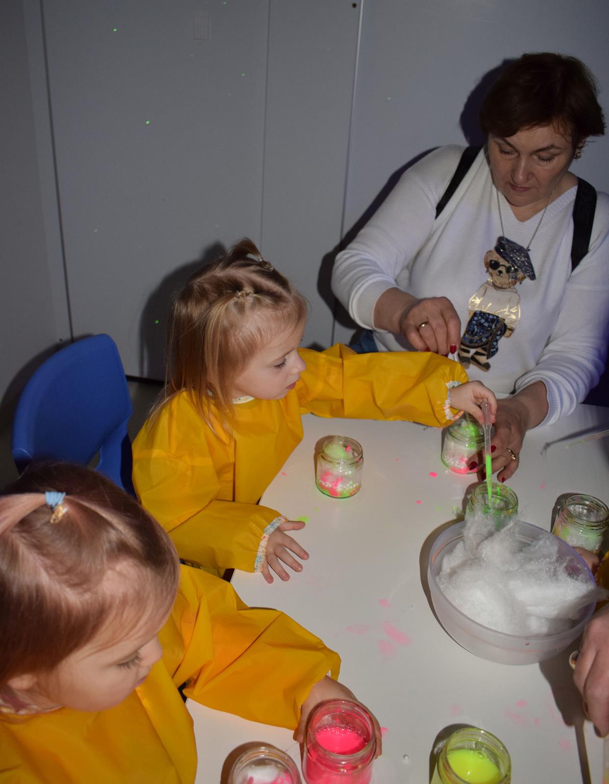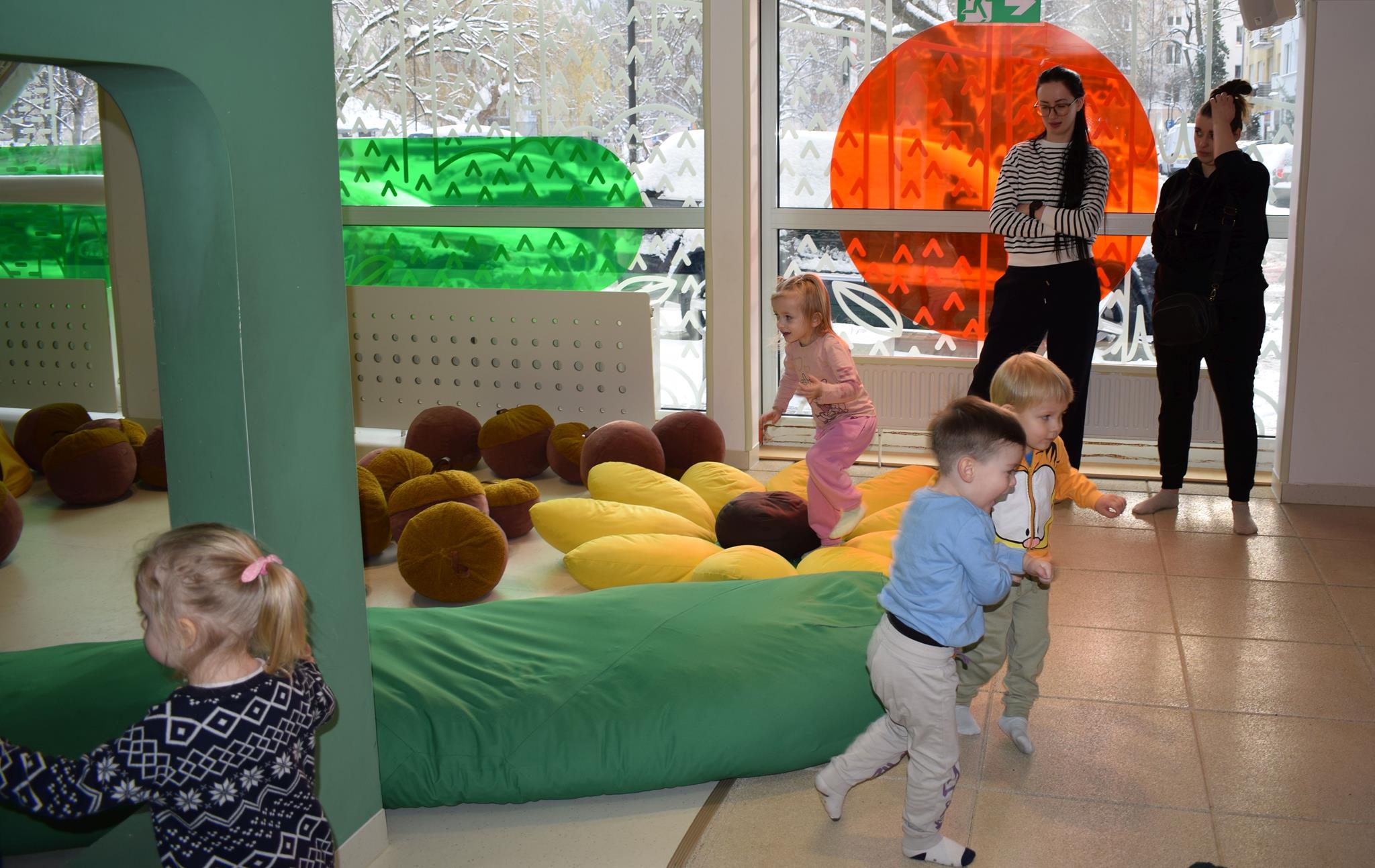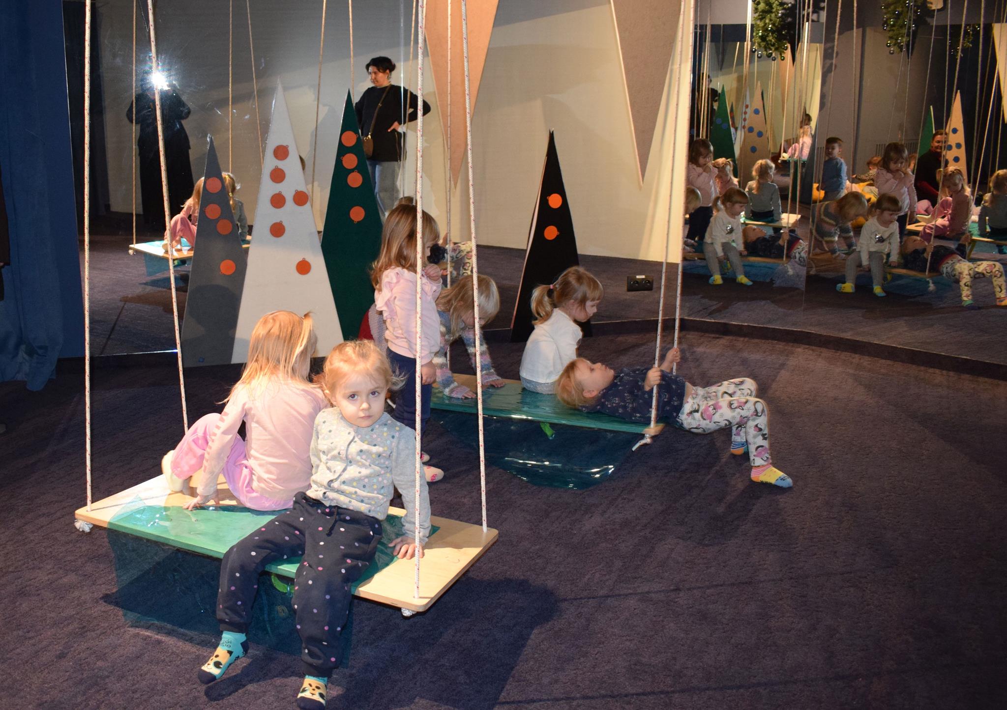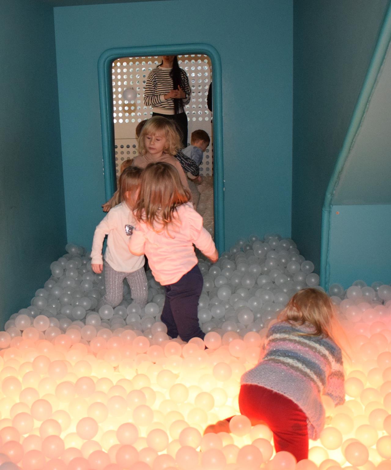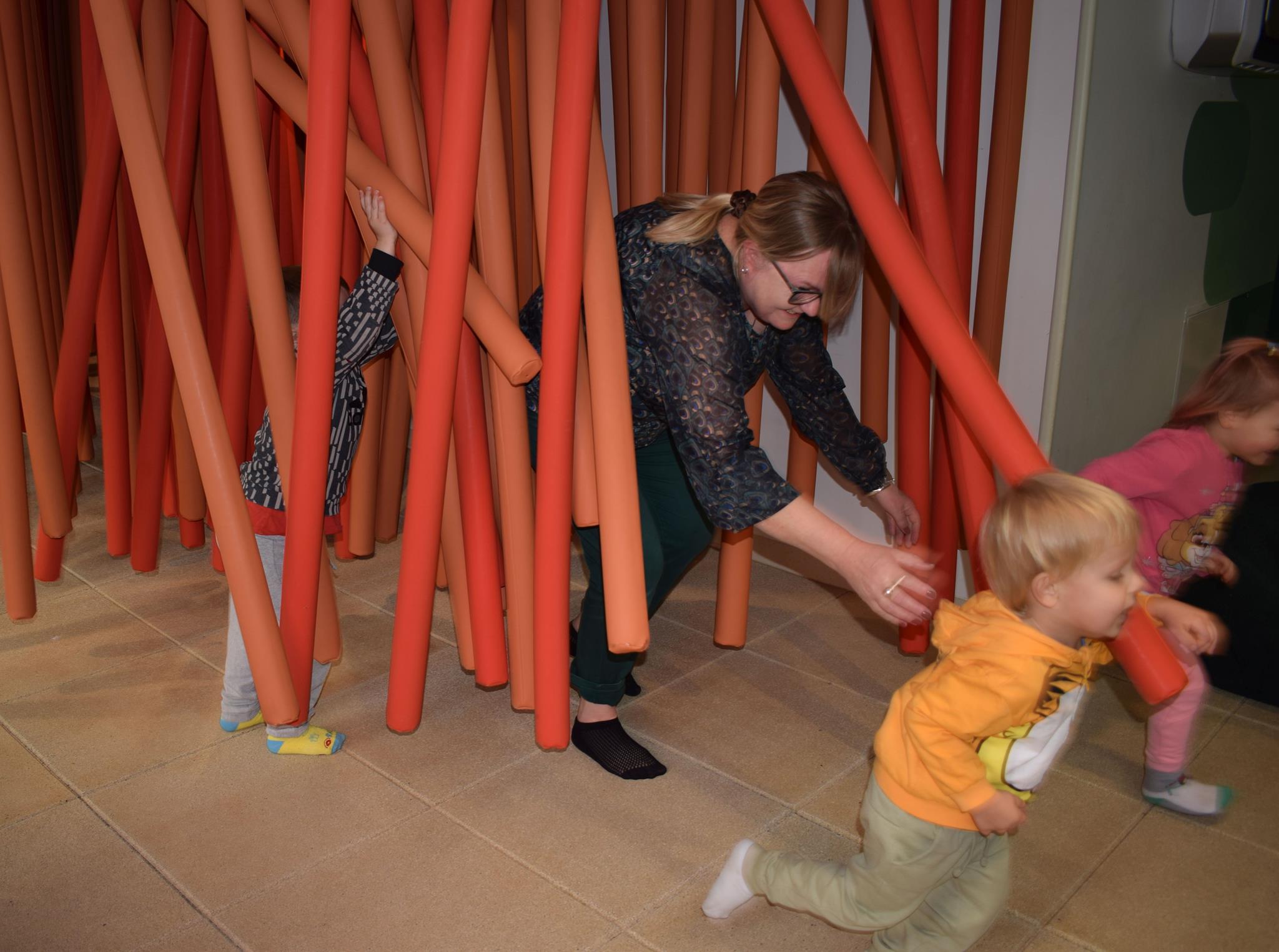 Najmłodsze dzieci z gr. Delfinki wybrały się do Sali Zabaw Sensorysie, gdzie czekało je wiele atrakcji: spotkanie z interaktywnym Rysiem, pełna przygód podóż w kosmos, udział w zajęciach plastyczno-sensorycznych, mnóstwo czasu na zabawę ruchową. Do dyspozycji były zjeżdżalnie, ścianka wspinaczkowa, labirynt sensoryczny, tunel z siatki, trampoliny, strefa lasu, jasknia foczek z kulkami, magnetyczne klocki, tablice manipulacyjne. Sensorysie to piękna sala zabaw, stworzona z myślą o dzieciach i ich rozwoju, dostosowana do potrzeb najmłodszych, zachęciła dzieci do aktywności i eksploracji świata zmysłów.