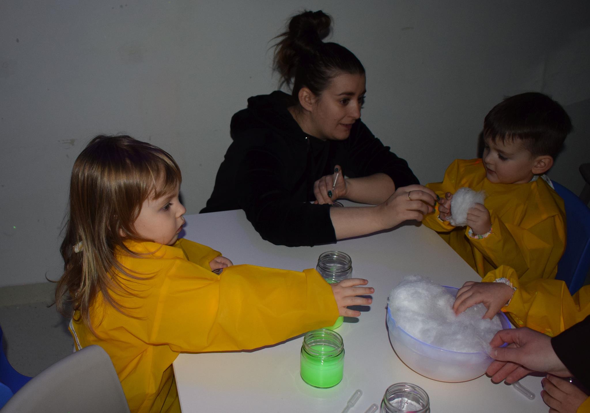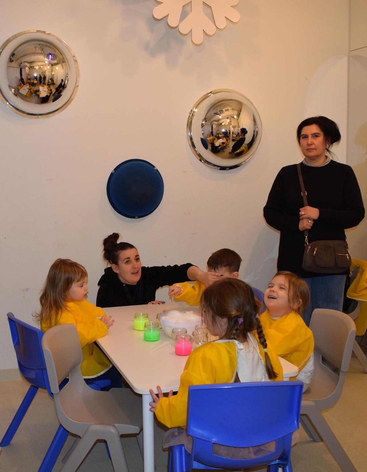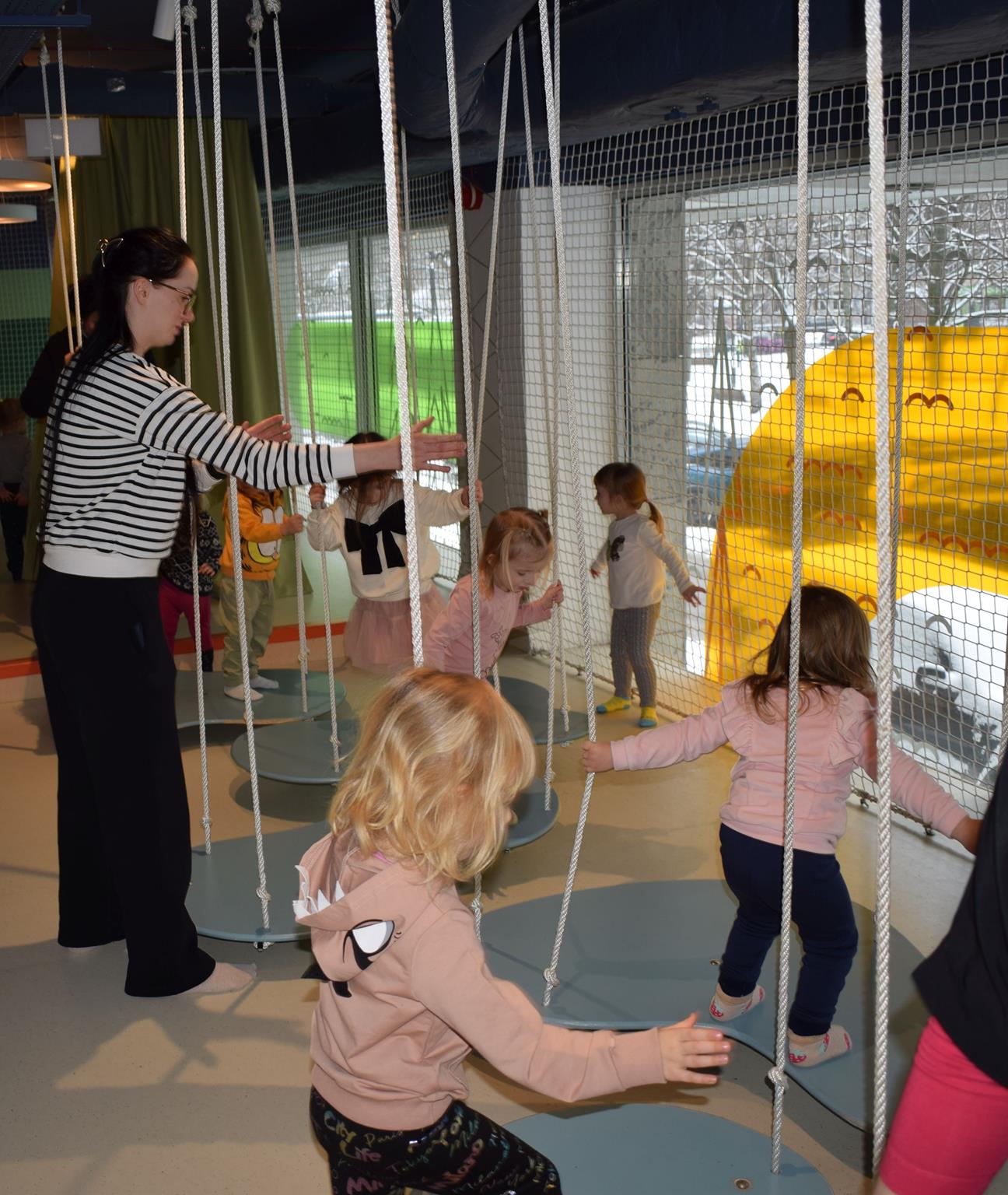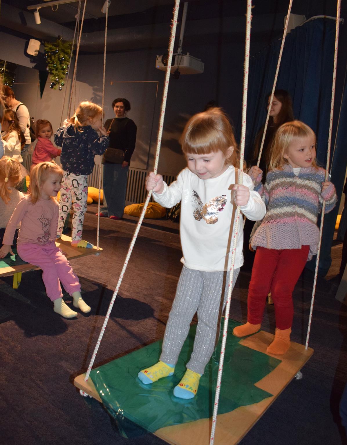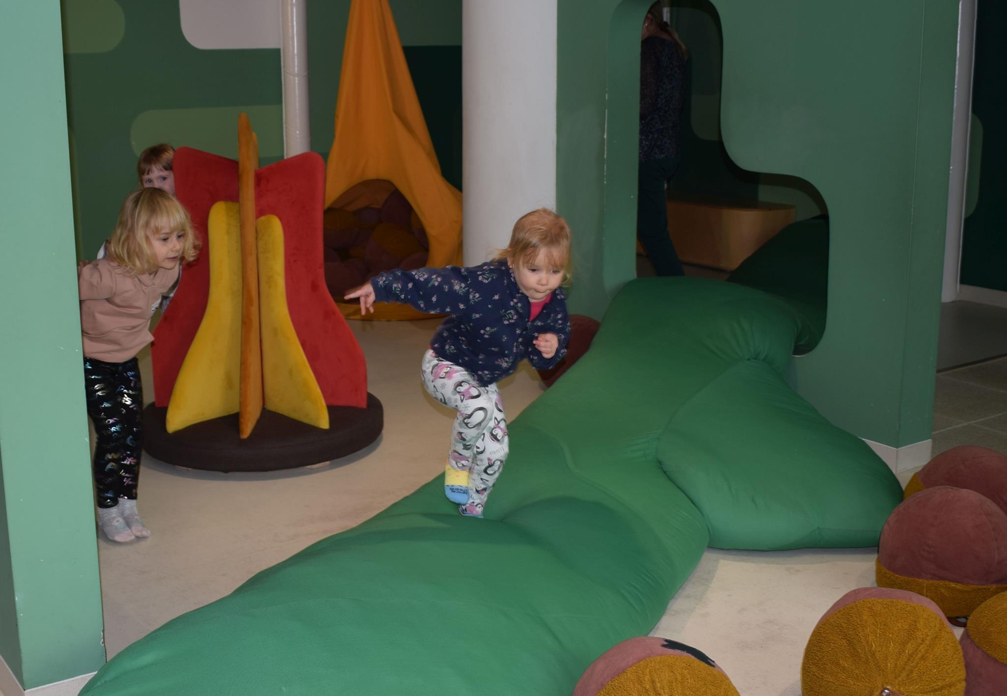Najmłodsze dzieci z gr. Delfinki wybrały się do Sali Zabaw Sensorysie, gdzie czekało je wiele atrakcji: spotkanie z interaktywnym Rysiem, pełna przygód podóż w kosmos, udział w zajęciach plastyczno-sensorycznych, mnóstwo czasu na zabawę ruchową. Do dyspozycji były zjeżdżalnie, ścianka wspinaczkowa, labirynt sensoryczny, tunel z siatki, trampoliny, strefa lasu, jasknia foczek z kulkami, magnetyczne klocki, tablice manipulacyjne. Sensorysie to piękna sala zabaw, stworzona z myślą o dzieciach i ich rozwoju, dostosowana do potrzeb najmłodszych, zachęciła dzieci do aktywności i eksploracji świata zmysłów.