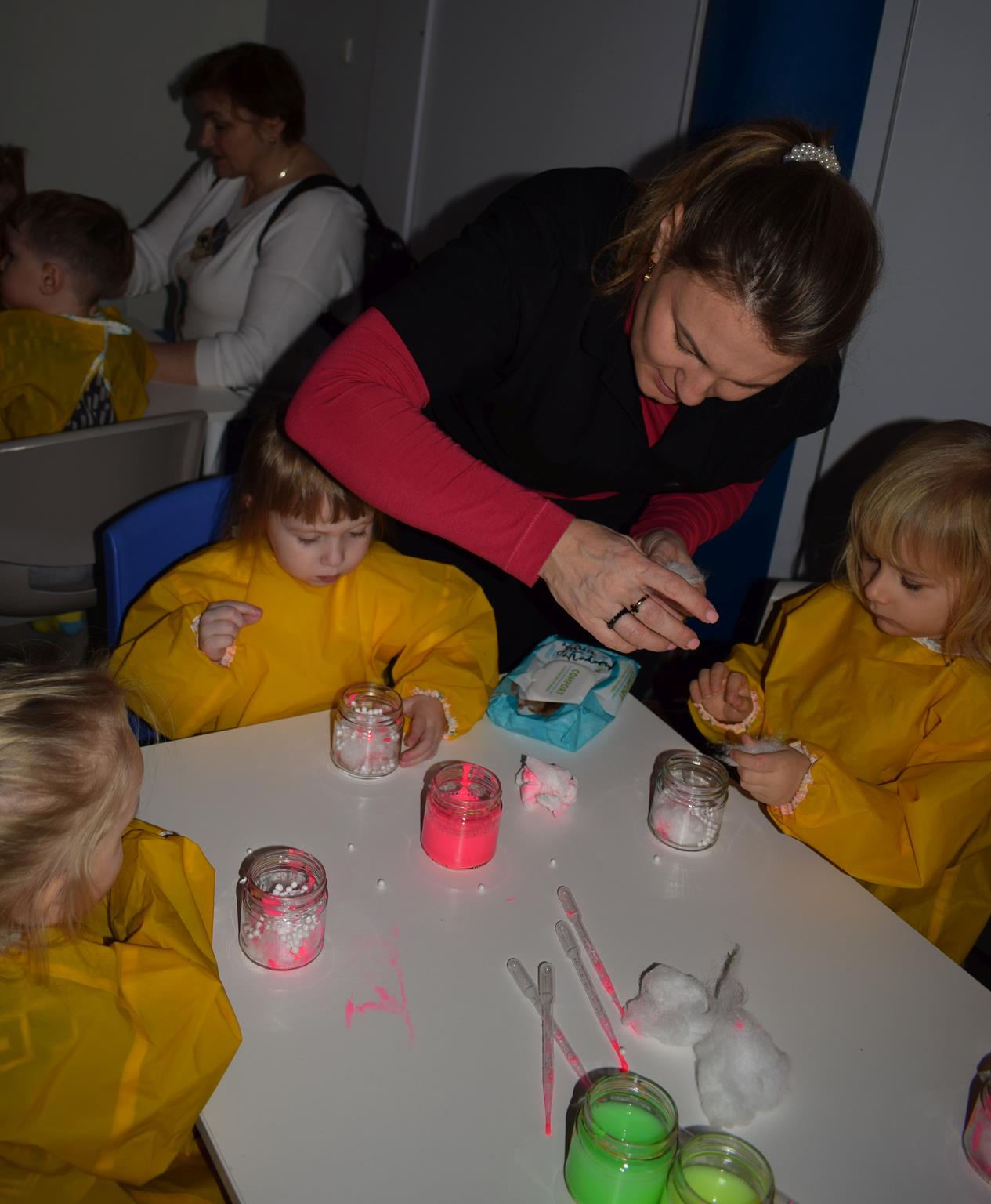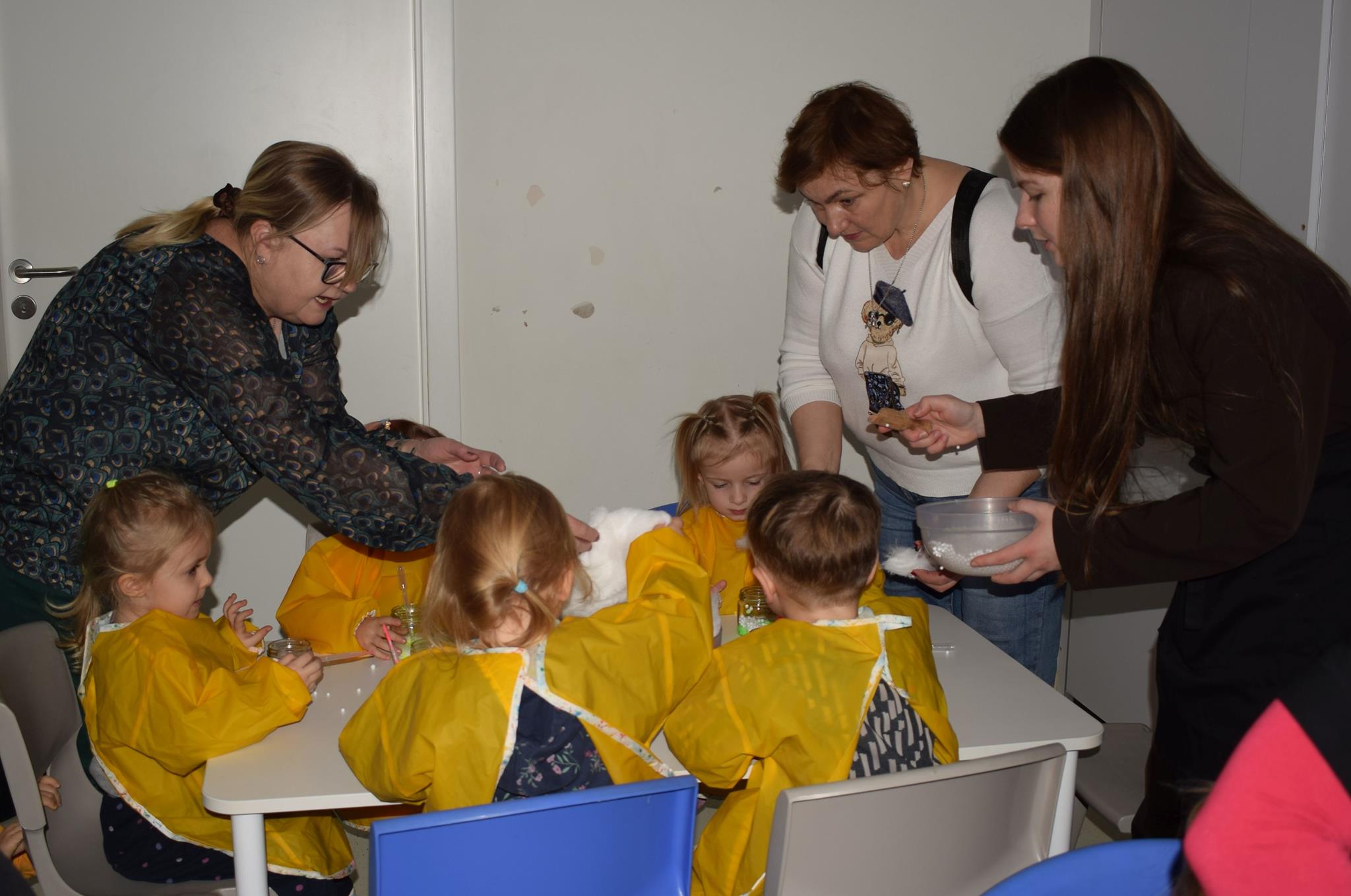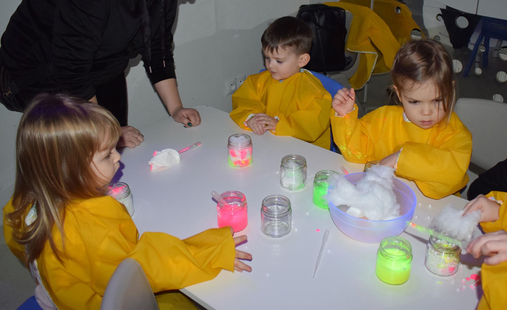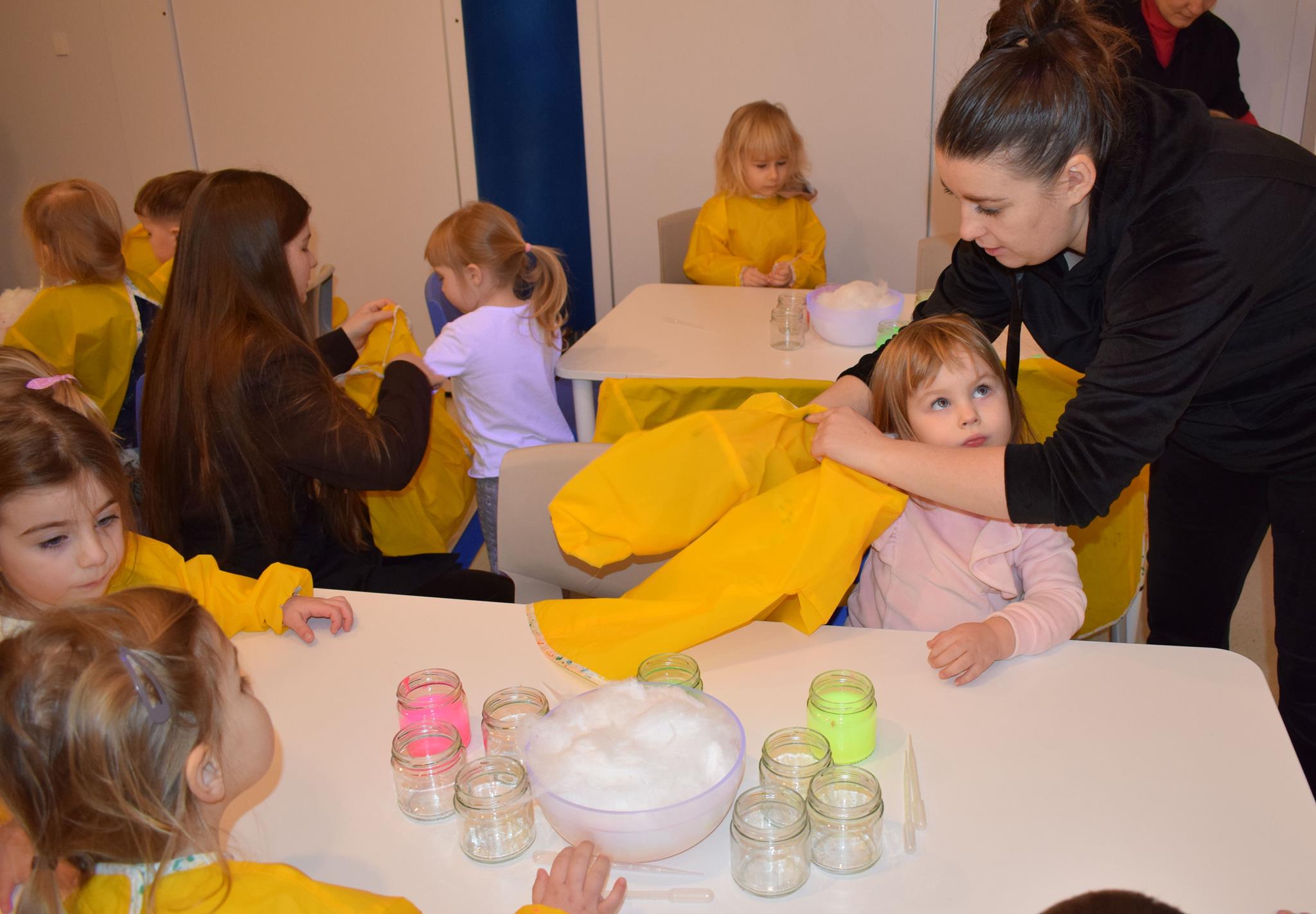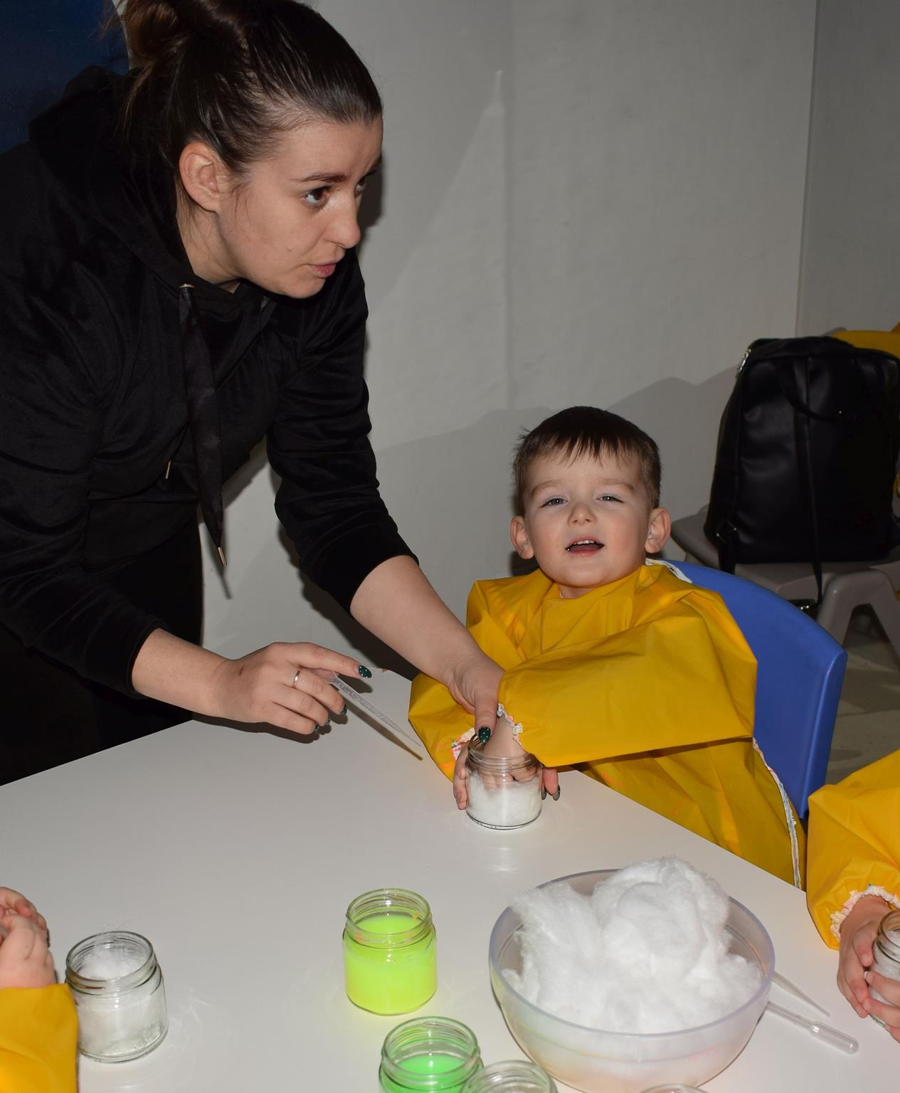 Najmłodsze dzieci z gr. Delfinki wybrały się do Sali Zabaw Sensorysie, gdzie czekało je wiele atrakcji: spotkanie z interaktywnym Rysiem, pełna przygód podóż w kosmos, udział w zajęciach plastyczno-sensorycznych, mnóstwo czasu na zabawę ruchową. Do dyspozycji były zjeżdżalnie, ścianka wspinaczkowa, labirynt sensoryczny, tunel z siatki, trampoliny, strefa lasu, jasknia foczek z kulkami, magnetyczne klocki, tablice manipulacyjne. Sensorysie to piękna sala zabaw, stworzona z myślą o dzieciach i ich rozwoju, dostosowana do potrzeb najmłodszych, zachęciła dzieci do aktywności i eksploracji świata zmysłów.